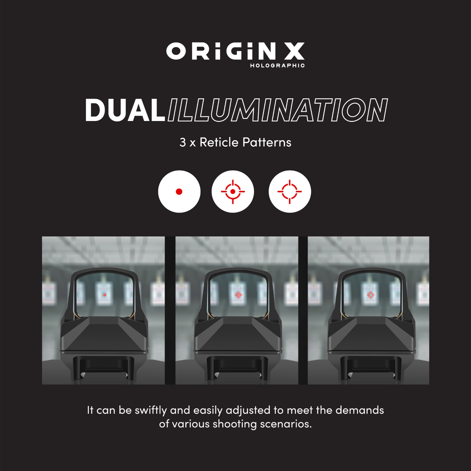 The AKRA ORIGIN X Red Dot Edge is a versatile and rugged red dot sight designed for shooters who demand speed, precision, and adaptability. Featuring dual illumination with three reticle patterns, it allows quick adjustments to suit any shooting scenario—whether fast target acquisition or precision aiming is required.