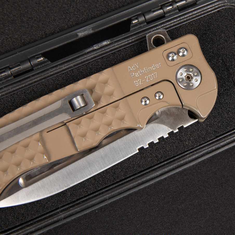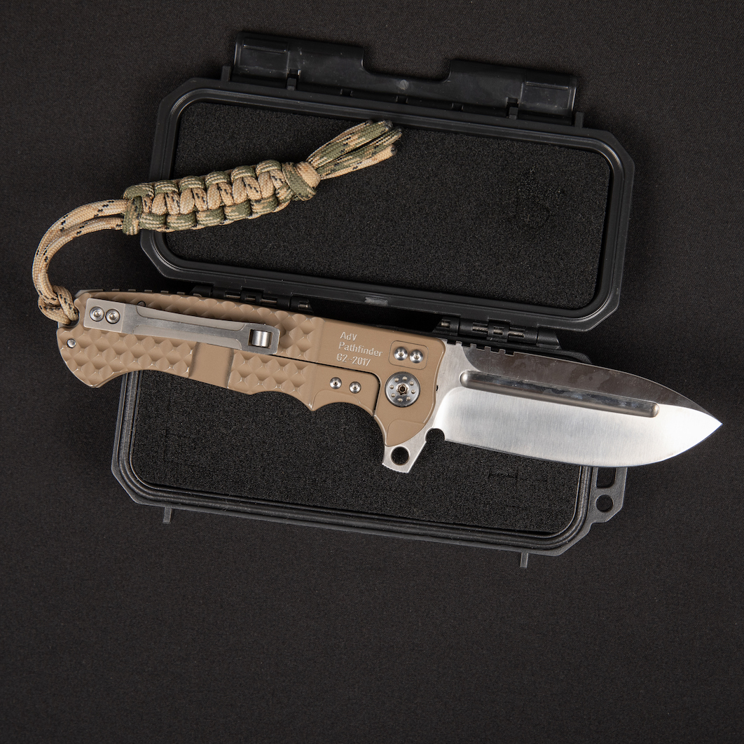 Or as low as R1,812.50 / month interest-free, using your existing credit card. For orders over R100.00.How it worksThe ADV Pathfinder G2-2017 Tan is a tough, tactical folder featuring a 3.75″ S35VN drop point blade and solid tip-up carry. Built by Andre de Villiers, it’s made for performance and reliability—on or off the trail.