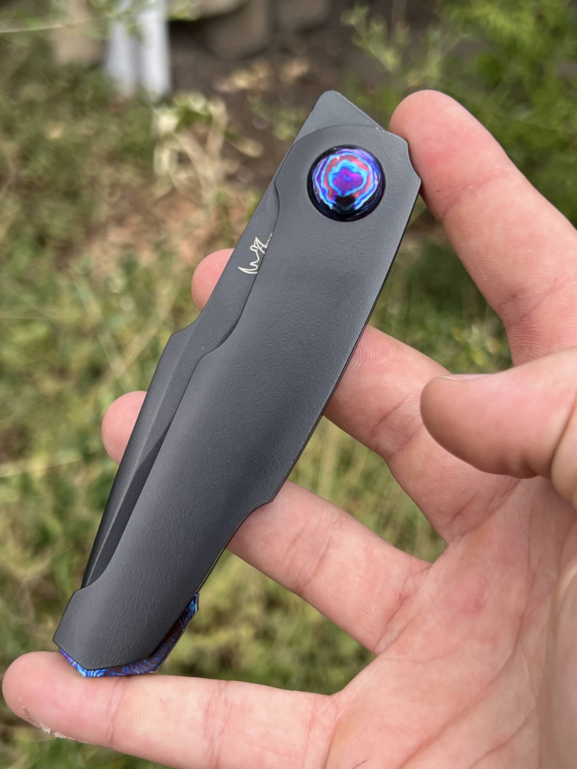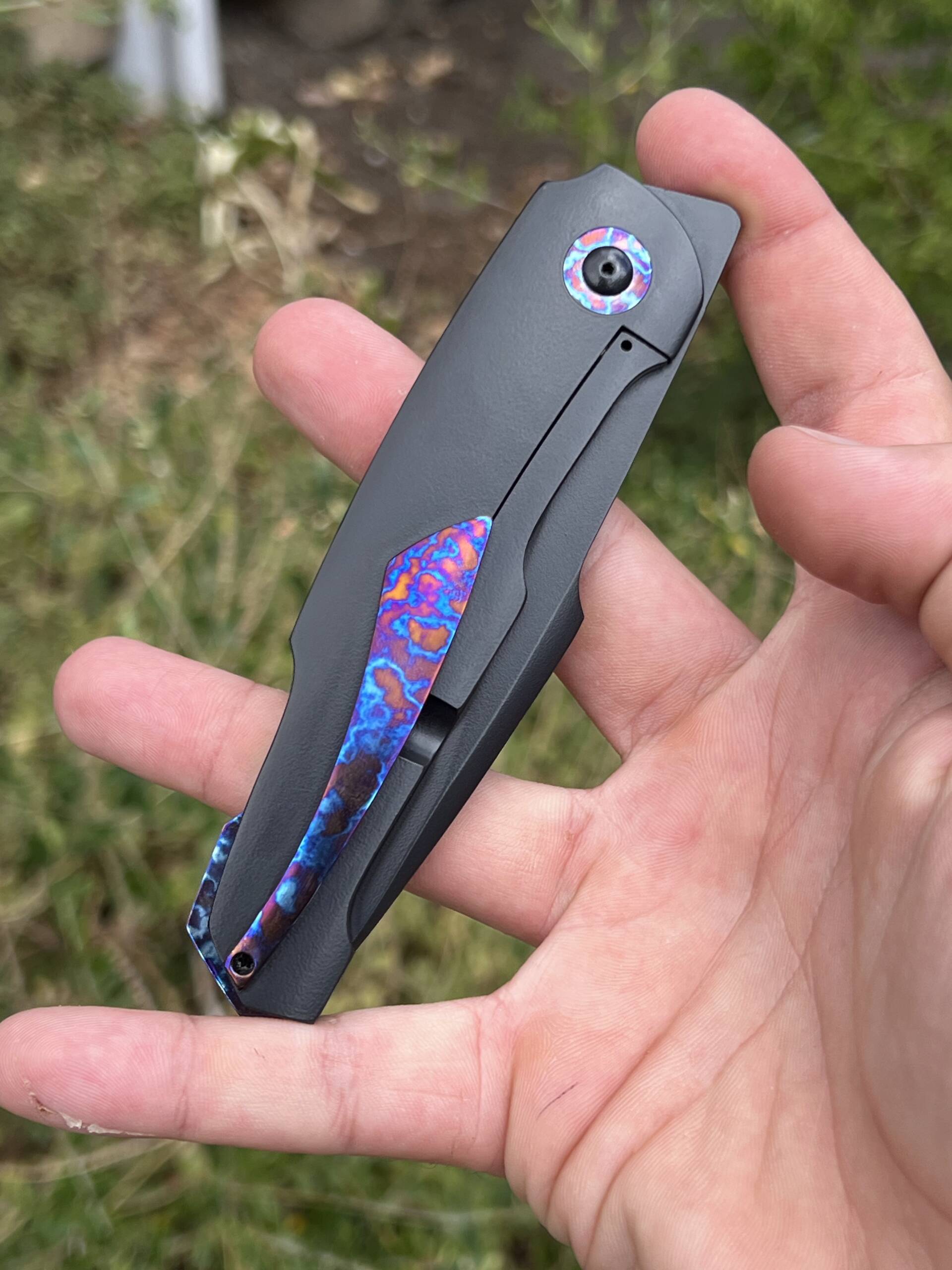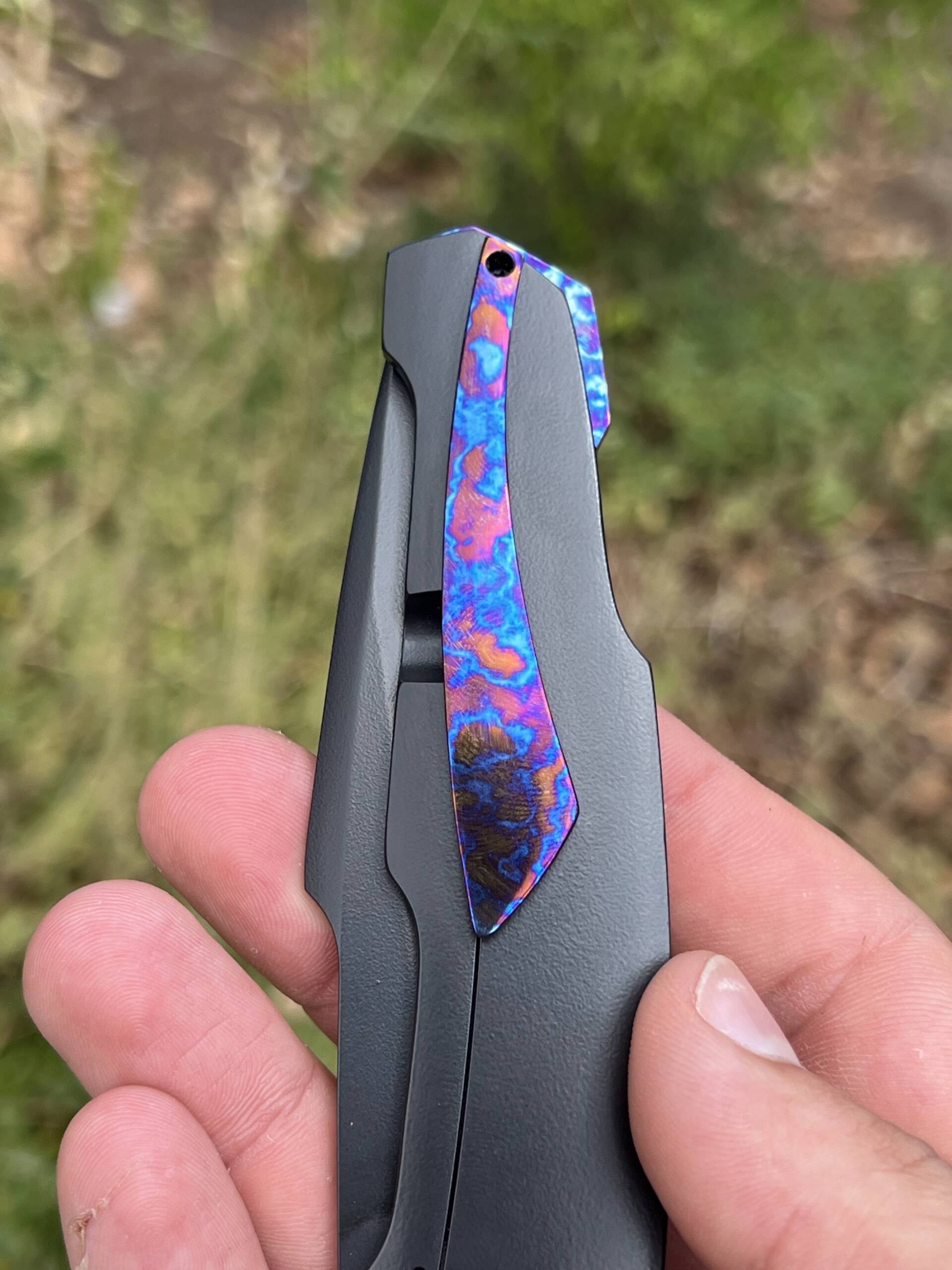Built with 6AL4V titanium hardware, also Cerakote-finished, the construction remains both lightweight and exceptionally durable. Kraken Timascus collars, backspacer, and pocket clip introduce a subtle yet striking contrast, elevating the knife into true collector territory.