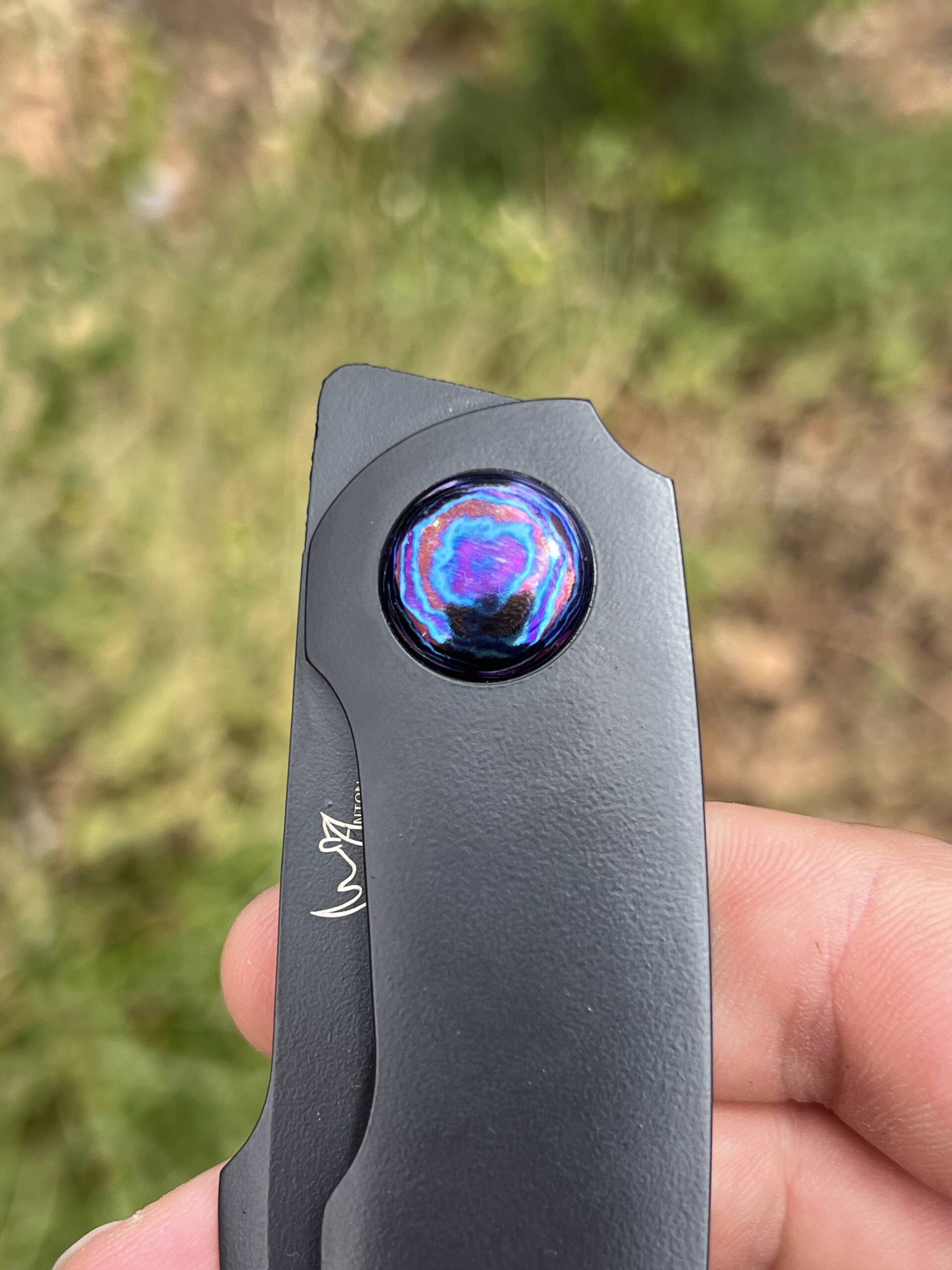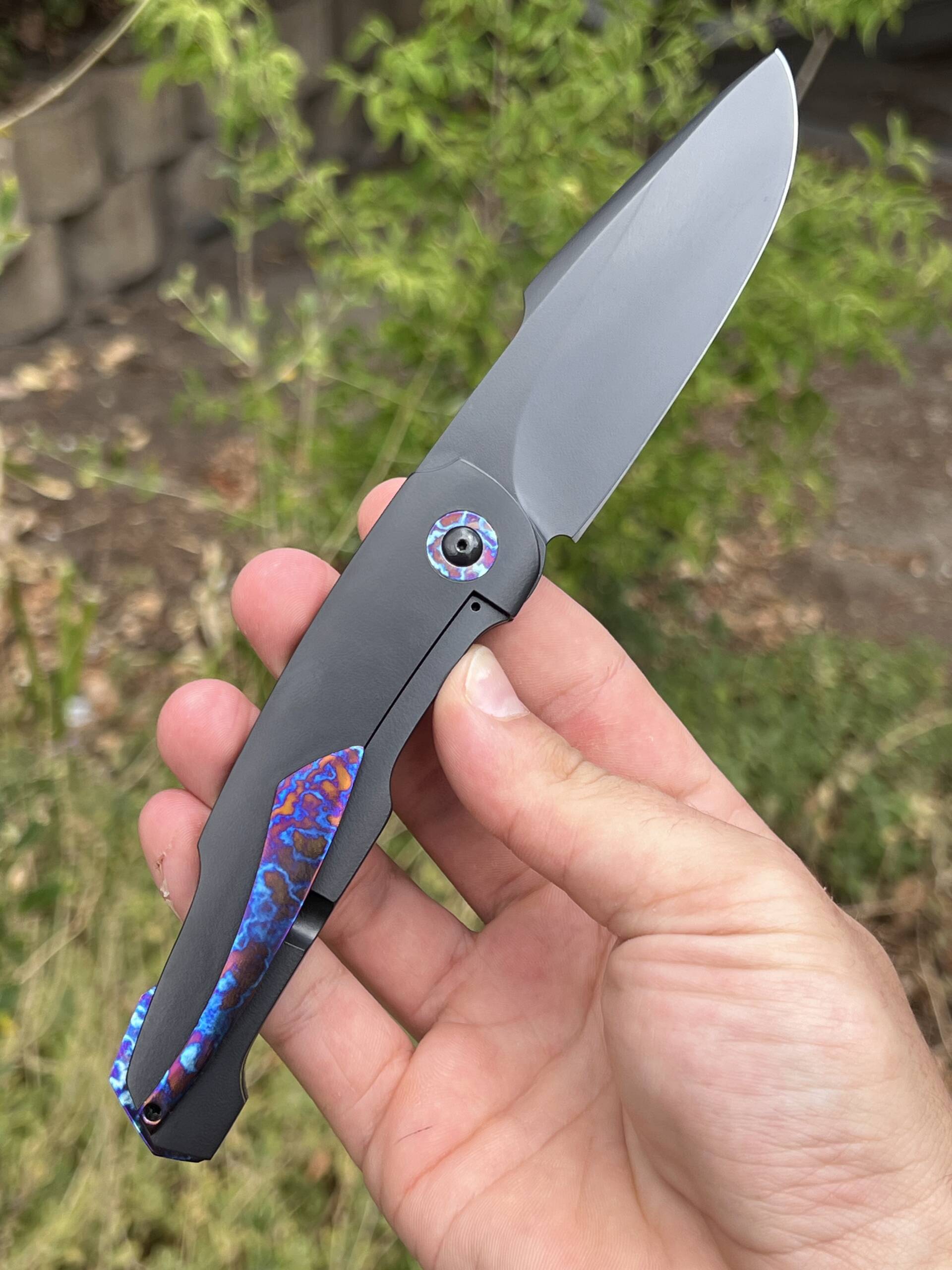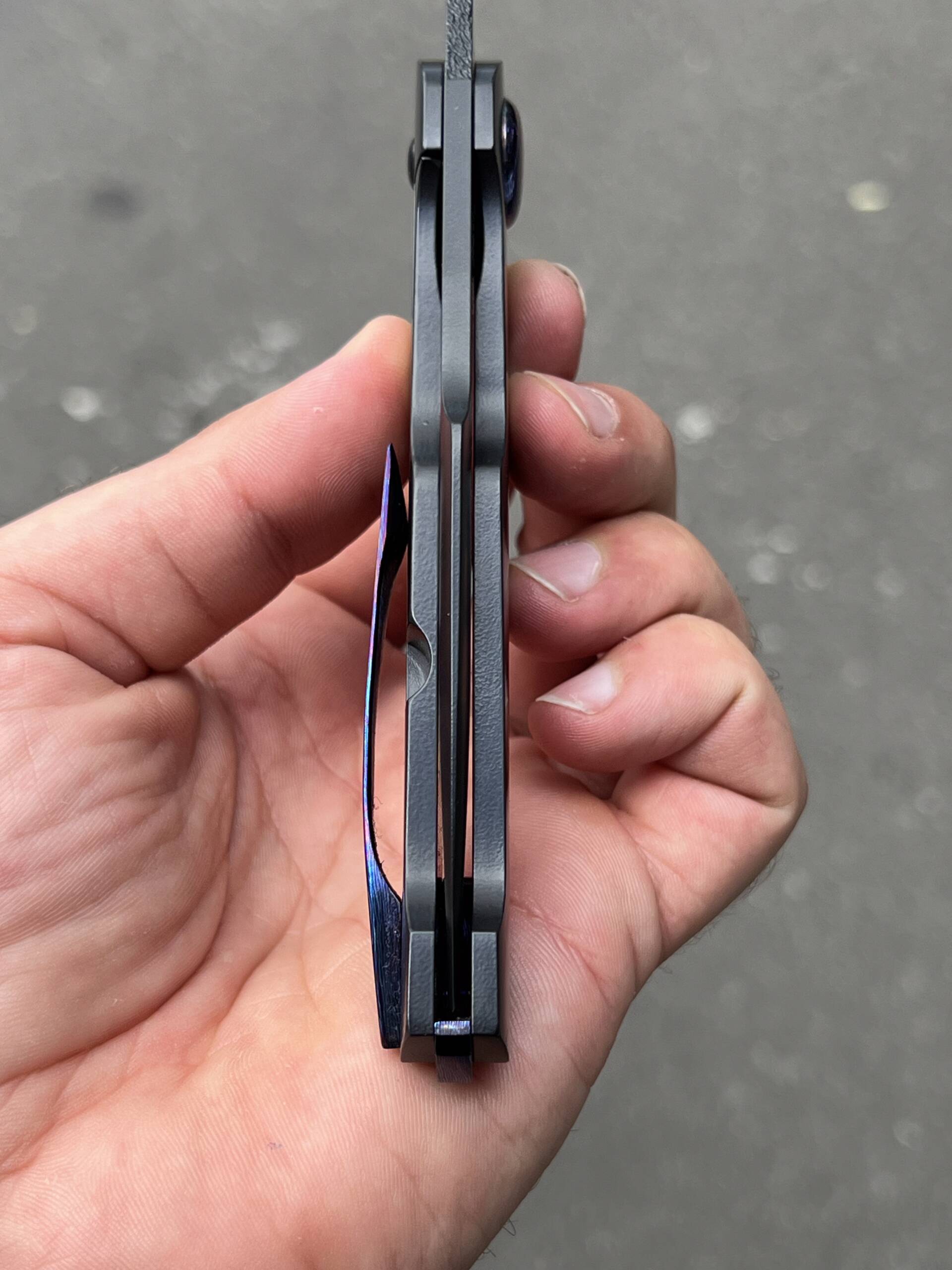 Built with 6AL4V titanium hardware, also Cerakote-finished, the construction remains both lightweight and exceptionally durable. Kraken Timascus collars, backspacer, and pocket clip introduce a subtle yet striking contrast, elevating the knife into true collector territory.