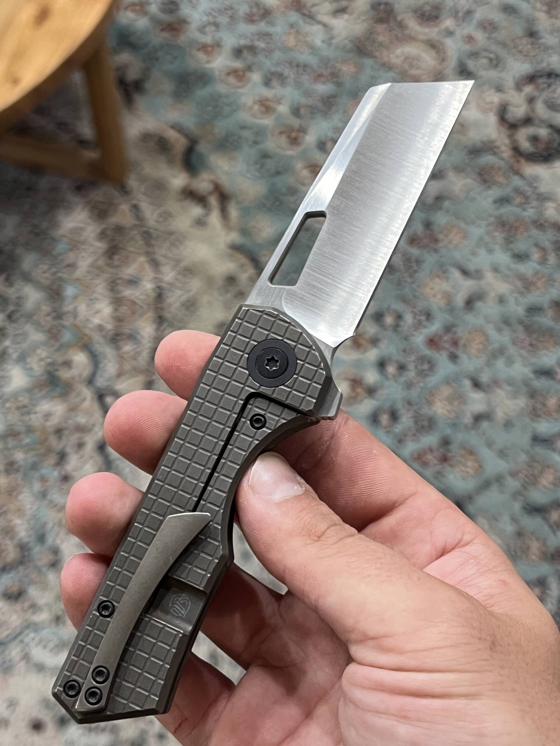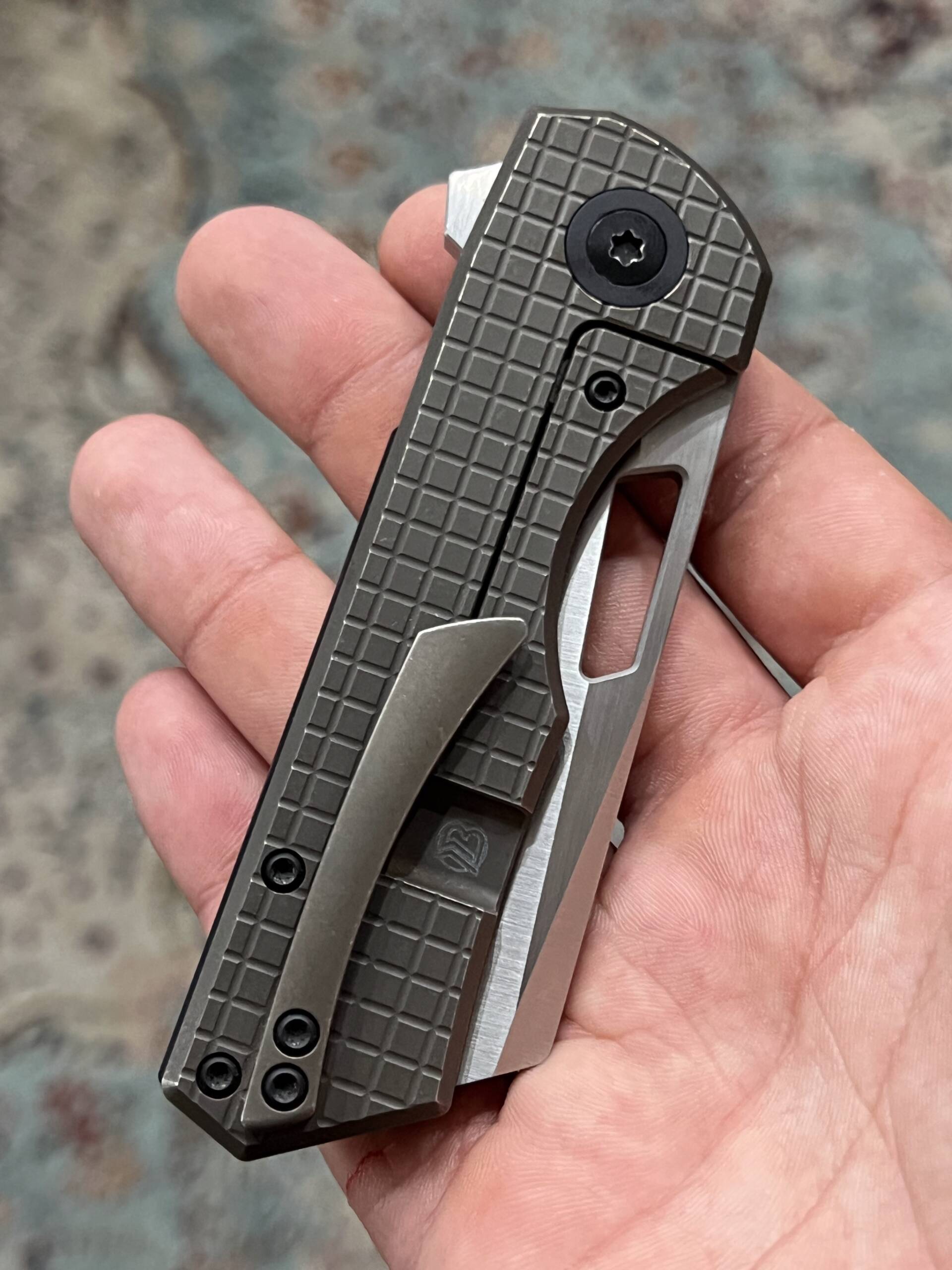 The Brian Brown Yeager-M V3 (Dark Bronze Frag Titanium) is a modern collector-grade framelock built with the kind of precision and detail that made the Yeager one of the most sought-after production customs in the EDC world. Clean lines, aggressive frag texturing, and a hard-use blade profile give it that perfect mix of tactical attitude and refined execution.