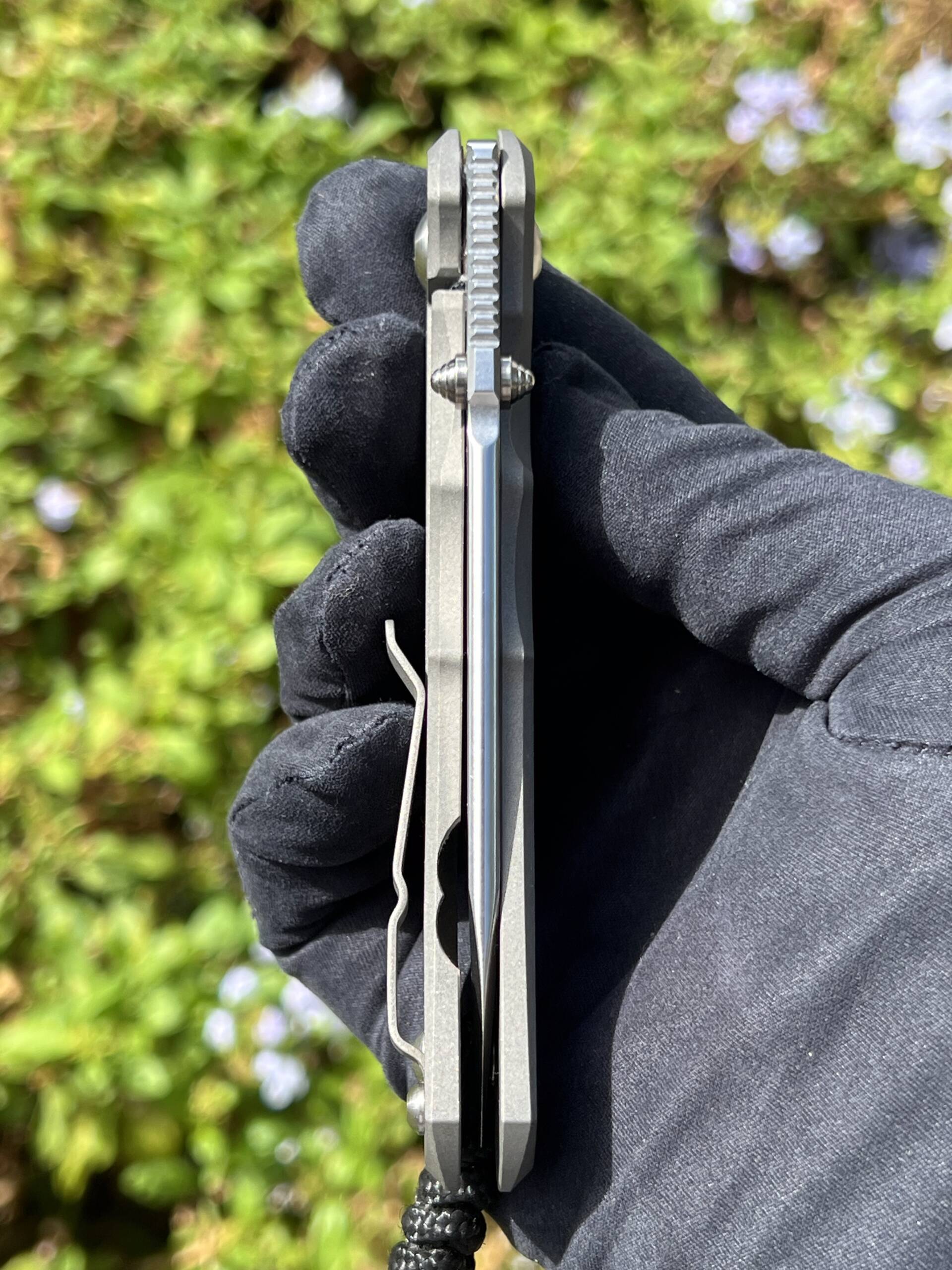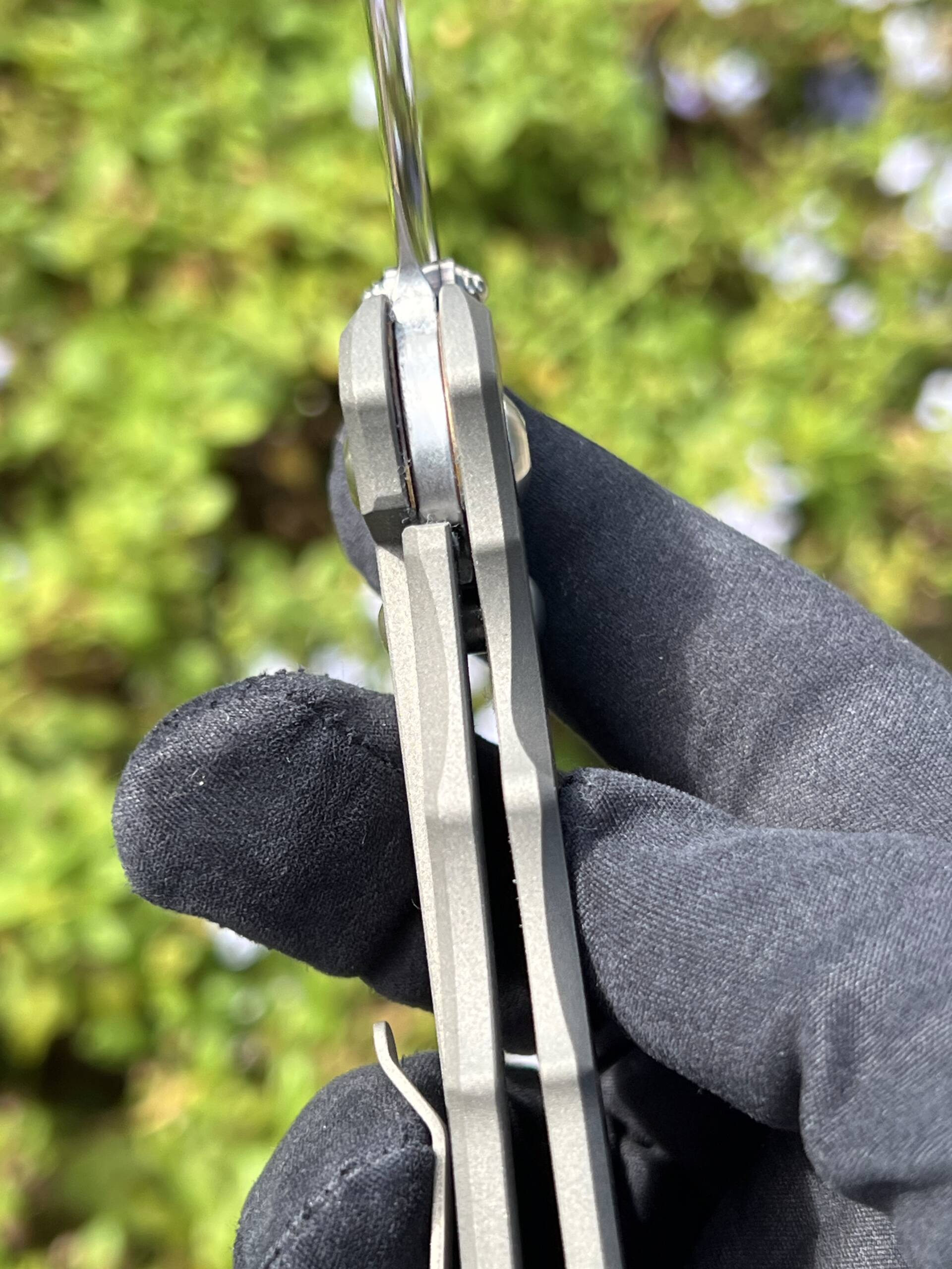 - Deployment: Dual titanium thumb studs for fast, ambidextrous opening. Oversized phosphor bronze washers ensure silky action.