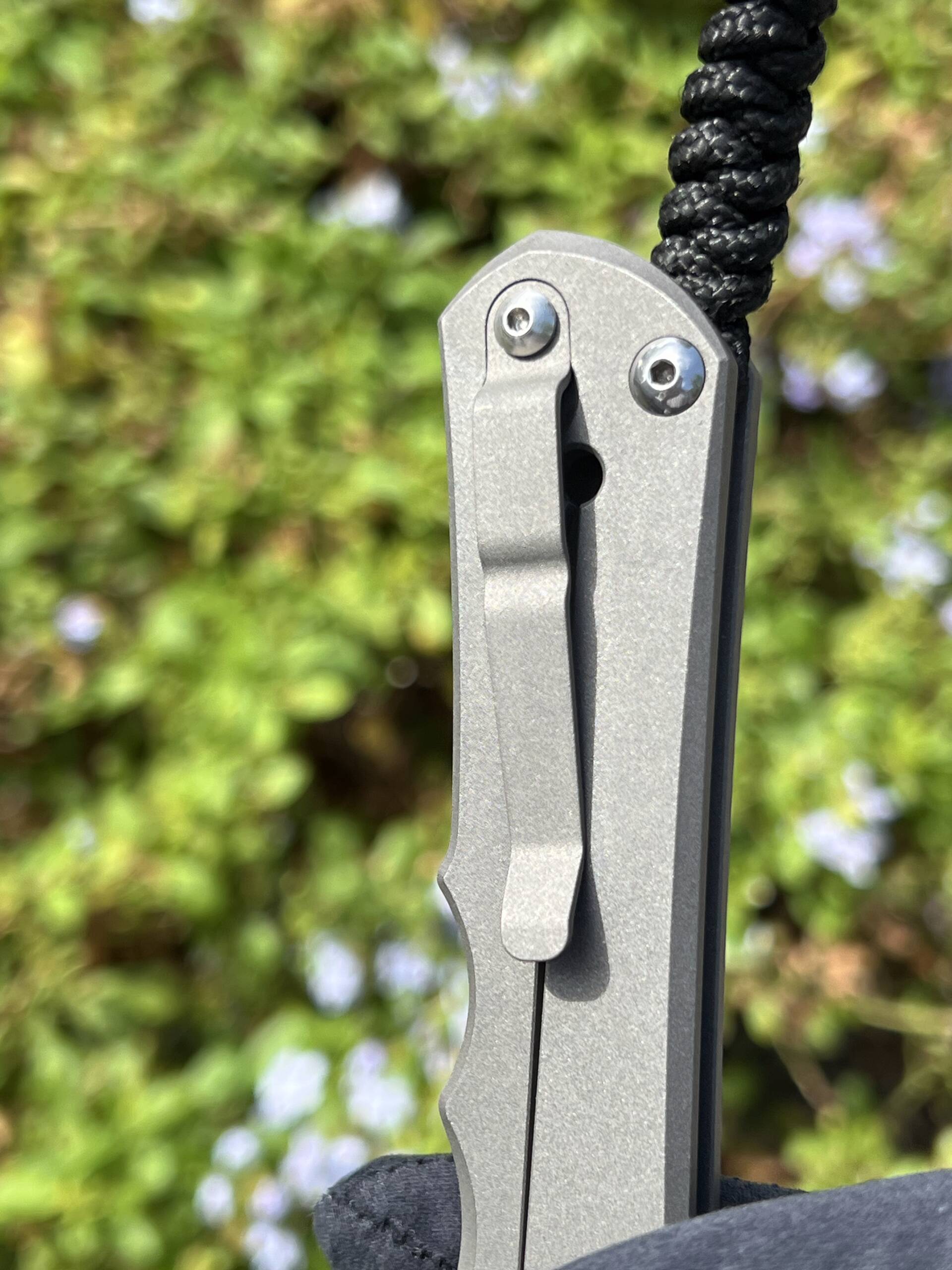 - Carry: Removable titanium pocket clip (tip-up, right-hand orientation on this model).