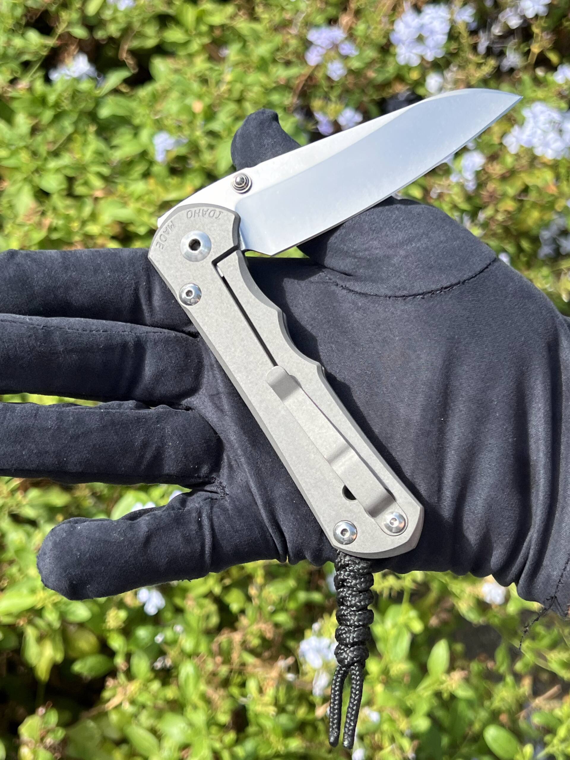 - Handle: 6Al4V titanium scales with a sandblasted/tactile finish for secure grip. Open-frame construction keeps weight down while maintaining rigidity.
