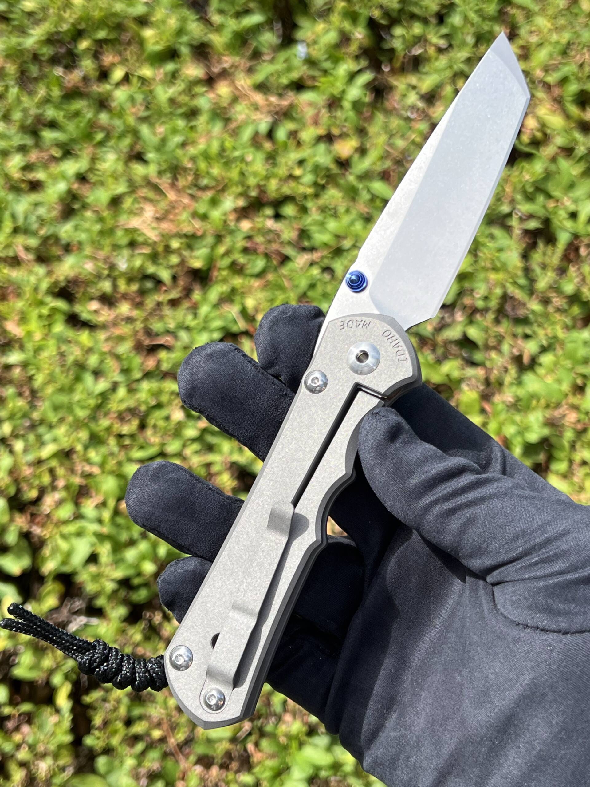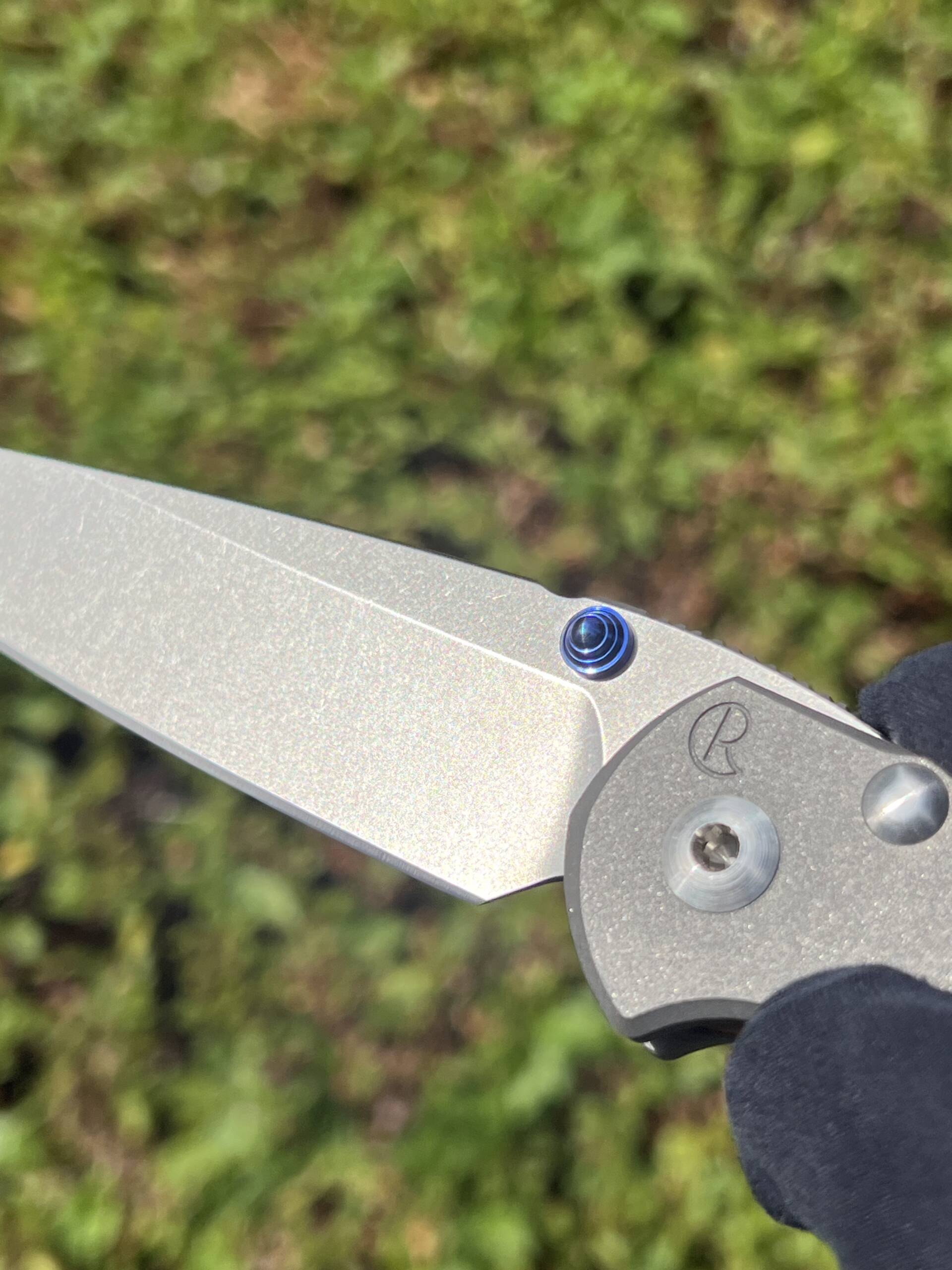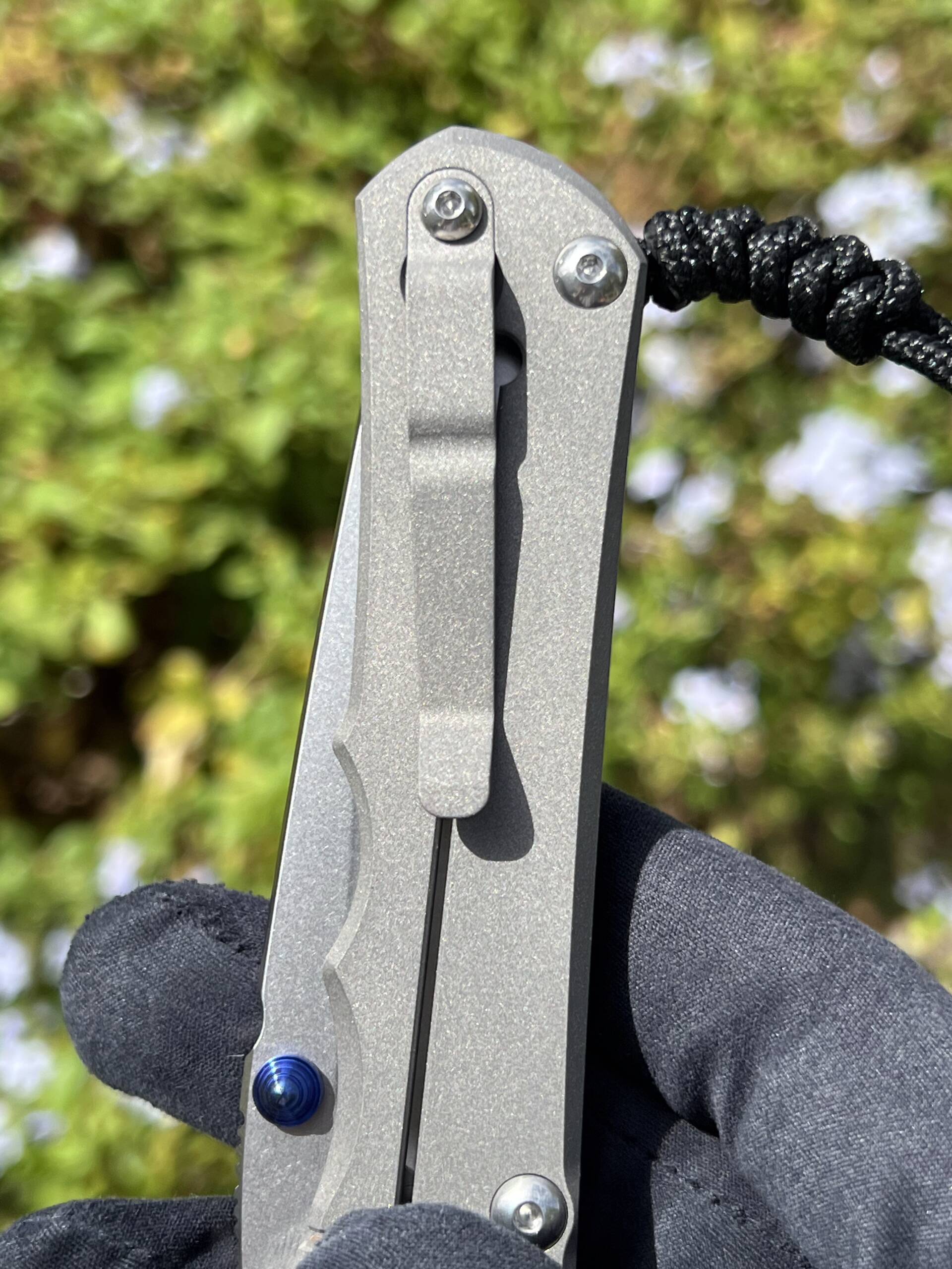 - Handle: Sandblasted 6Al4V titanium scales for a secure, tactile grip and lightweight strength. Open-frame design reduces weight while maintaining rigidity.