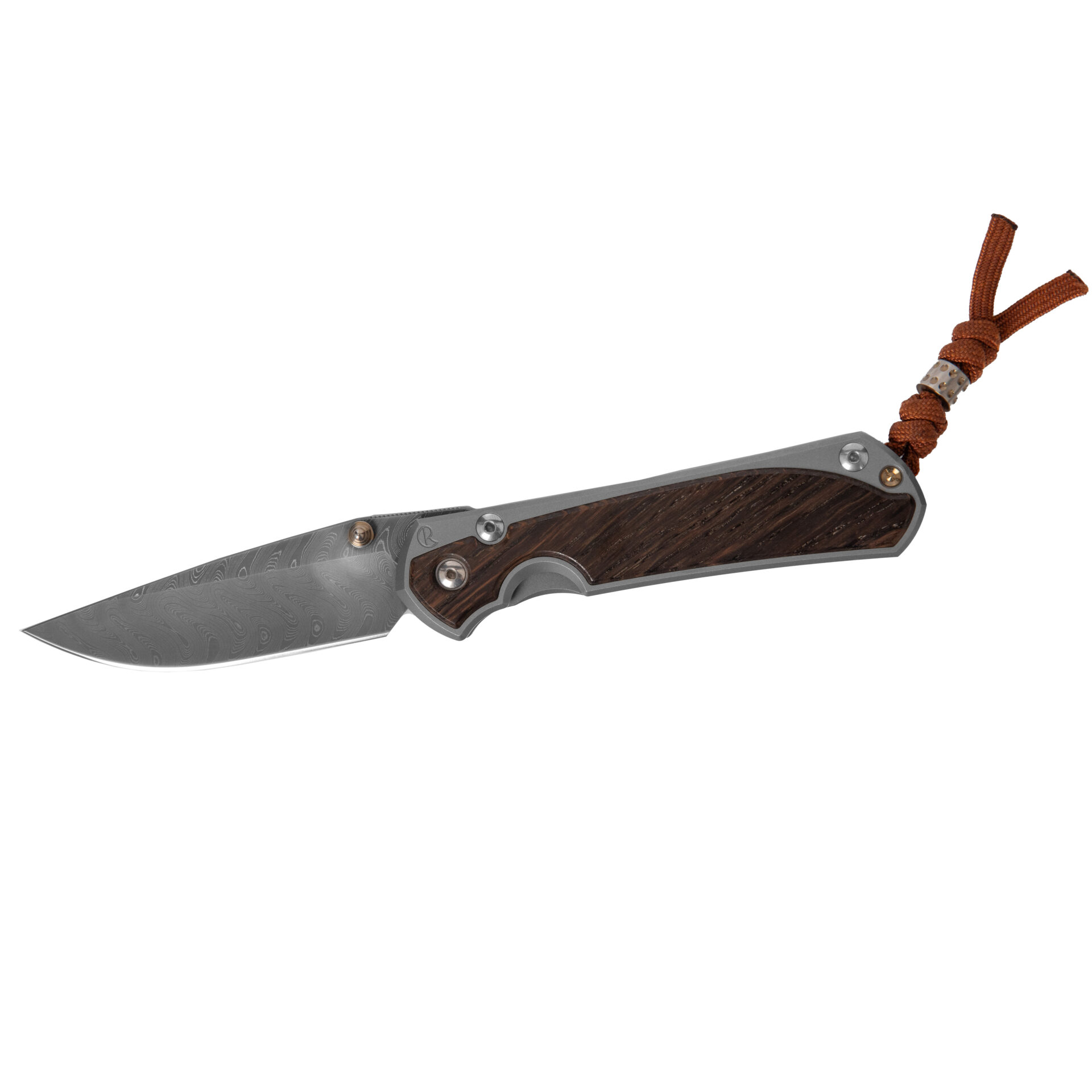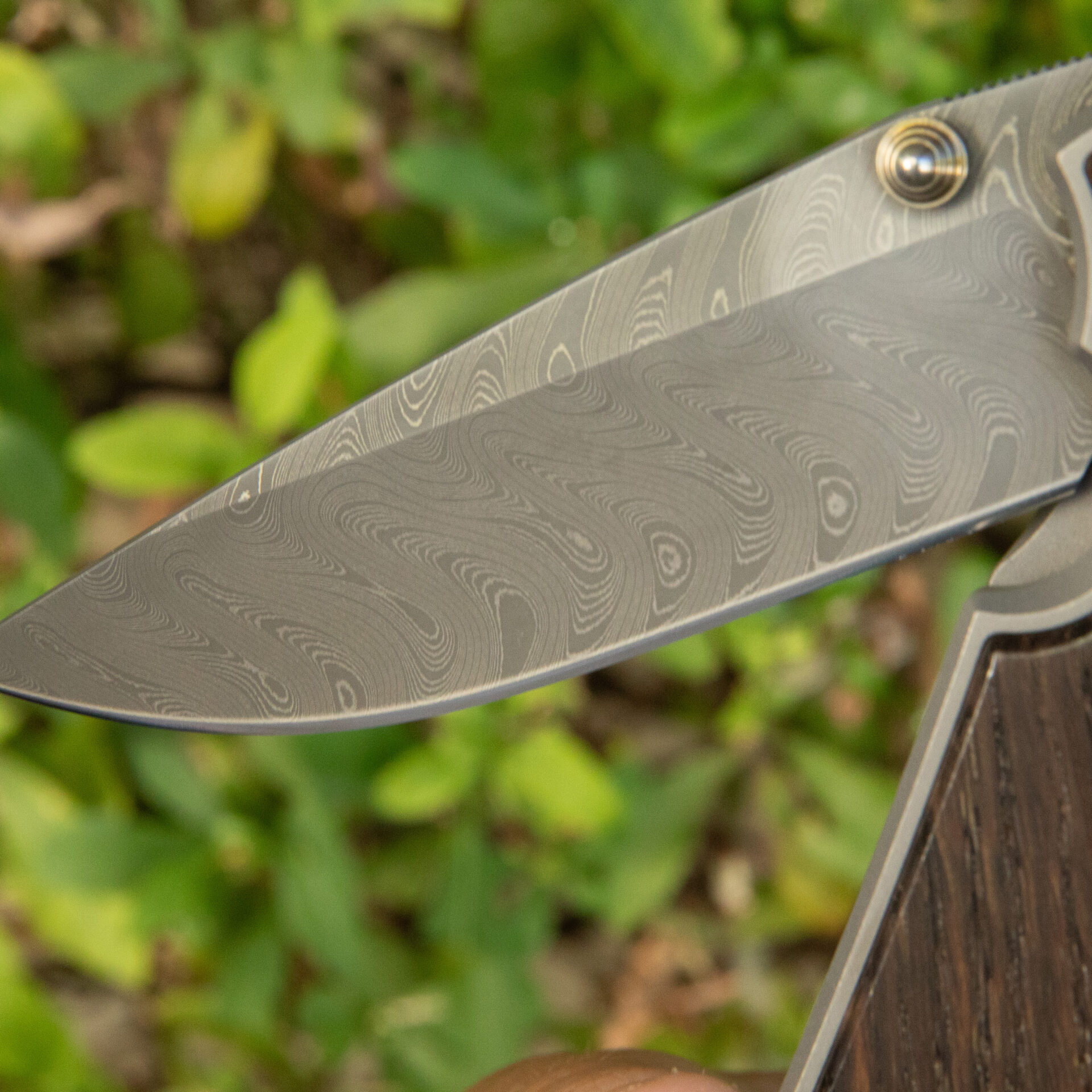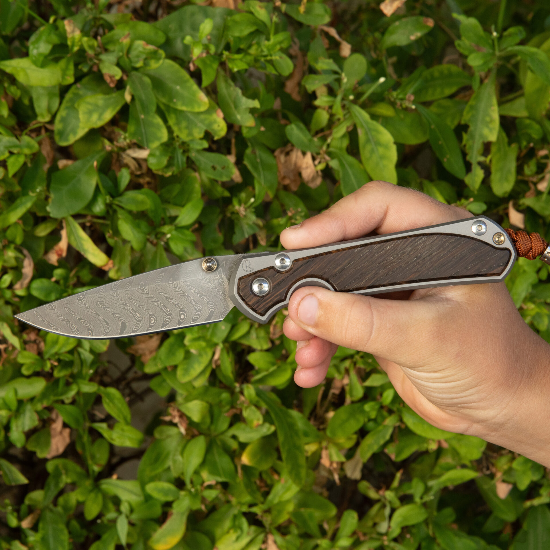 At the heart of this exquisite tool lies a meticulously crafted Drop Point blade, boasting the legendary Chad Nichols Boomerang Damascus steel. Renowned for its striking pattern and exceptional durability, this blade stands ready to tackle any task with precision and grace. With a generous length of 3.6 inches, it strikes the perfect balance between versatility and functionality.