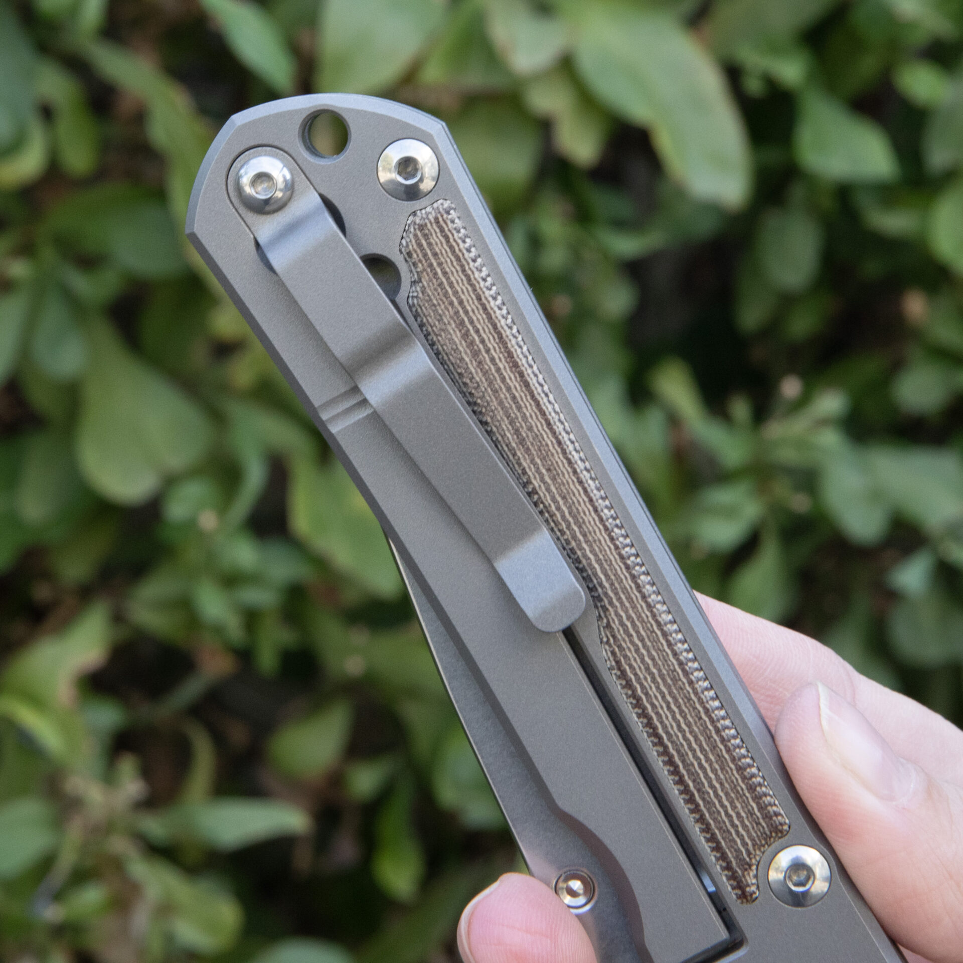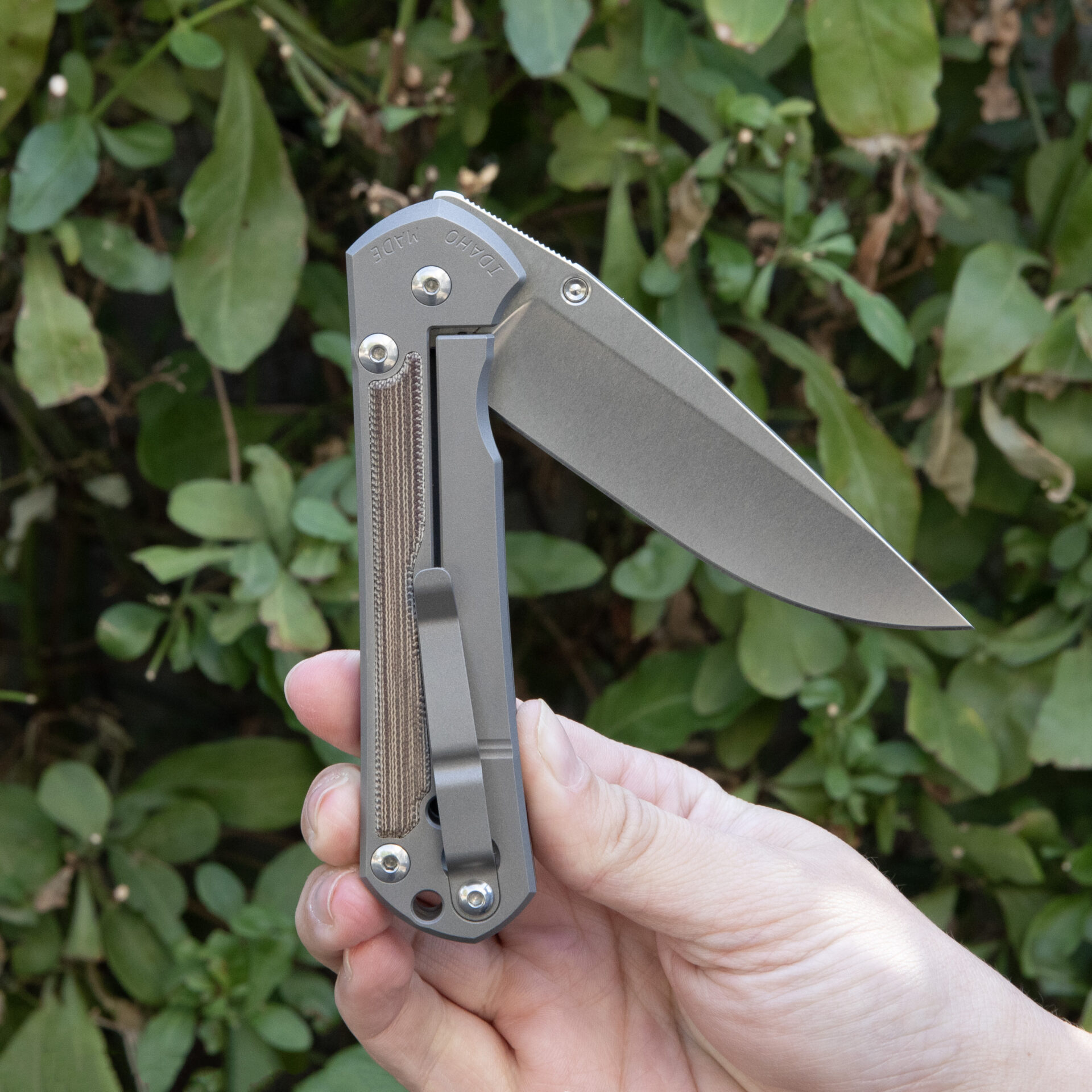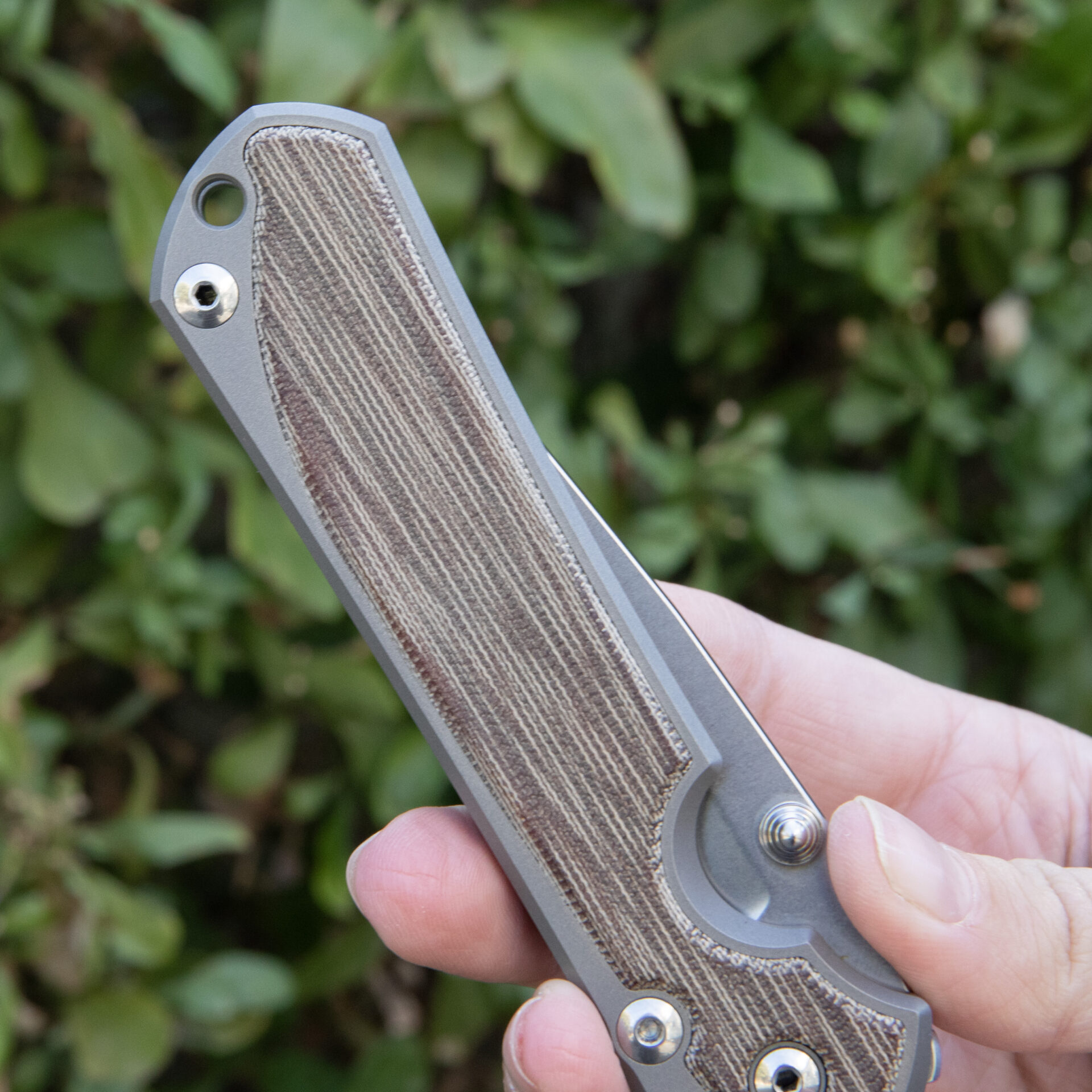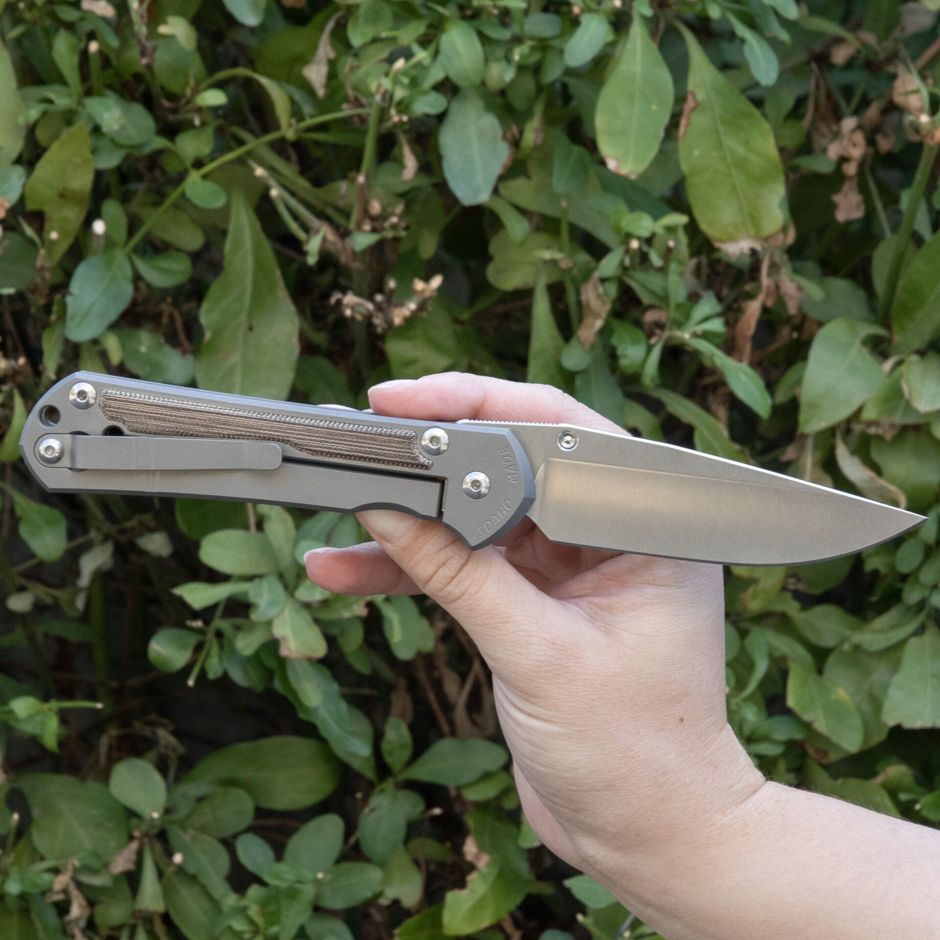 | Handle Material | Sandblasted 6Al4V Titanium with Natural Canvas Micarta Inlays |