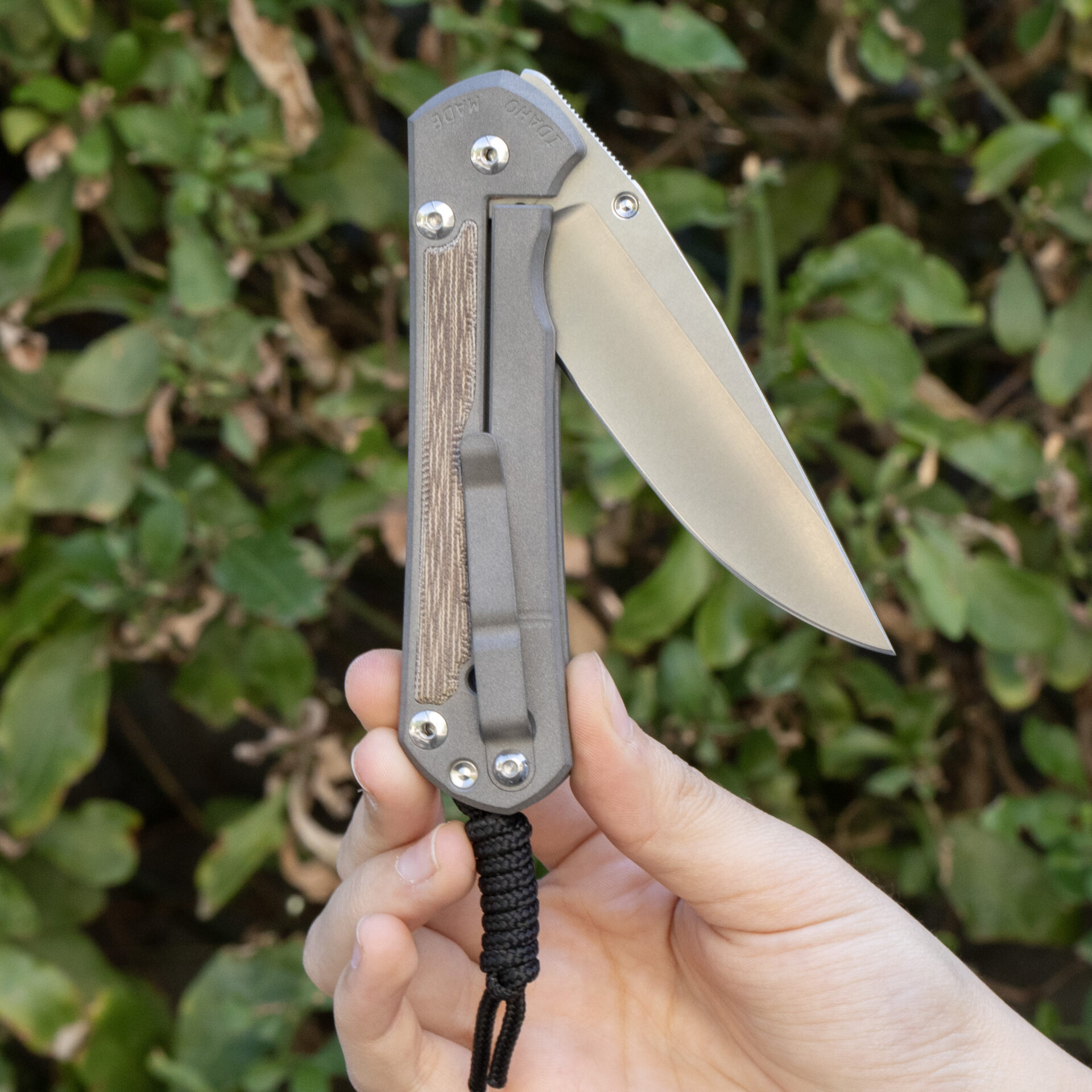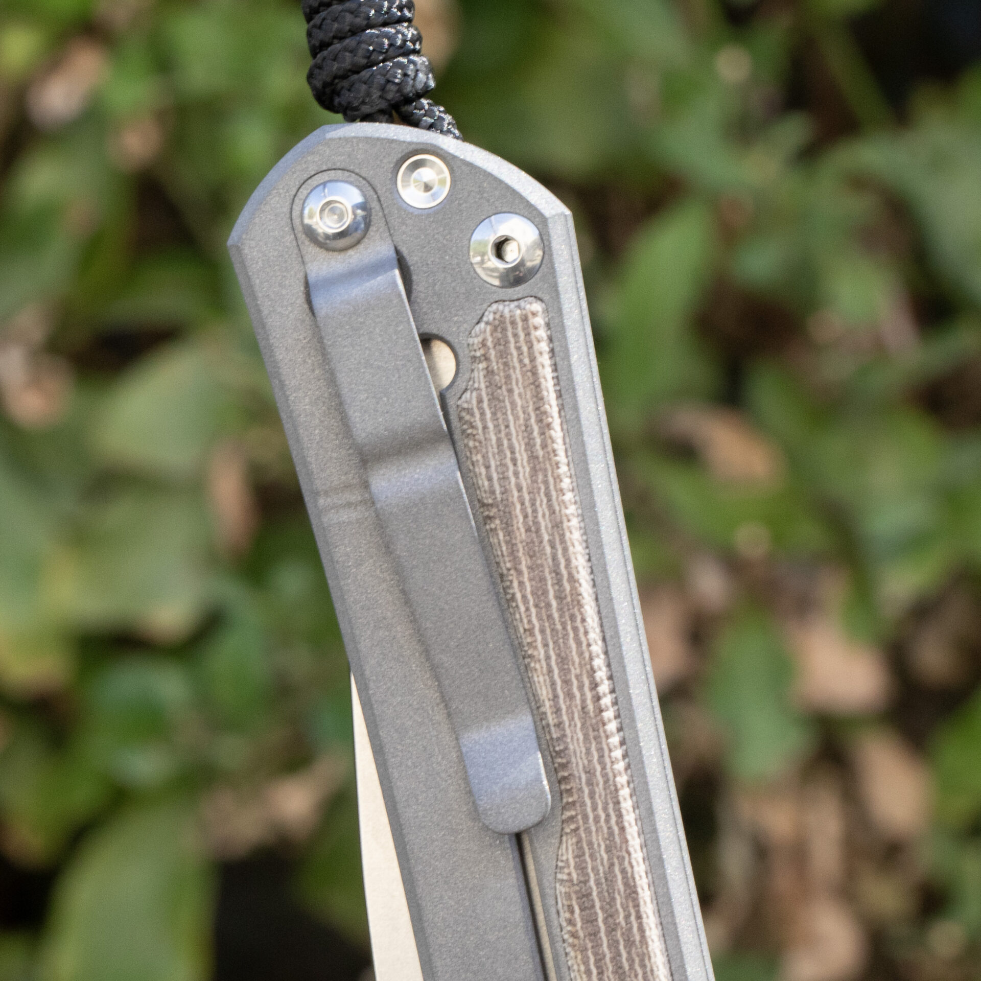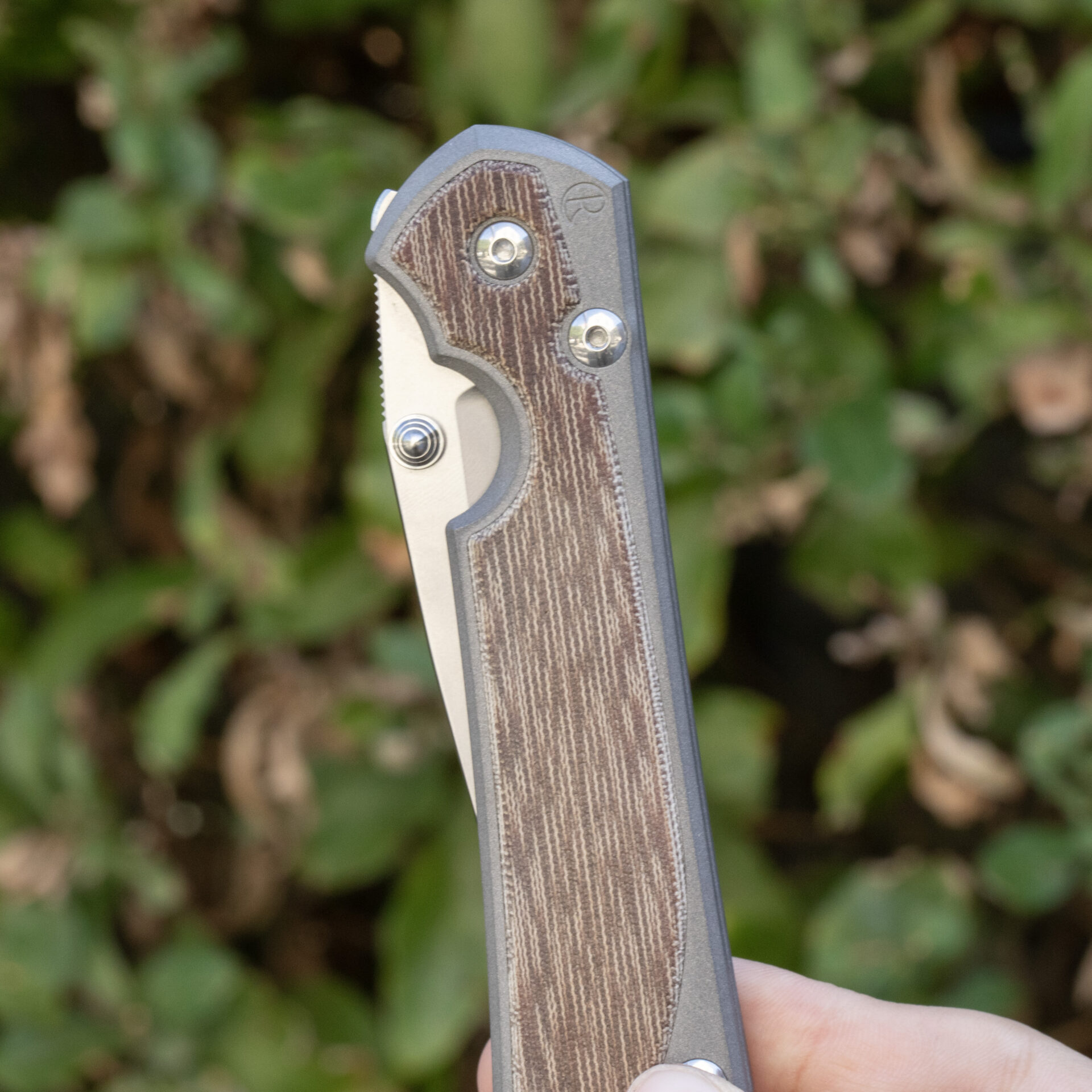 | Handle Material | Sandblasted 6Al4V Titanium with Natural Canvas Micarta Inlays |