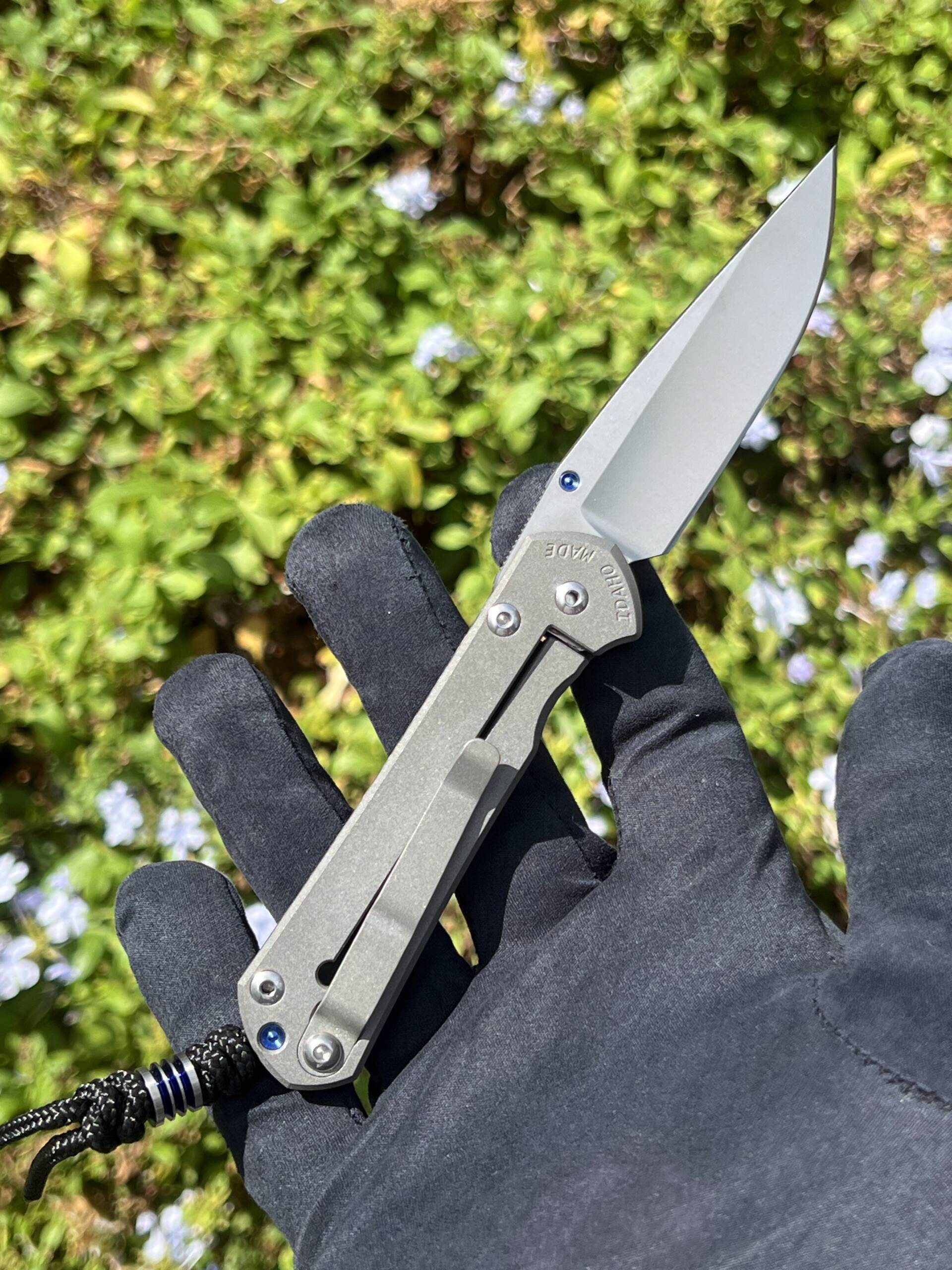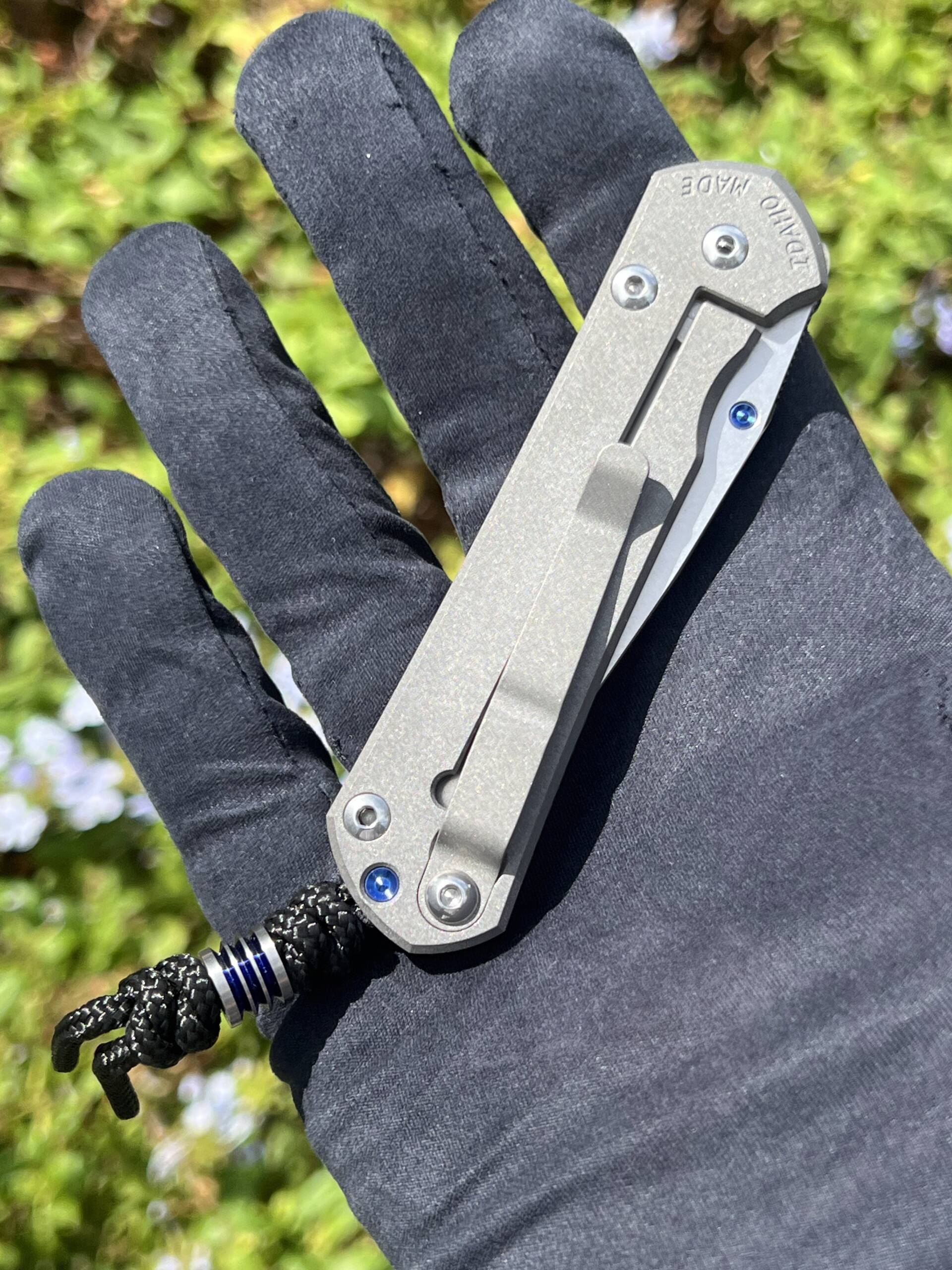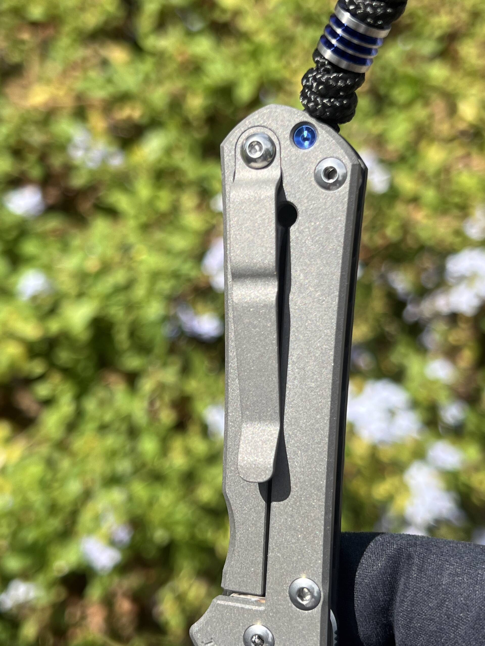 - Carry: Removable titanium pocket clip (tip-up) and includes a braided lanyard with bead.