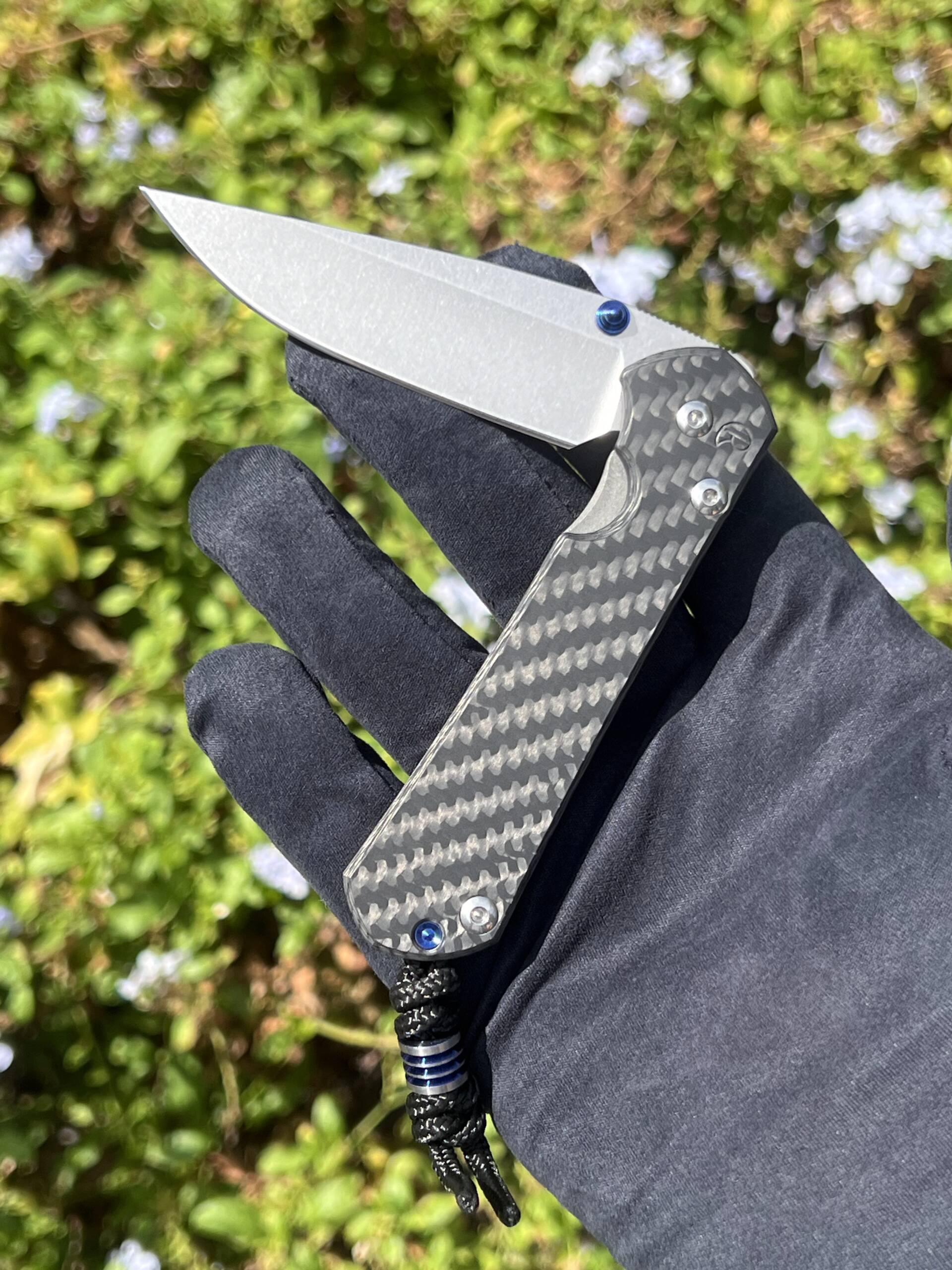 - Handle: 6Al4V titanium frame with a Black Carbon Fiber front scale. This combination provides a premium look, lightweight feel, and excellent grip while maintaining the structural strength Chris Reeve knives are famous for.