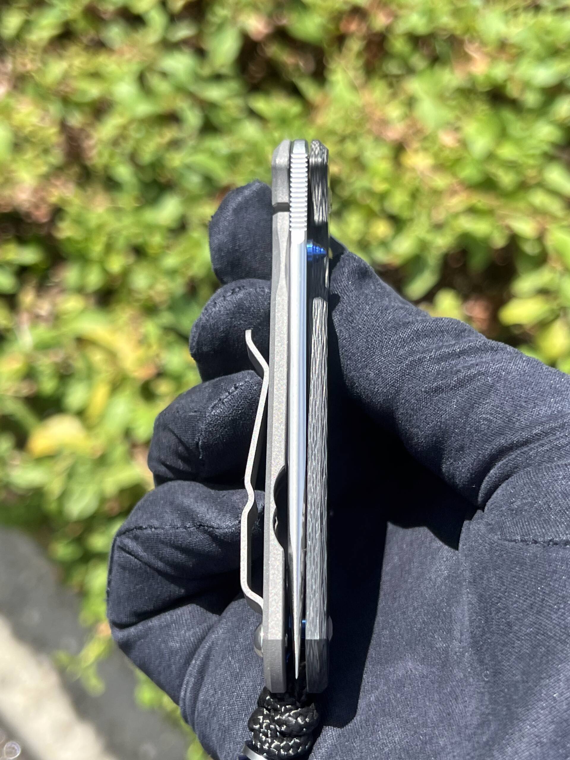 - Handle: 6Al4V Titanium + Black Carbon Fiber Front Scale