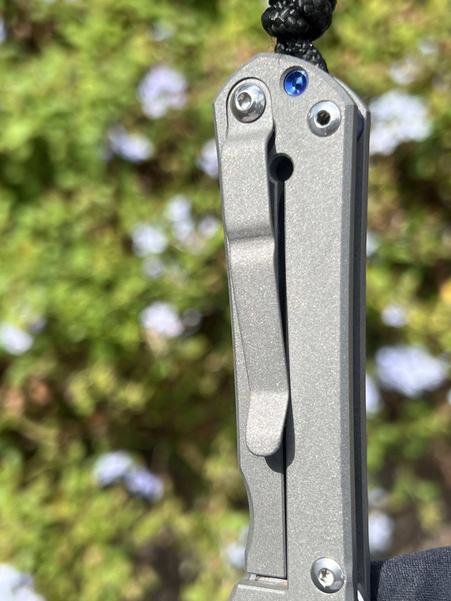 - Carry: Removable titanium pocket clip (tip-up) and includes a braided lanyard.