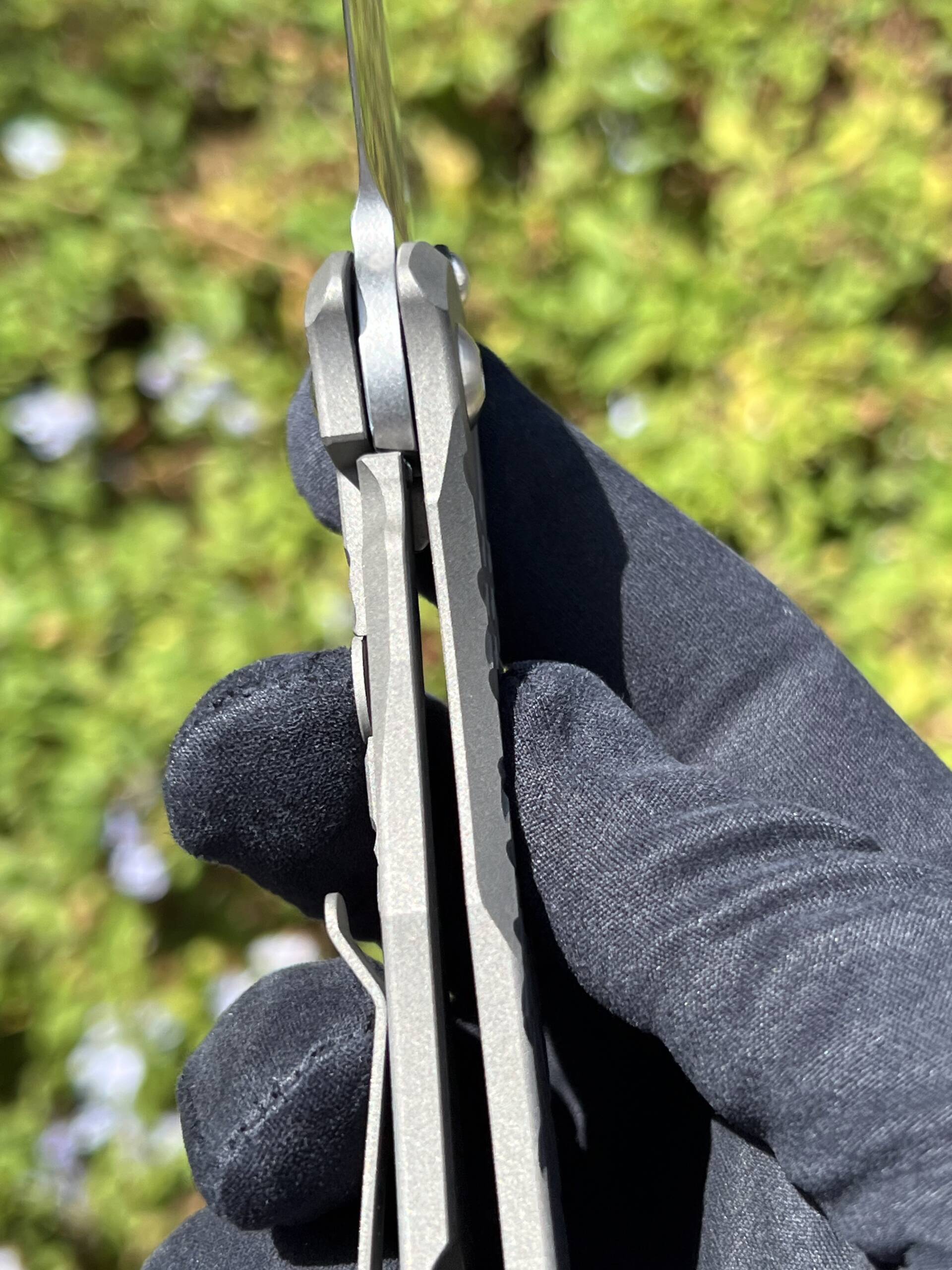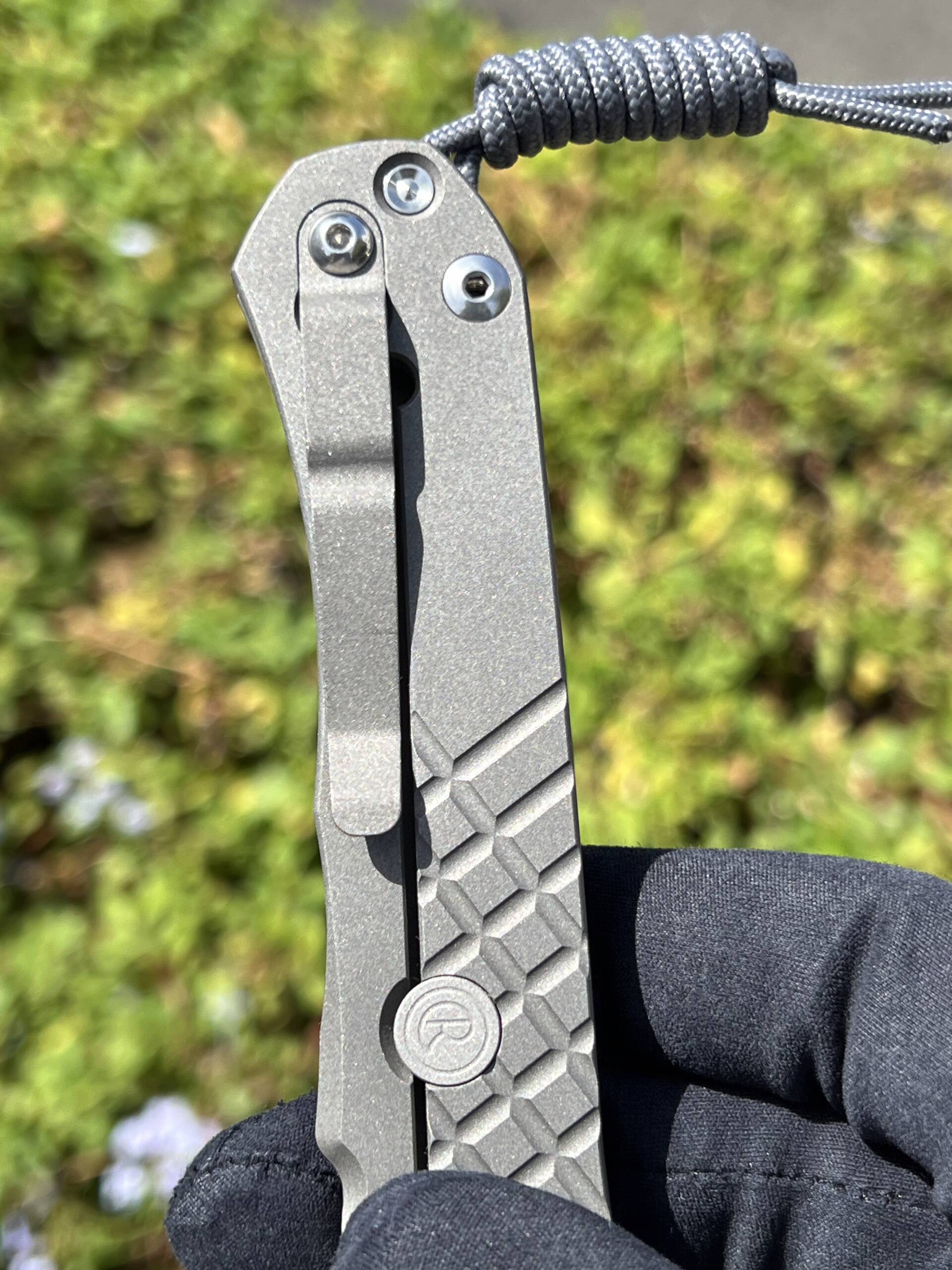 - Handle: 6Al4V titanium scales featuring Chris Reeve’s signature grid-pattern texture for exceptional grip. The robust construction and thick titanium make this one of the strongest production folding knives available.