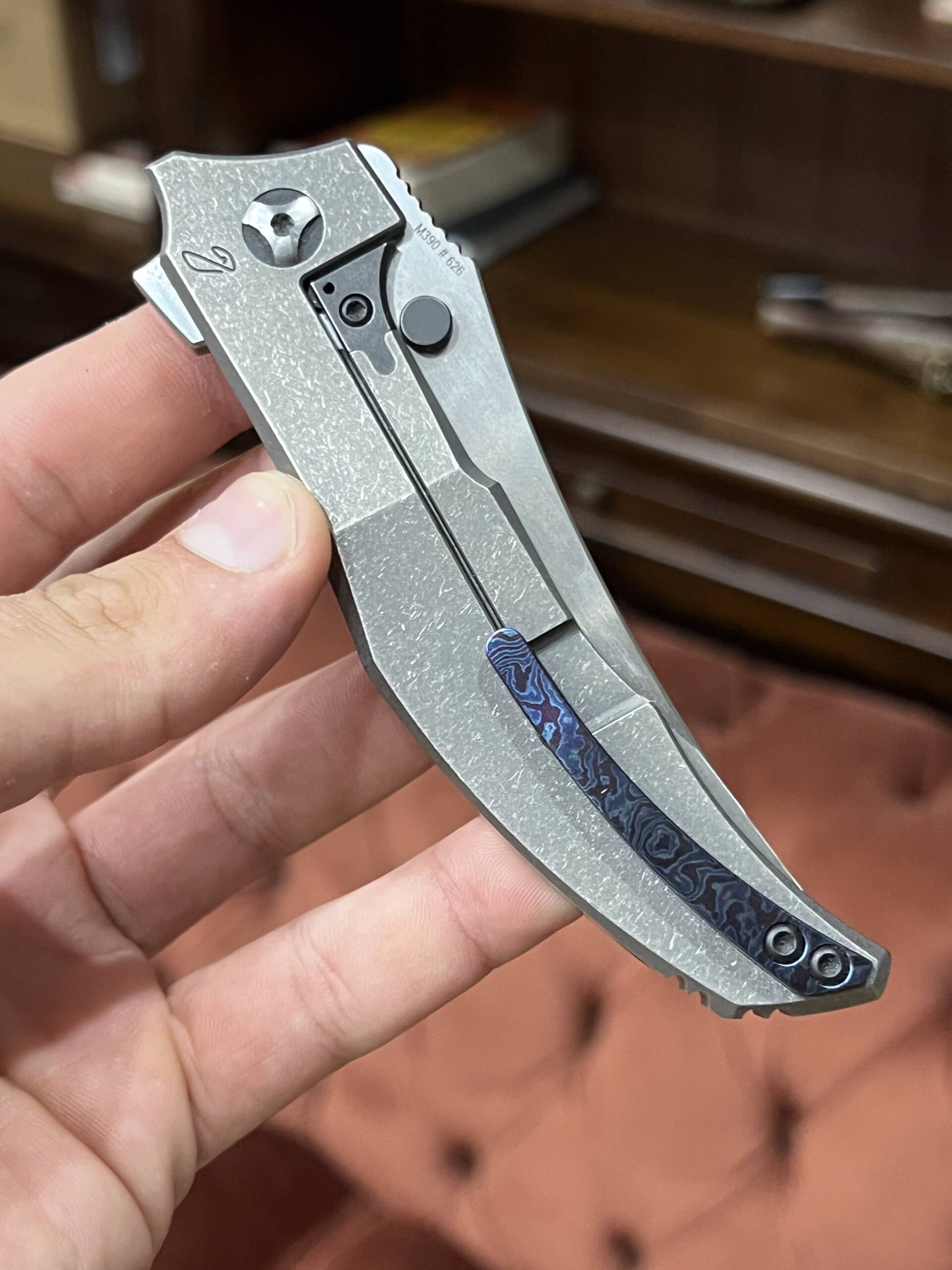 This premium folder features a one-piece integral titanium handle, giving it a seamless, ultra-solid feel in hand. The blade is crafted from Böhler M390, one of the most trusted high-performance steels in the EDC world, known for excellent edge retention and corrosion resistance.