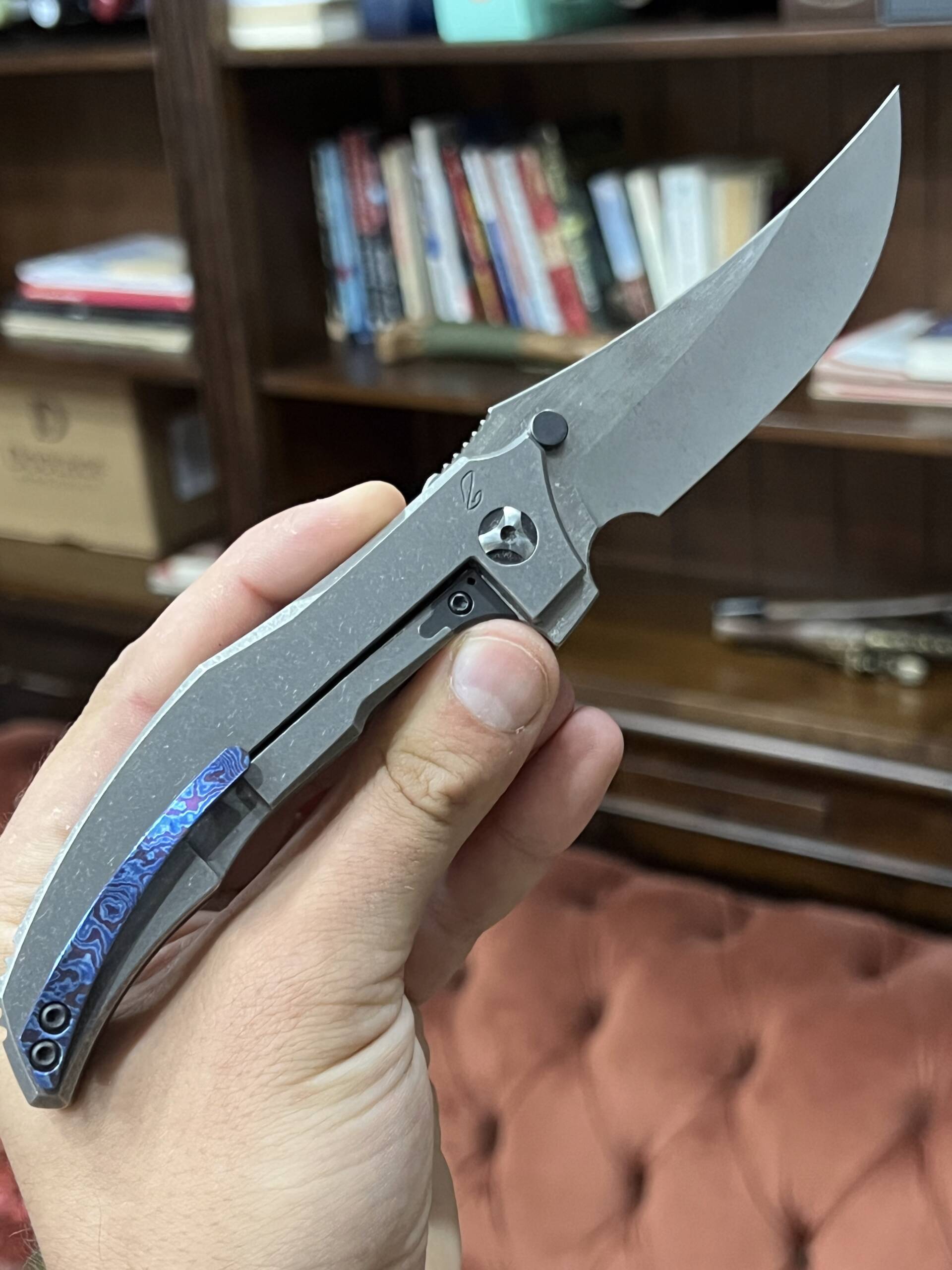 Timascus pocket clip for right-side tip-up carry