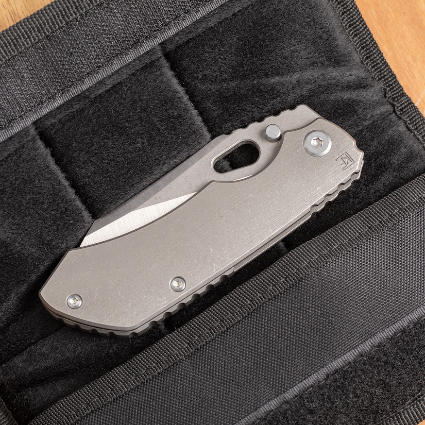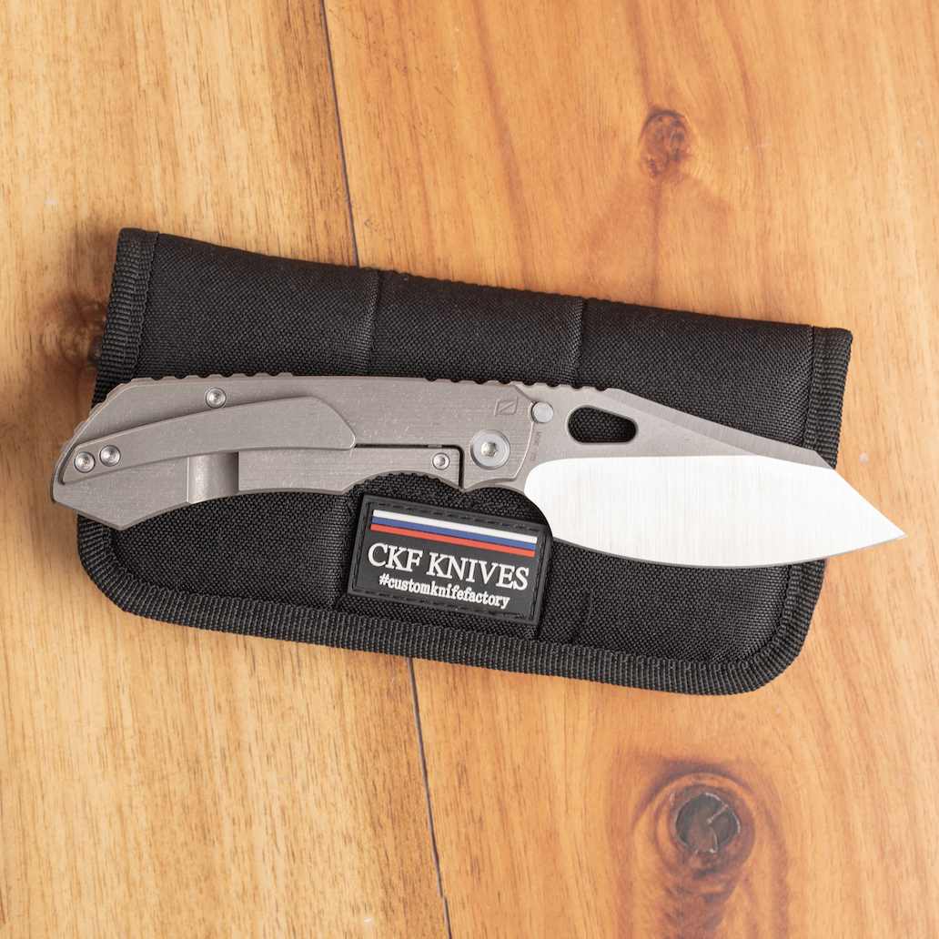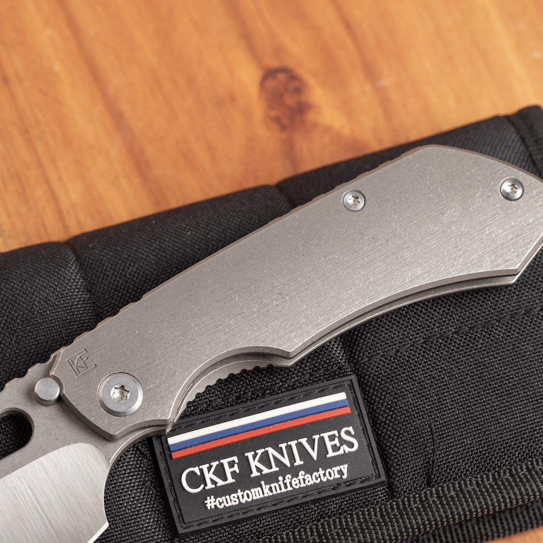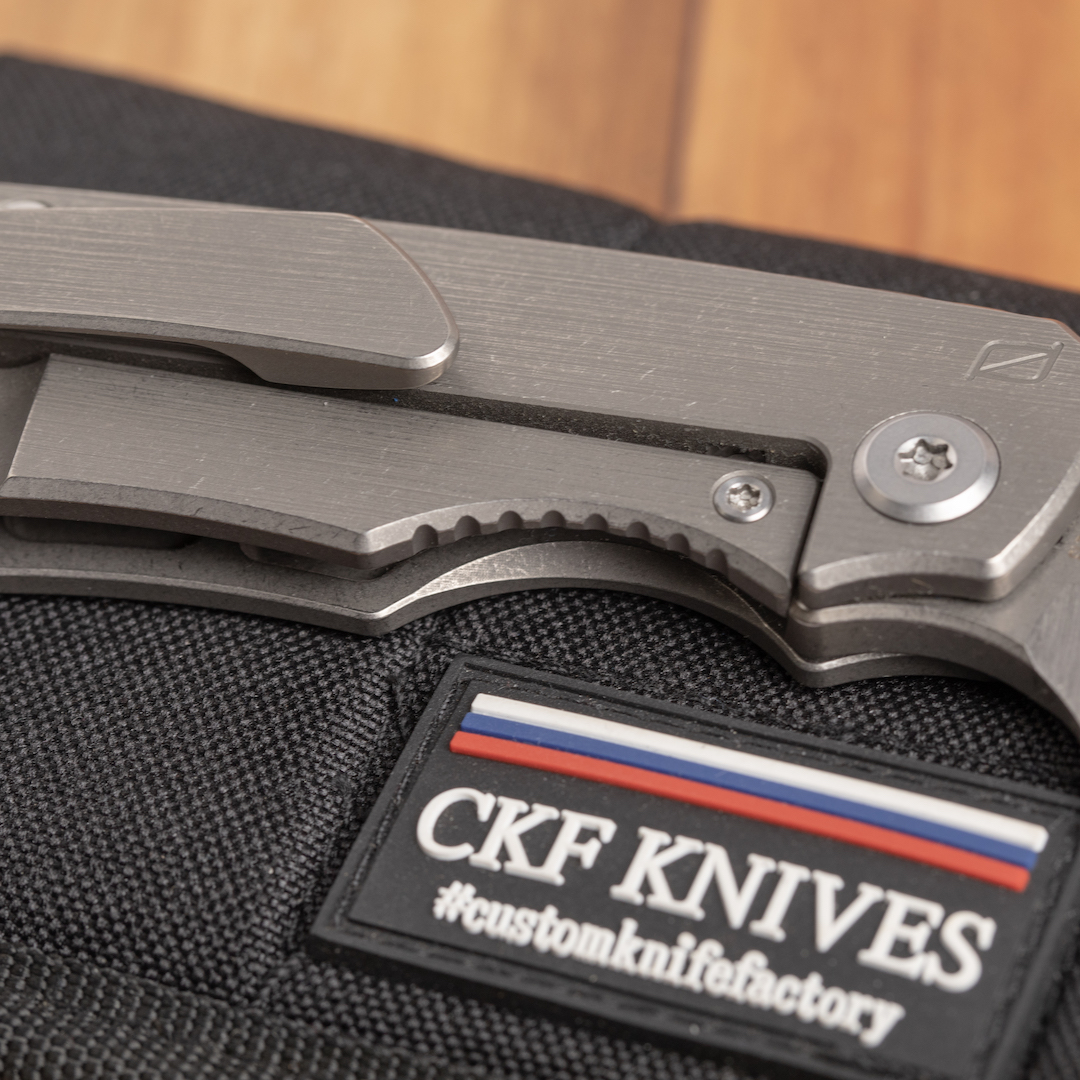 Designed in collaboration with world-renowned custom maker Jon Sorenson (Rotten Design), the CKF Evo 3.0 is a masterpiece of modern folding knife design. The bark-textured, 3D-contoured titanium handle delivers both a striking aesthetic and a tactile grip, while the 3D machined titanium pocket clip integrates seamlessly with the design.