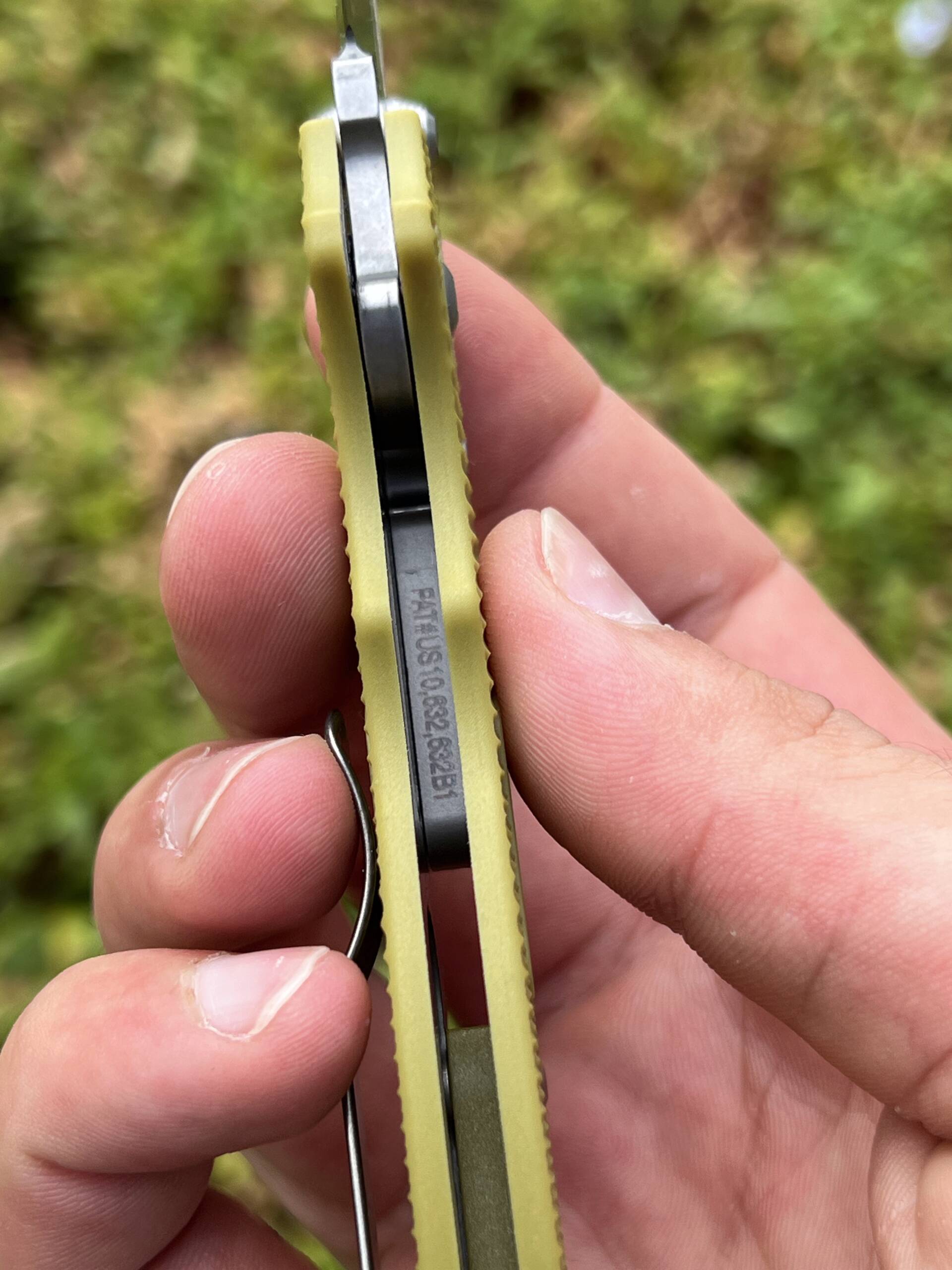 The handle uses Flat Dark Earth Grivory, keeping weight low while maintaining durability and grip. Stainless steel liners reinforce the structure, while the bearing pivot delivers smooth, consistent action. The standout feature is the Shark Lock, positioned on the spine for fast, ambidextrous operation and secure lock strength—allowing confident one-handed opening and closing without placing fingers in the blade path.
