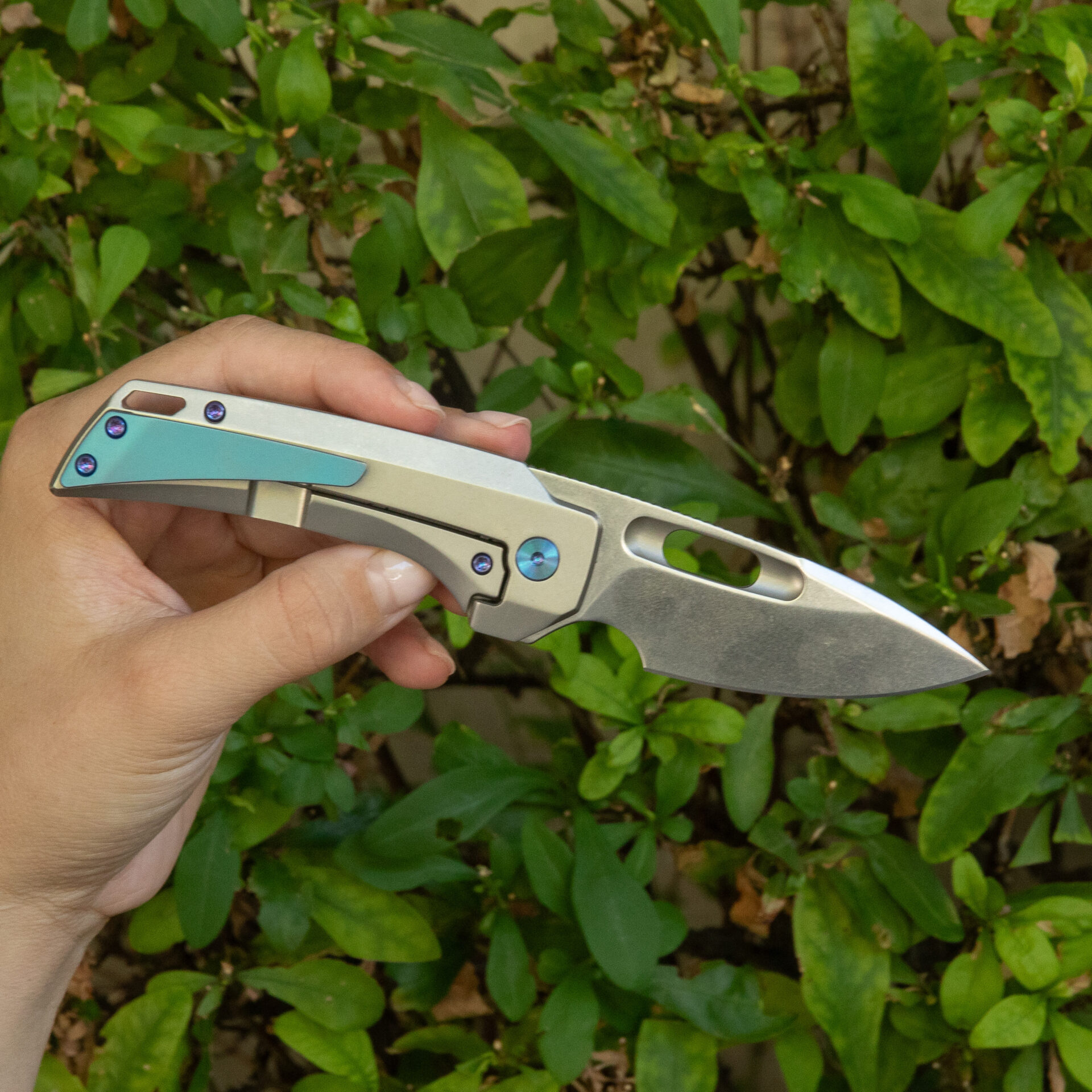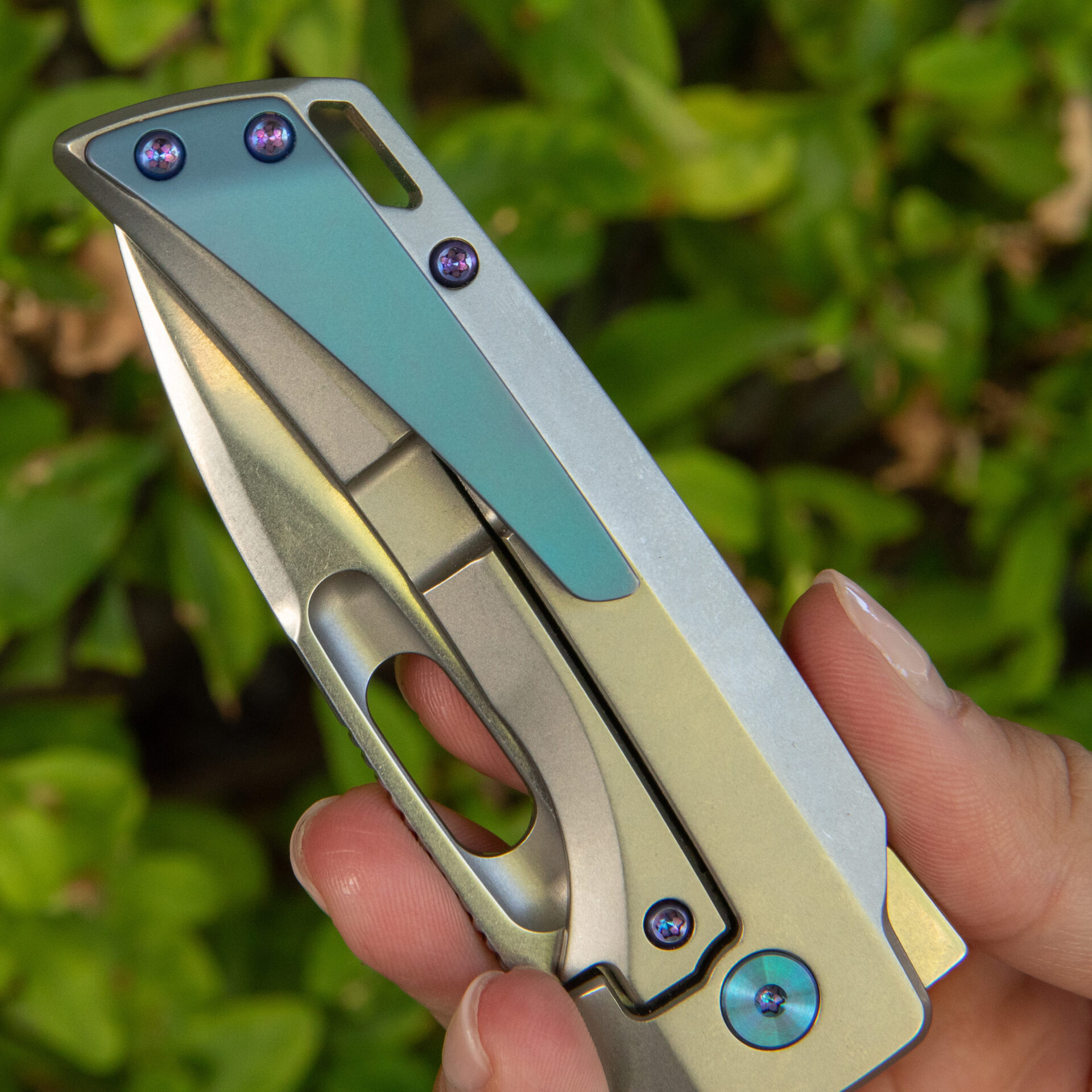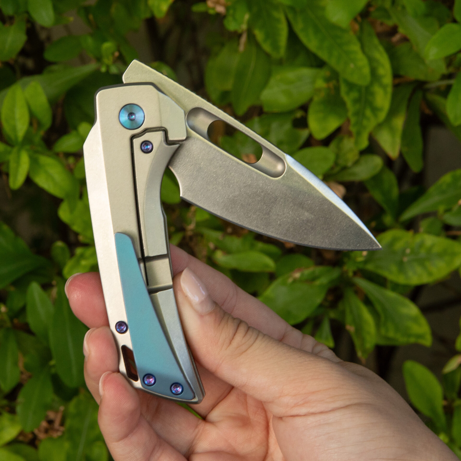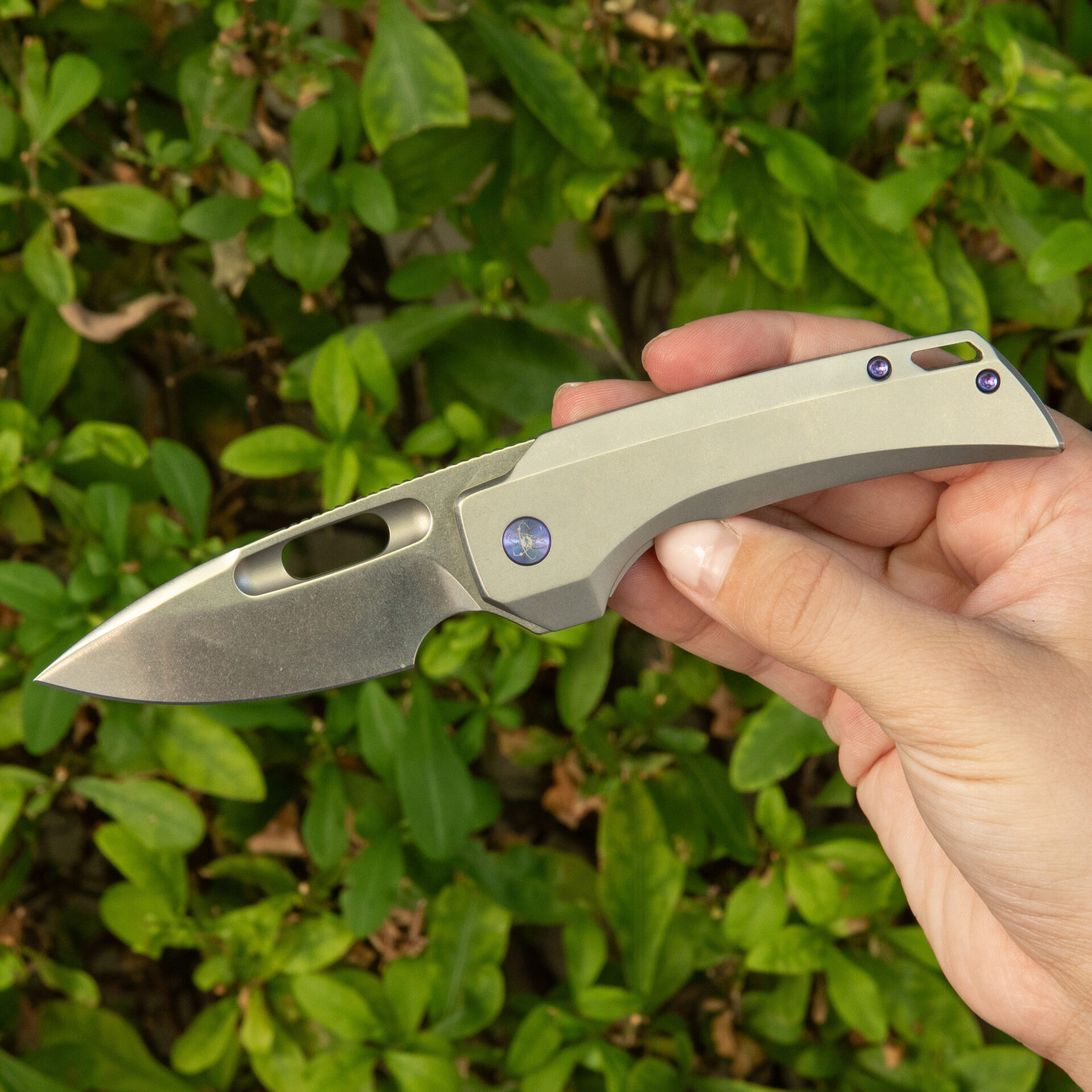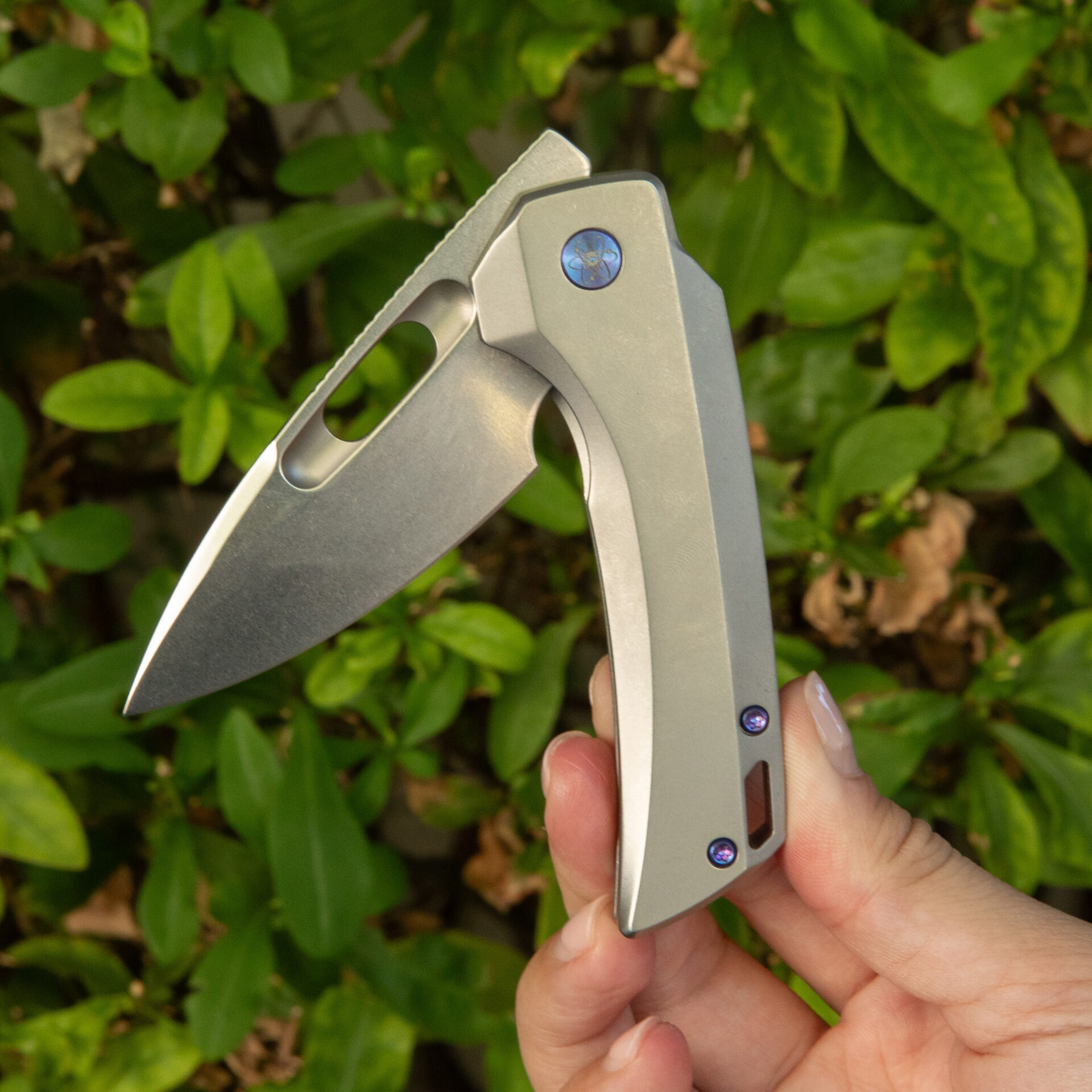 Crafted for comfort, the titanium handle incorporates man-sized finger choil and strategic jimping for a secure grip. With a handle length of 4.0 inches and a weight of 3.67 ounces, the Nymble strikes a perfect balance between size and portability.