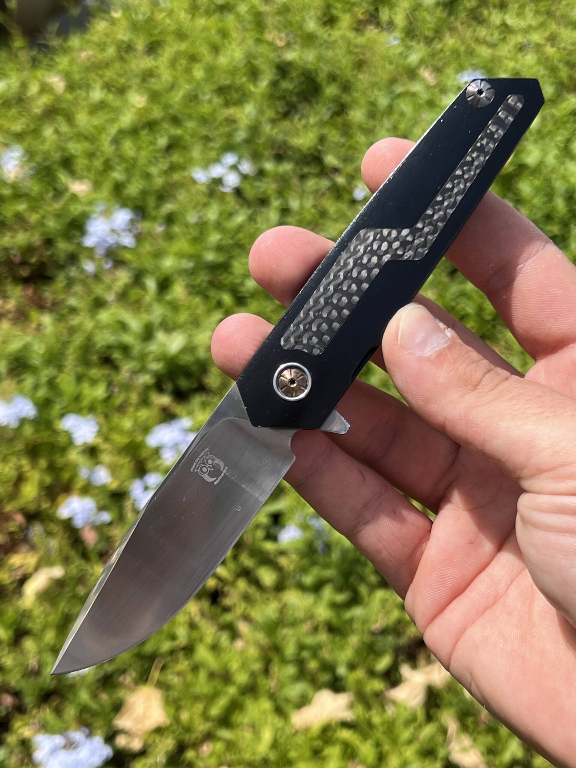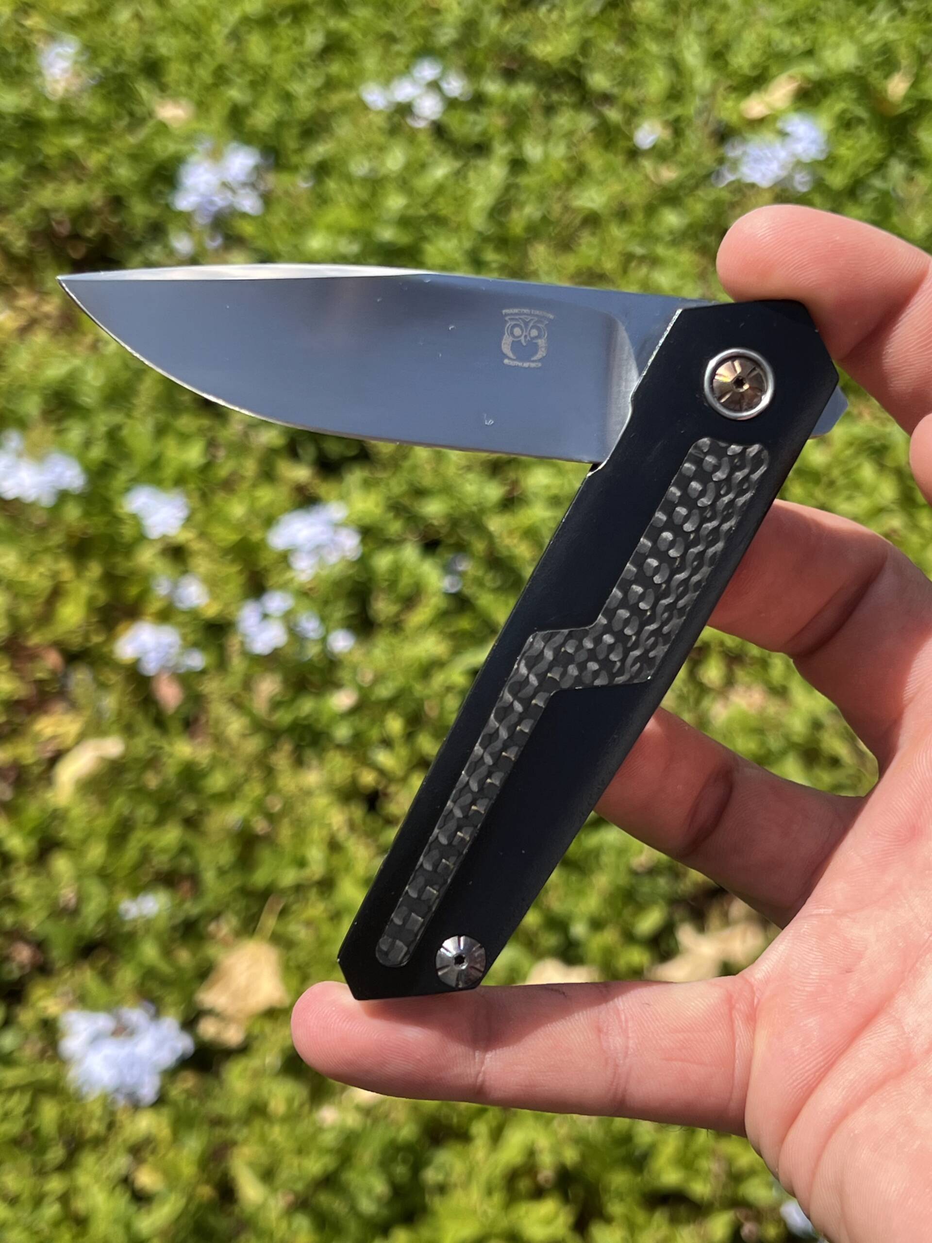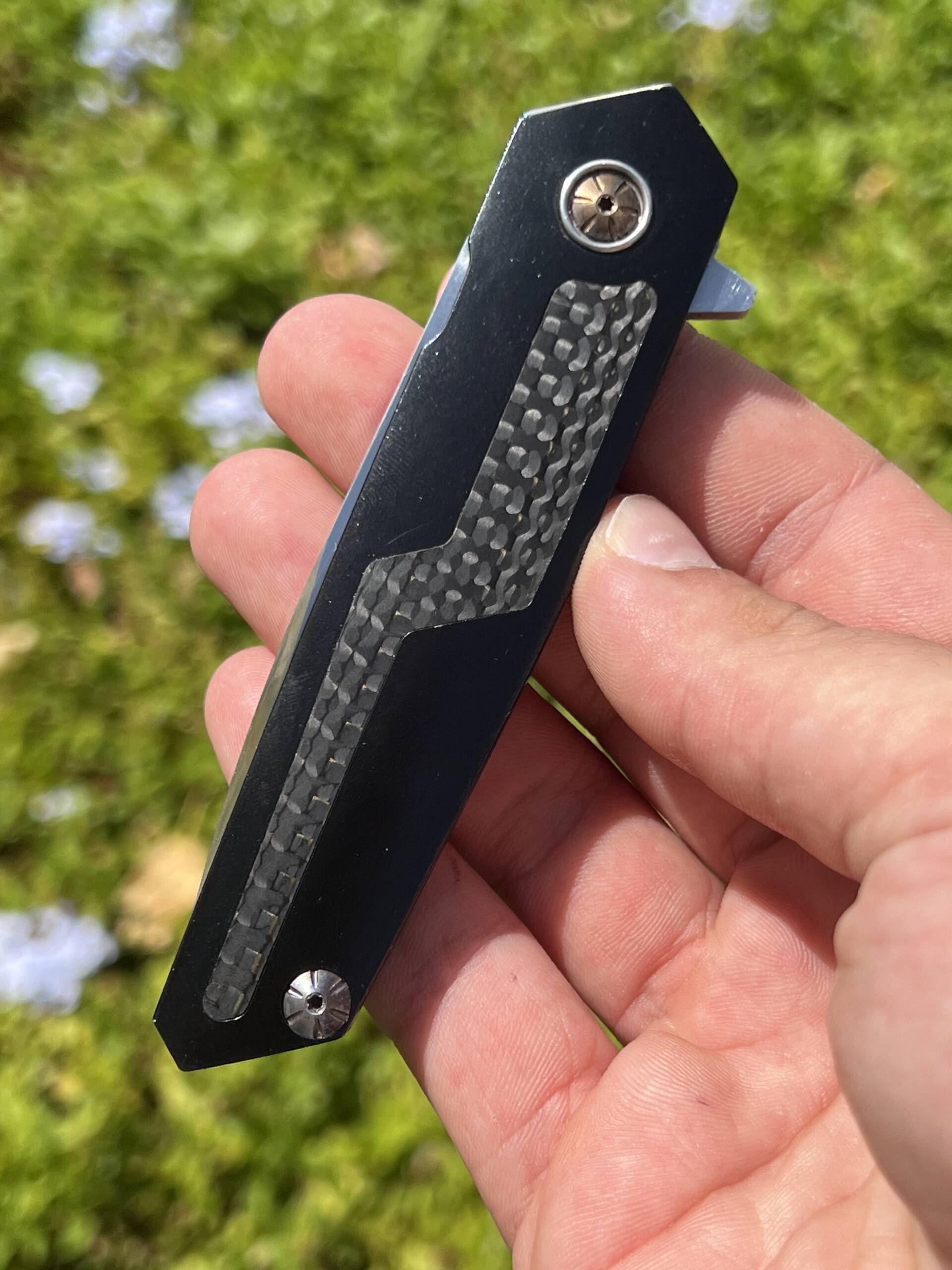 | Handle: | 3mm grade 5 titanium rounded with black Carbon fiber inlay Black guncoat |