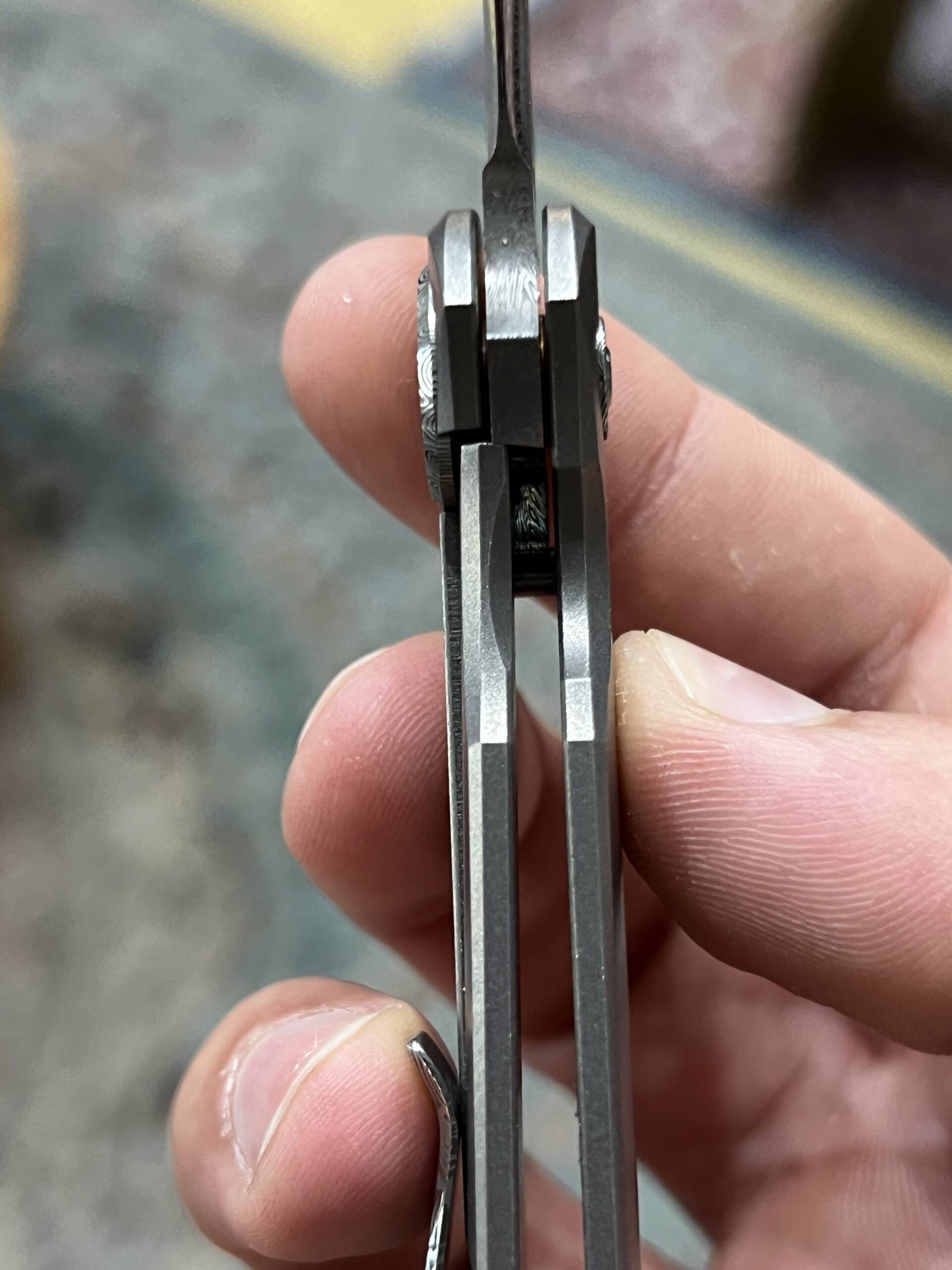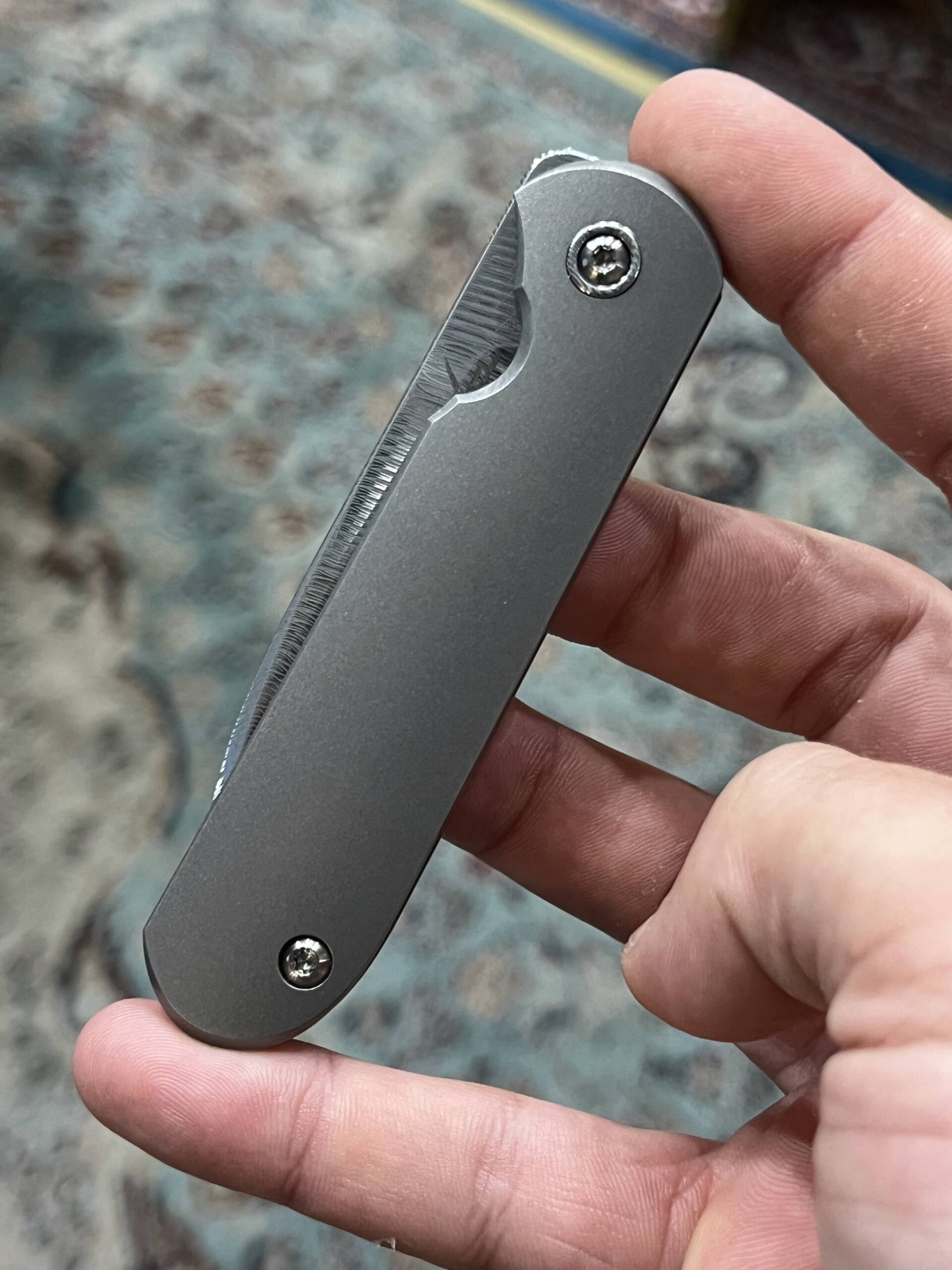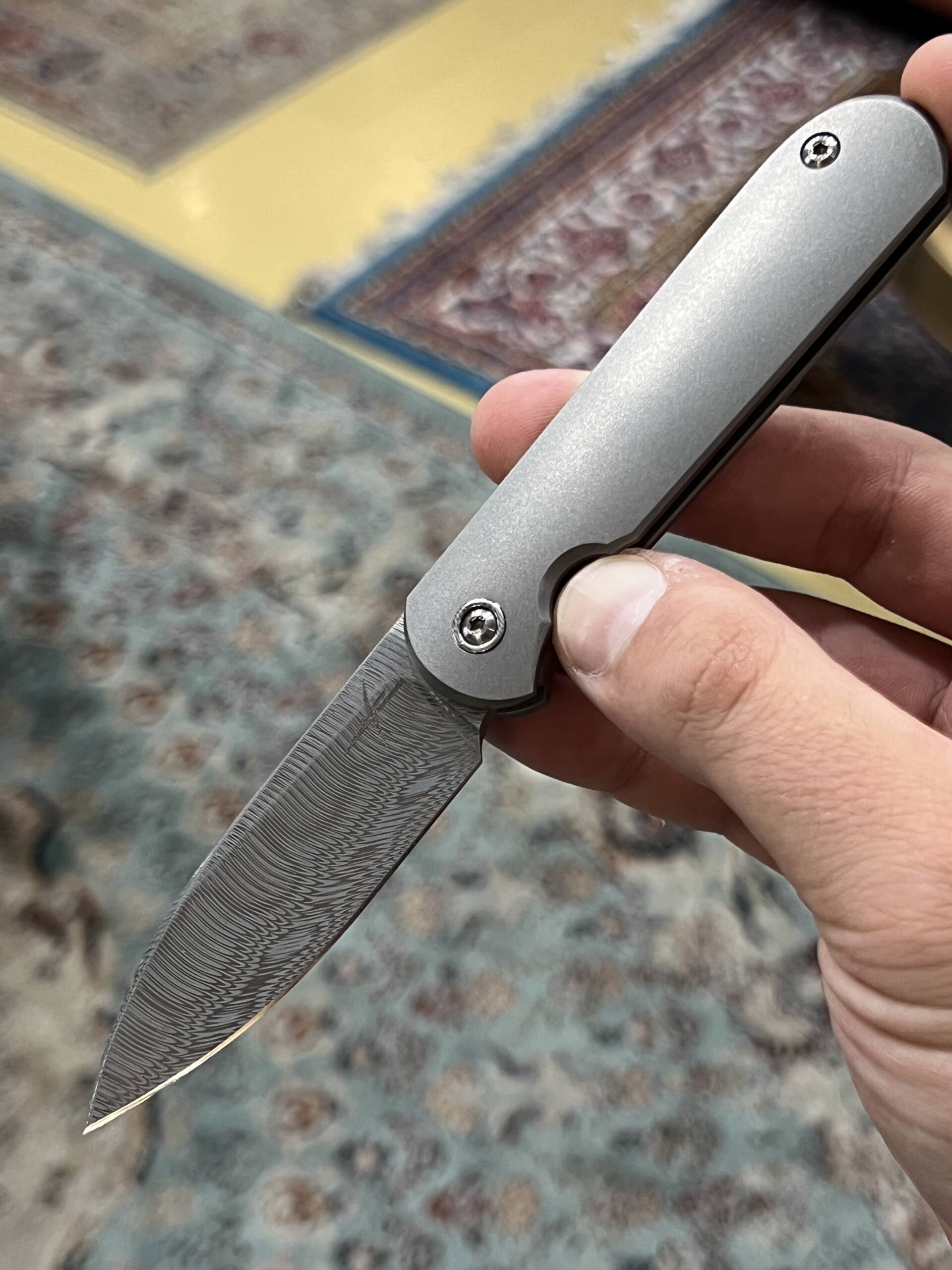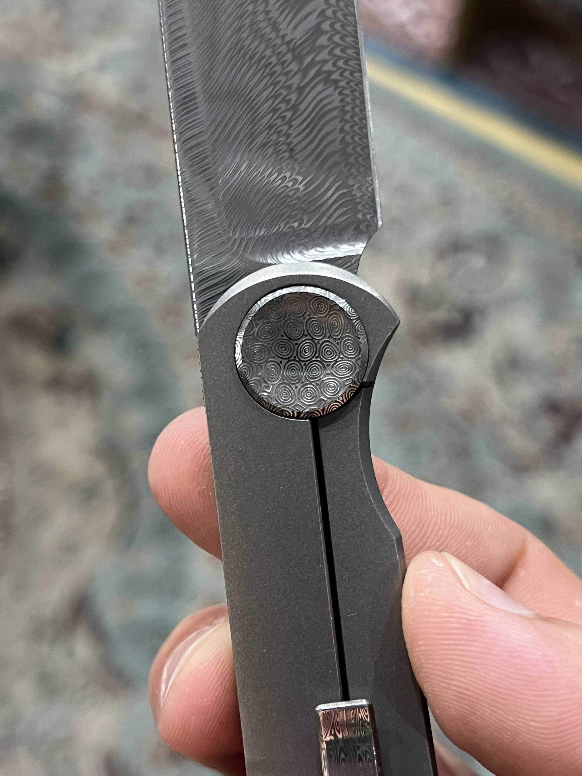 This build is elevated even further with a Damasteel pivot and a matching Damasteel pocket clip, creating a perfectly coordinated, high-end aesthetic that’s rare to find and impossible to ignore. Elegant, minimal, and unmistakably custom—this is a Shamwari made for serious collectors