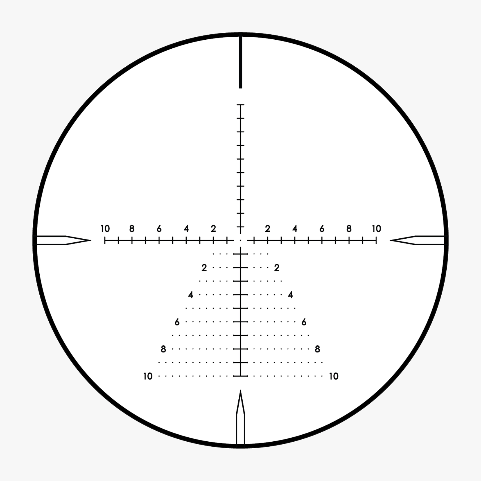 The PRH1 MRAD reticle is designed to stay clean and uncluttered, giving hunters a simple, intuitive aiming point that scales perfectly thanks to its first focal plane (FFP) design. Your holdovers remain accurate at every magnification level — no guesswork, no math, just precision.
