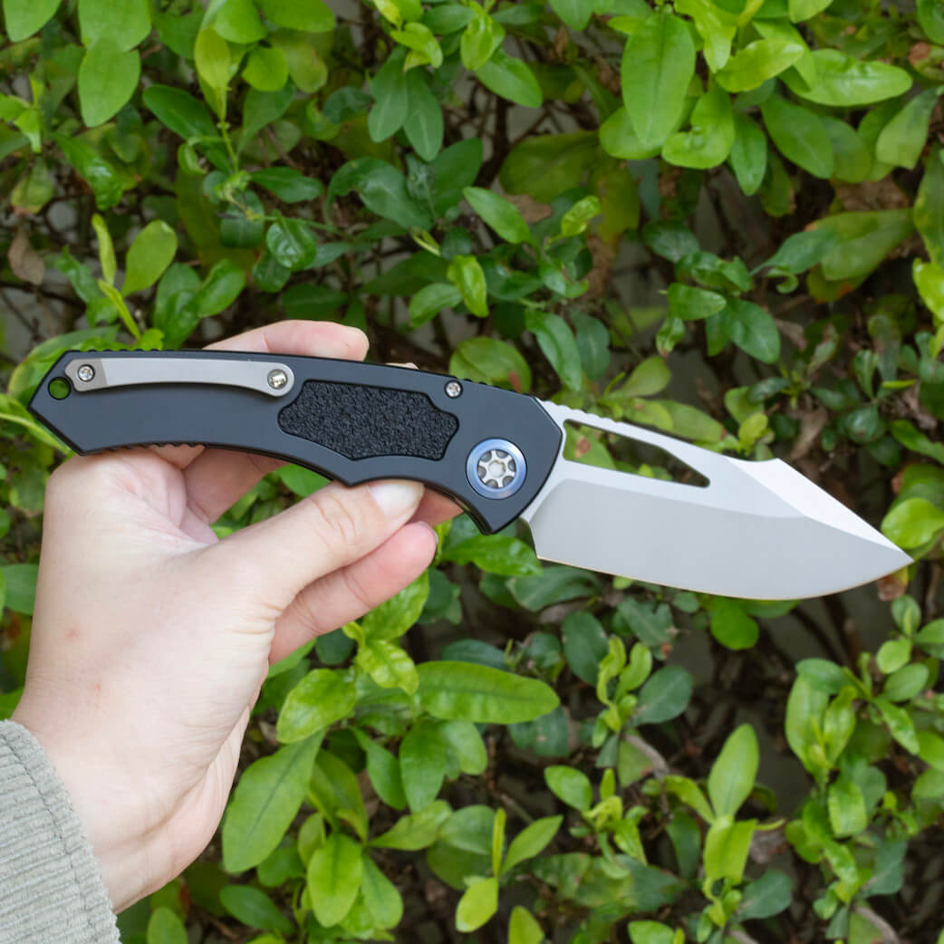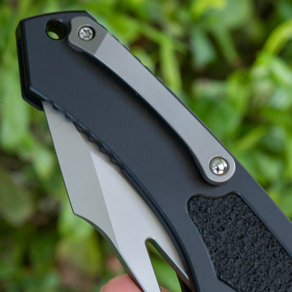 The handle, constructed from high-quality black aluminum, measures 5.16 inches in length and provides a comfortable, ergonomic grip suitable for extended use. It incorporates a secure button lock mechanism for reliable blade deployment and retraction, coupled with a thumb groove opener for quick access. Designed for right-handed users, the Pariah includes a tip-up pocket clip, ensuring convenient and discreet carry wherever you go.