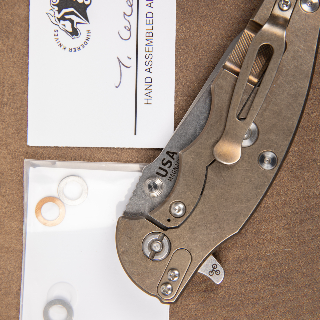 Hinderer Jurassic Magnacut Slicer – Tri-Way Pivot | Stonewash | Bronze & Black G10