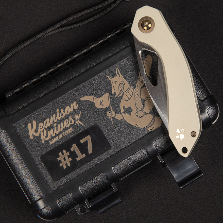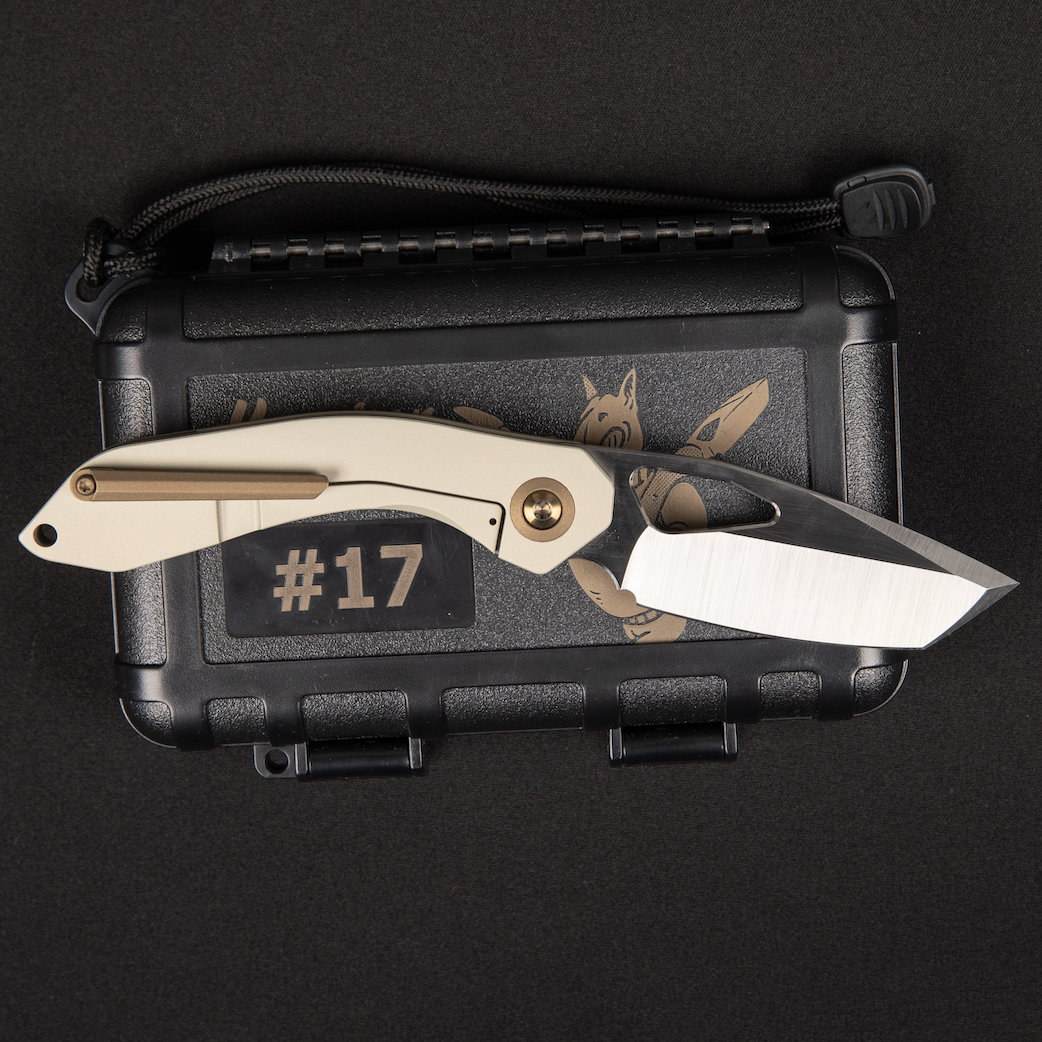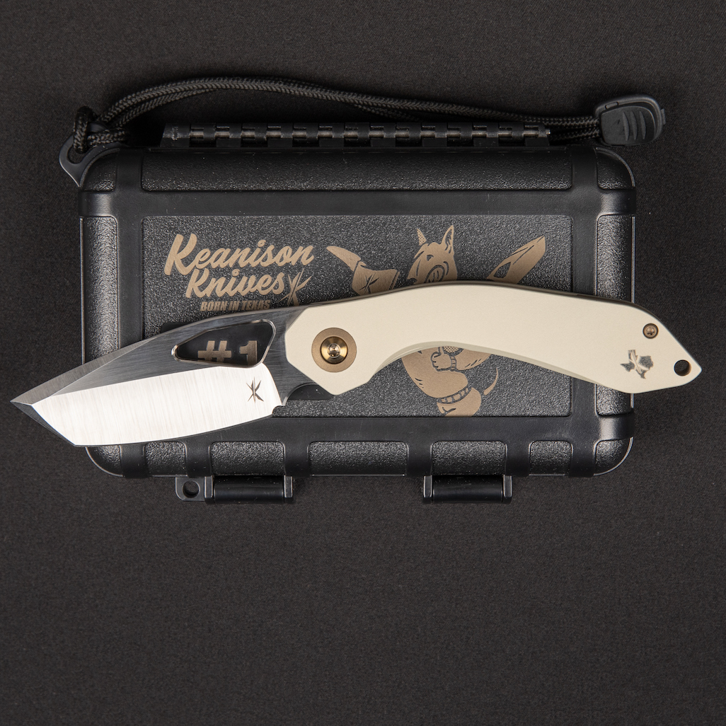 The Bull Terrier from Keanison is a rugged manual folding knife designed with a solid, ergonomic Cerakote titanium handle that feels substantial and comfortable in hand. The milled scales reduce weight without sacrificing strength, while the 3.3″ satin-finished blade crafted from premium 20CV steel offers robust cutting power and reliability for all your EDC tasks.