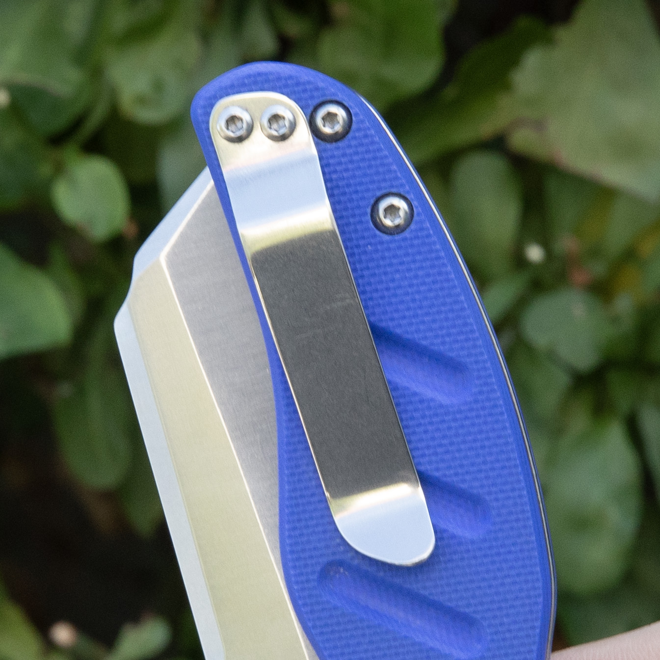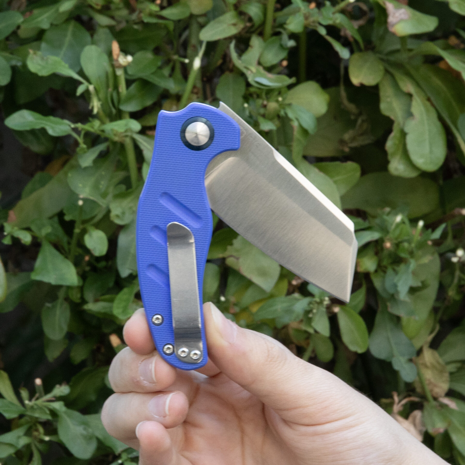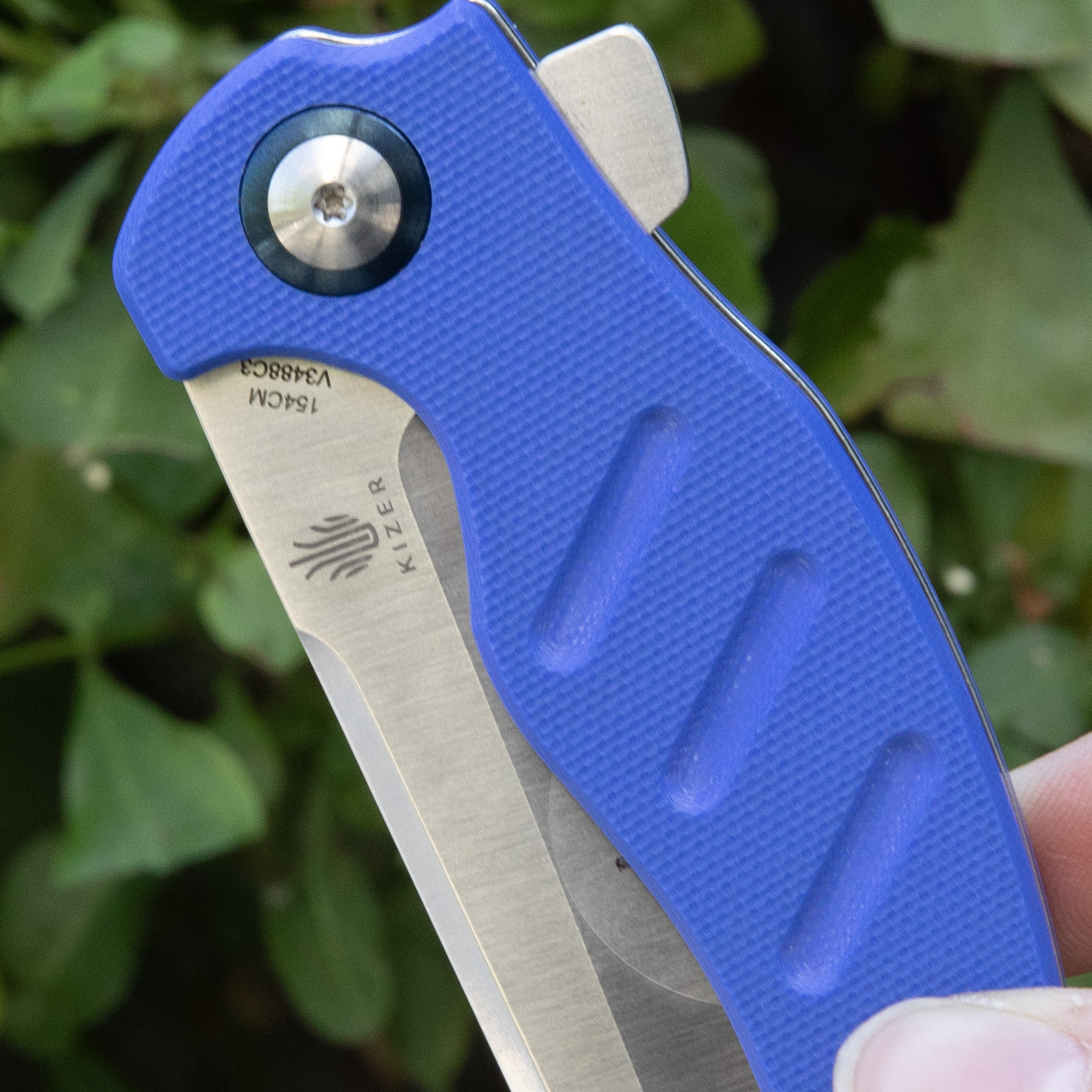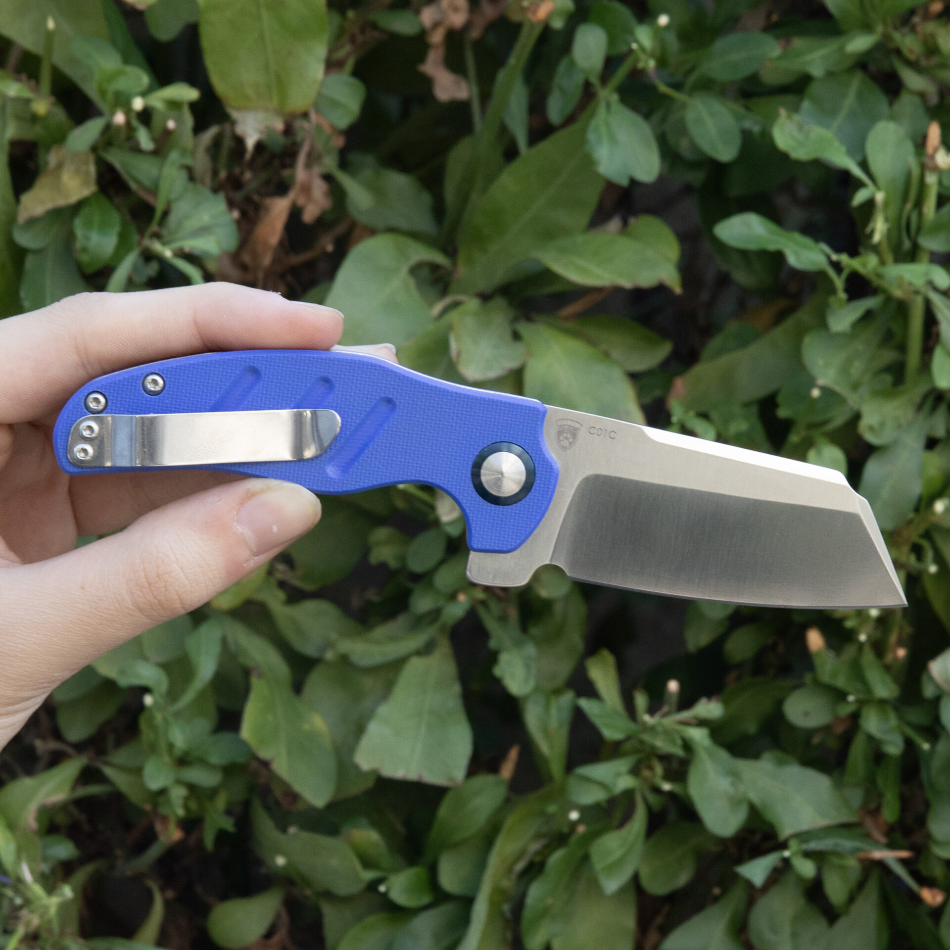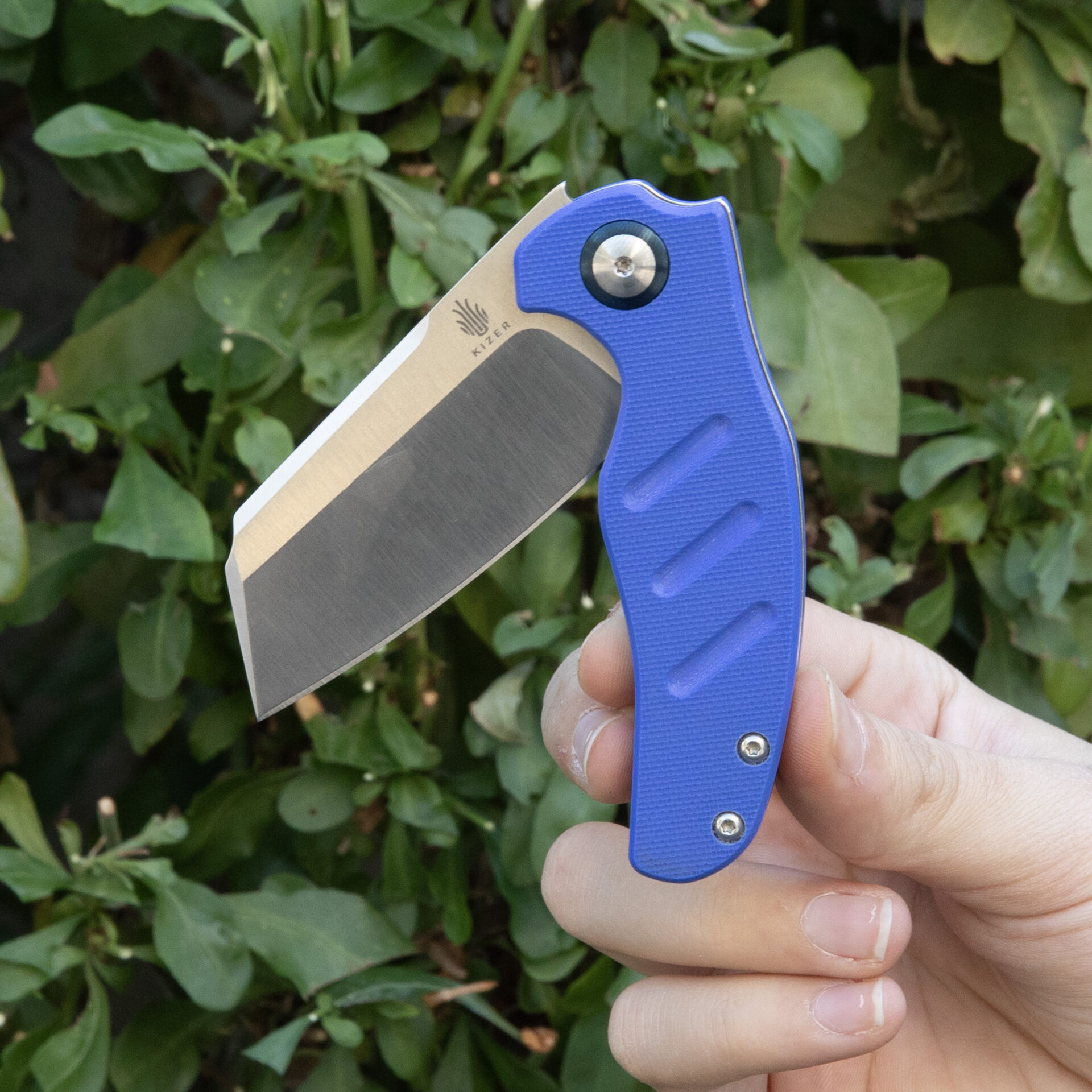 The Kizer Vanguard Mini Sheepdog Flipper C01C – a compact rendition of Chris Conaway’s iconic cleaver design. Crafted with precision, its satin-finished 154CM stainless steel blade effortlessly deploys via a smooth ball bearing pivot, ensuring reliable performance. The addition of a deeper finger choil enhances handling, while the lightweight and durable micarta handle offer a comfortable grip. With its tactical functionality and stylish blue G-10 handle scales, this knife strikes the perfect balance between utility and sophistication. Complete with a steel liner lock and pocket clip for convenient carry, the C01C Sheepdog flipper embodies craftsmanship and versatility for everyday use.