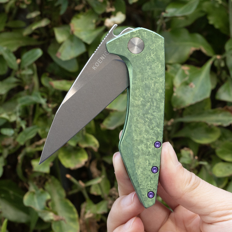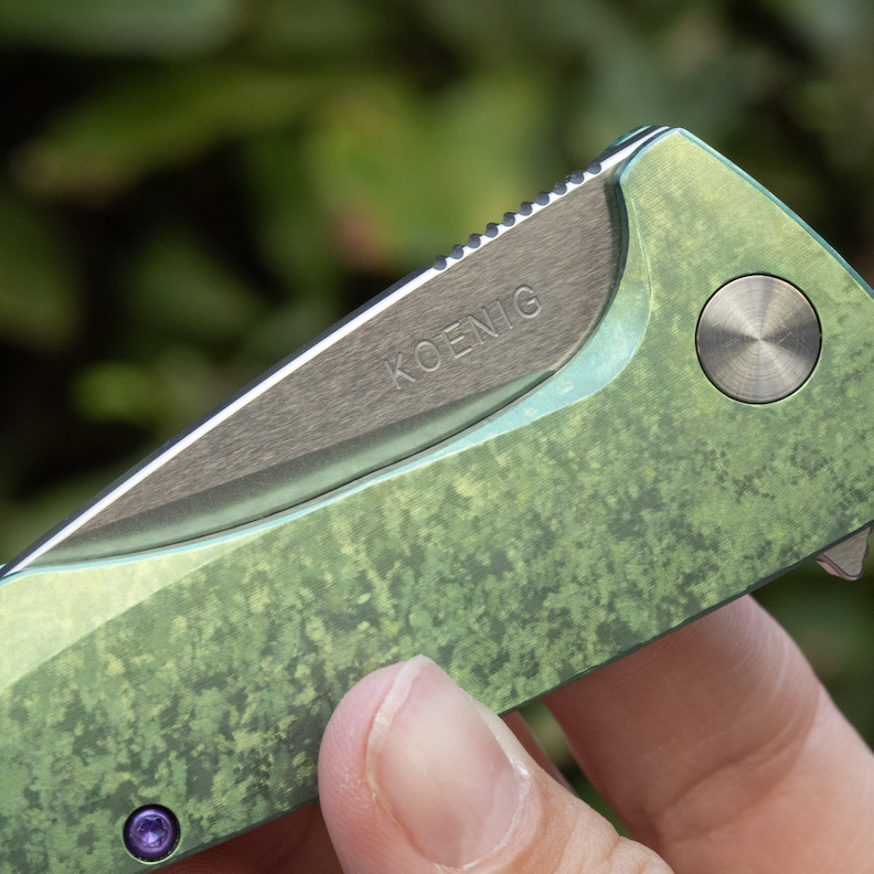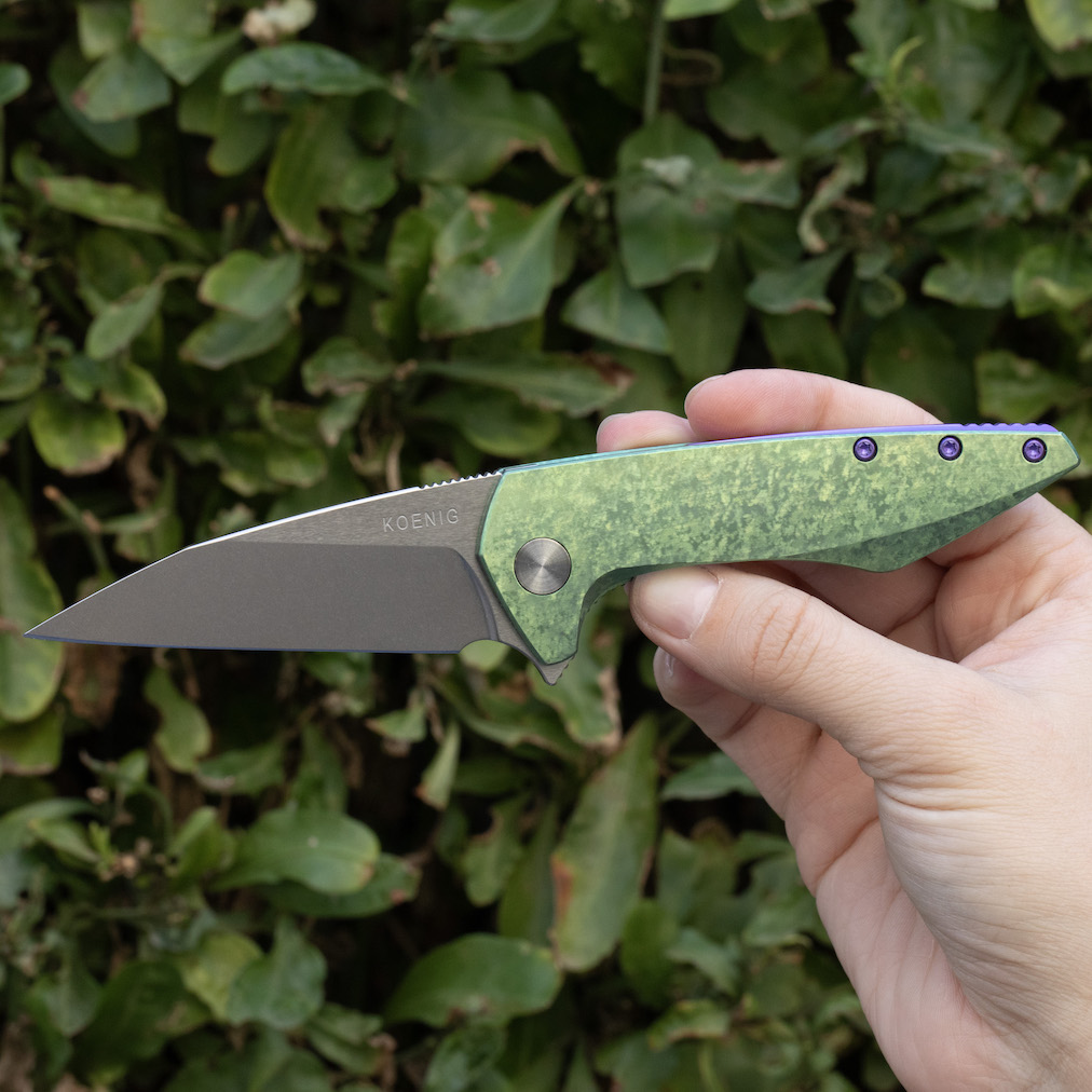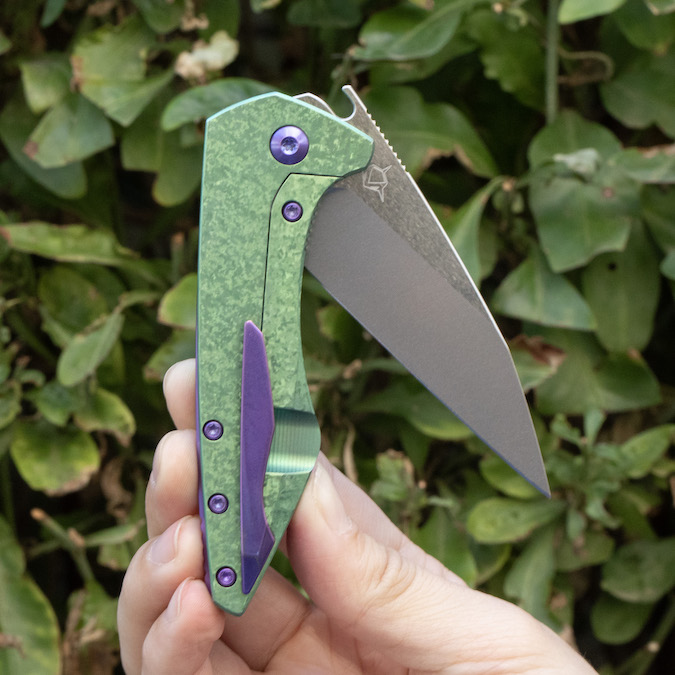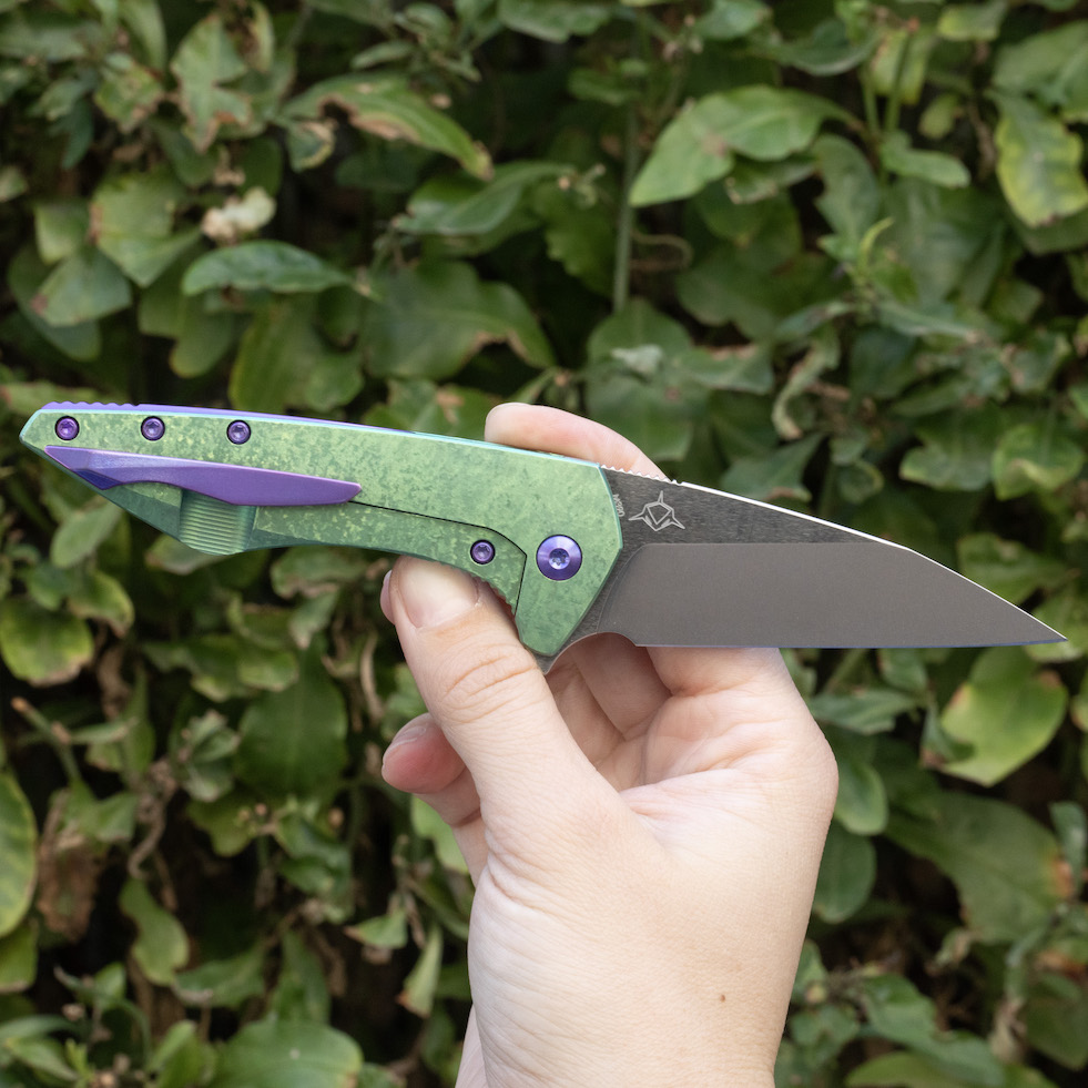 Built around a lightweight titanium handle, the Mini Goblin offers excellent balance and rigidity, while the distinctive green finish adds a bold, modern edge to an already iconic design. Every detail reflects precision machining and collaboration-level craftsmanship, making this knife as collectable as it is capable.