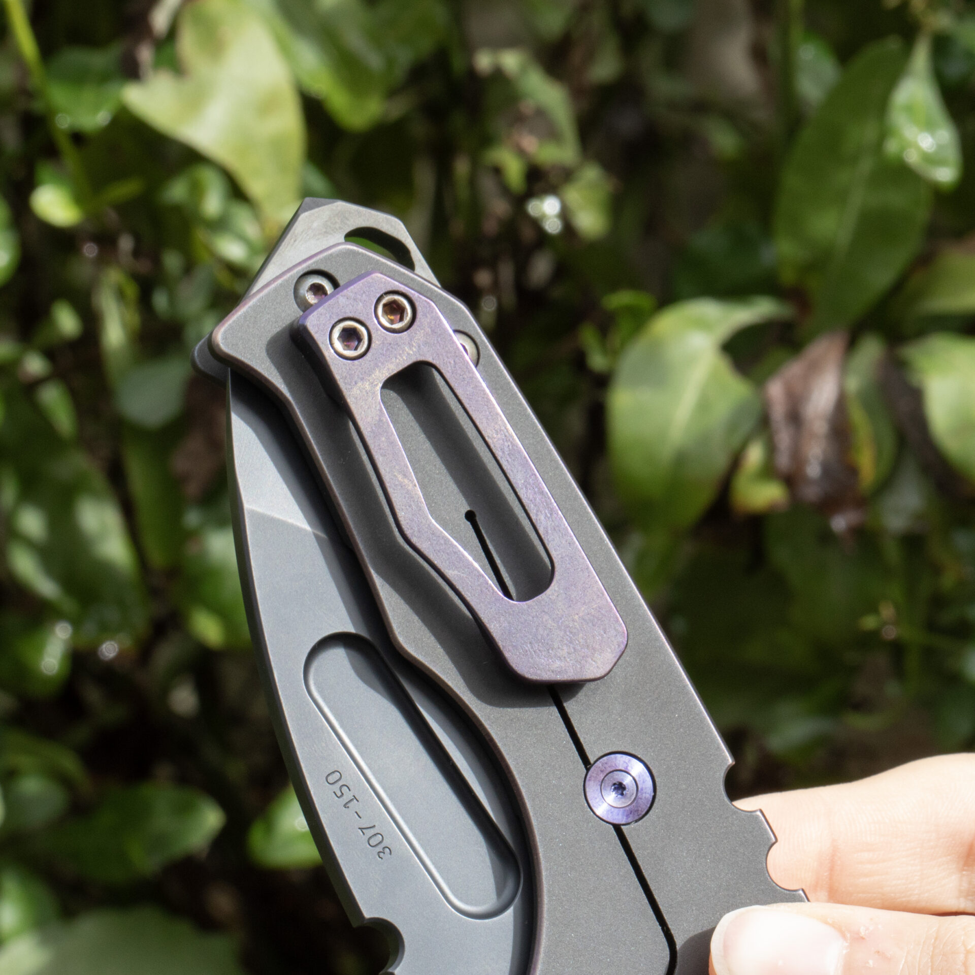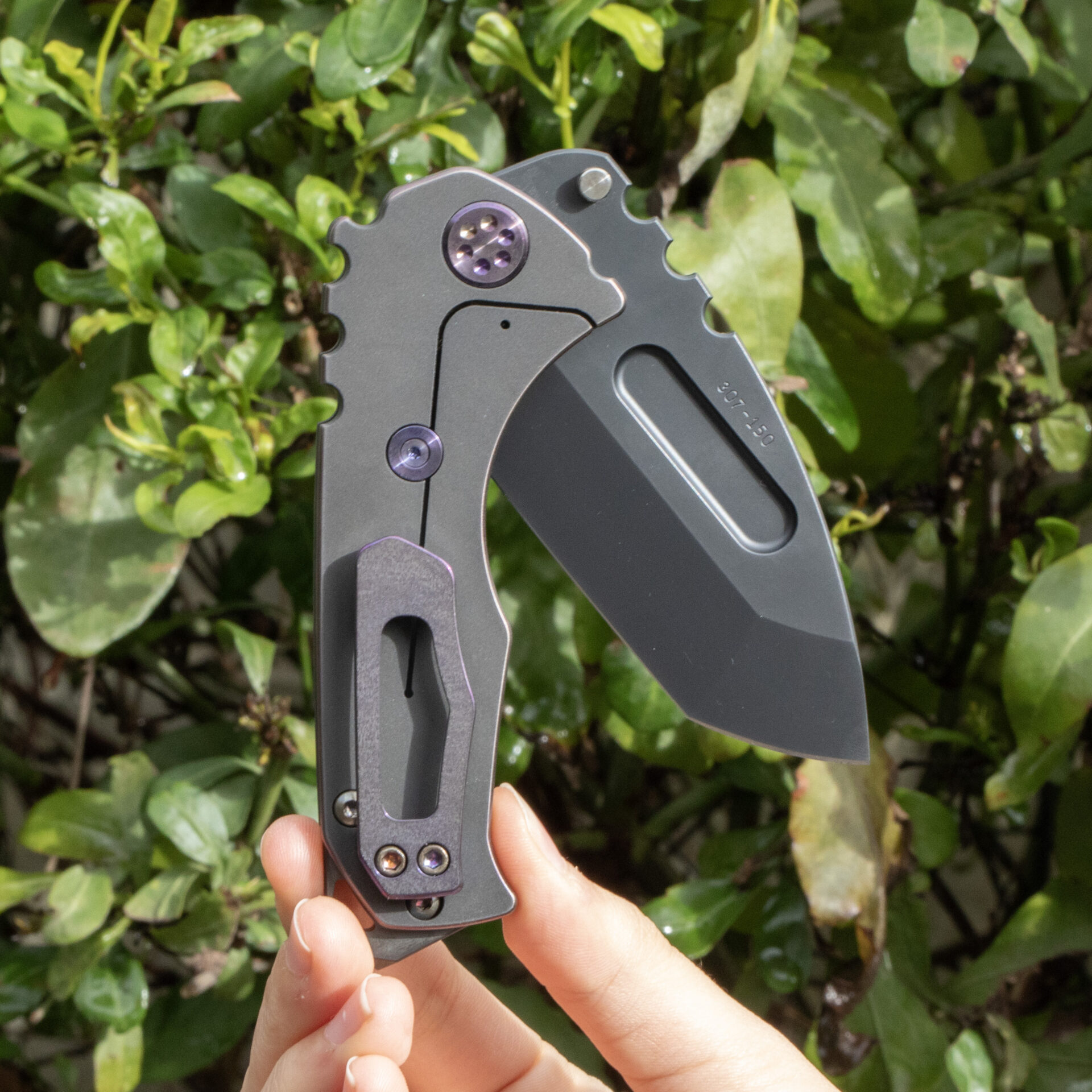 - Design: The pocket clip is also finished in violet, ensuring a secure carry and adding to the knife’s cohesive, stylish appearance.