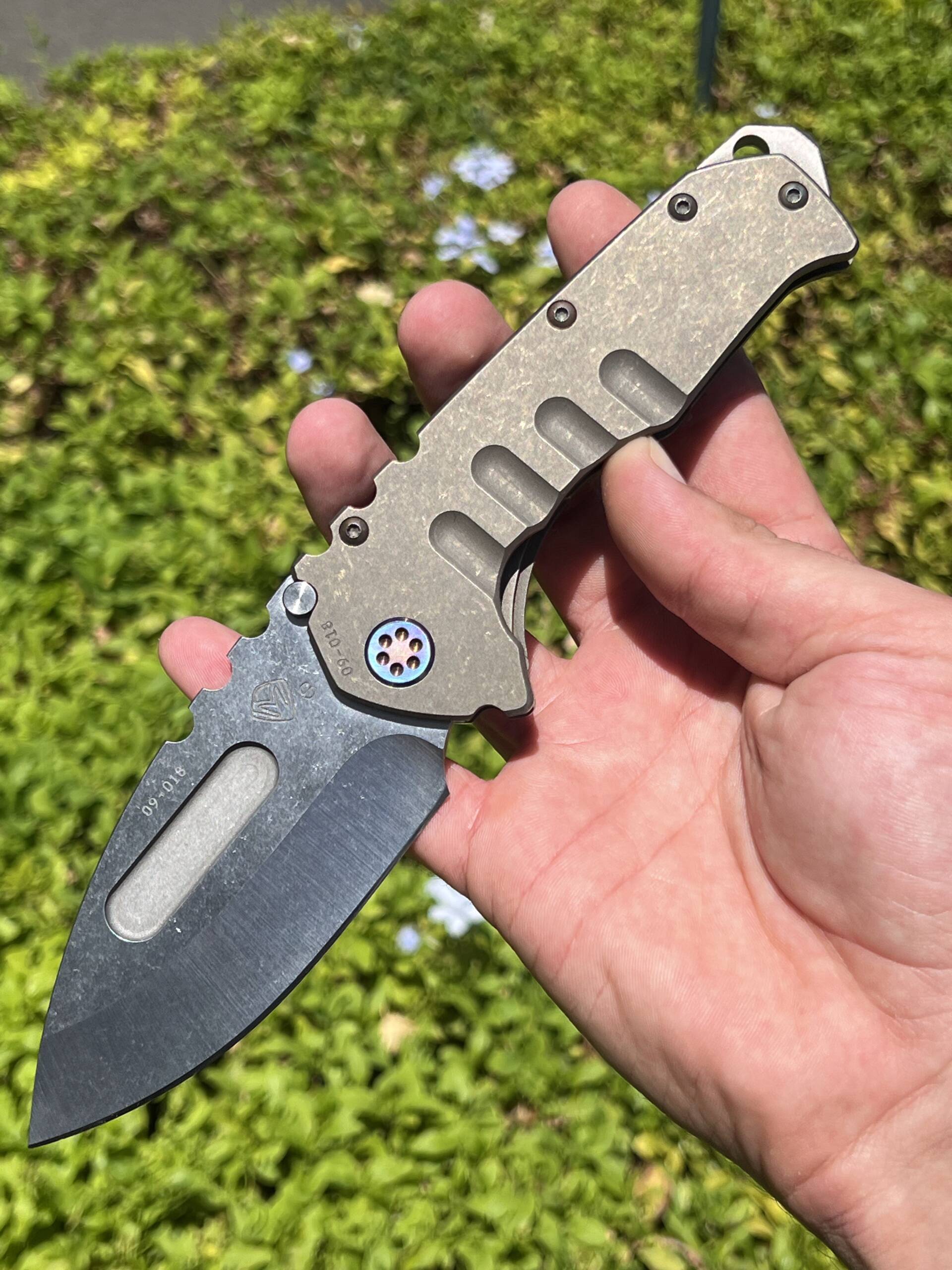 An American-made hard-use folder with intentionally overbuilt construction. Thick CPM S35VN blade, bronze anodized titanium frame, and rock-solid frame lock. Built for strength, not subtlety.