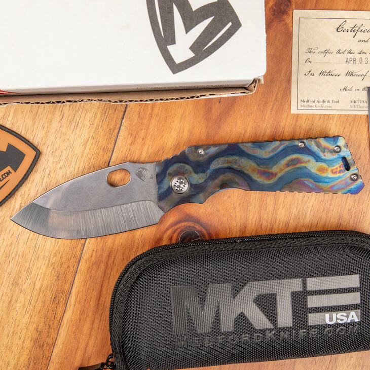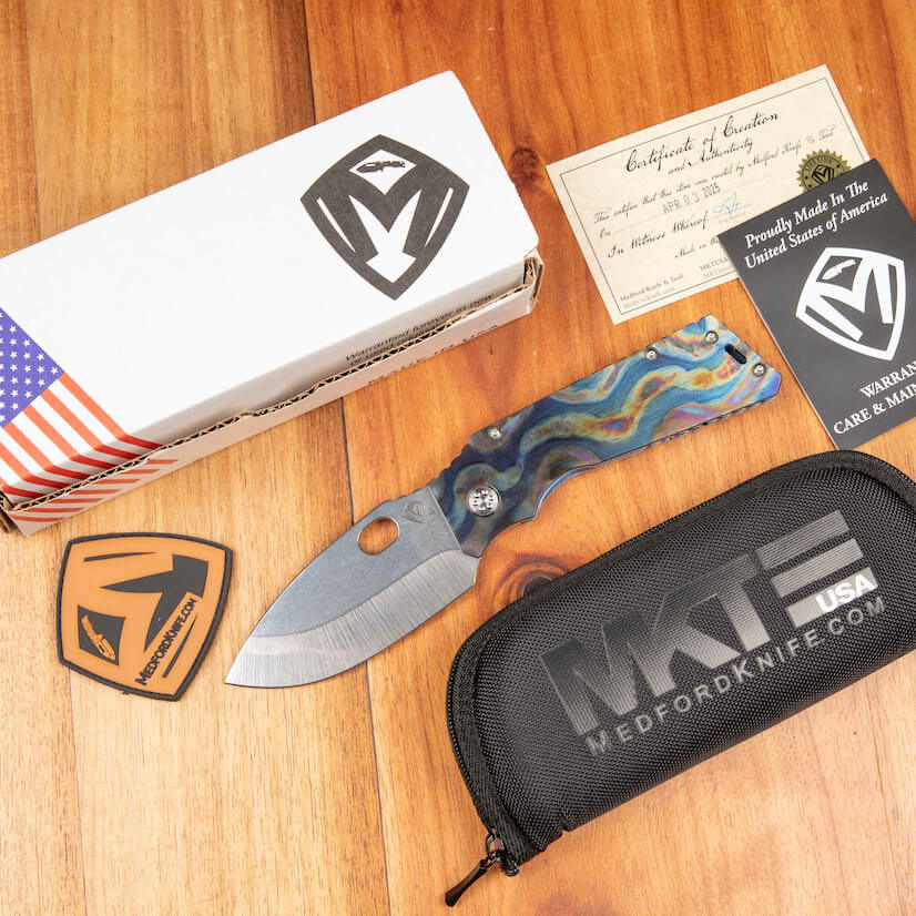 Or as low as R3,687.50 / month interest-free, using your existing credit card. For orders over R100.00.How it worksThe Medford TFF-1 “WAVE” is a bold, full-size folder featuring a rugged S45VN blade, WAVE-patterned faced handle, blue anodized spring, and flamed titanium clip. Made in the USA and comes complete with box, pouch and COA