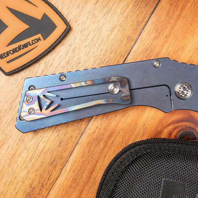 Pocket Clip: Brushed/flamed titanium with WAVE design