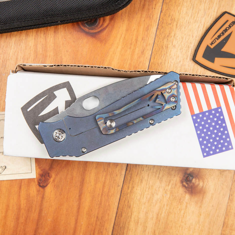 | Pocket Clip: | Brushed/Flamed titanium with "WAVE" design |