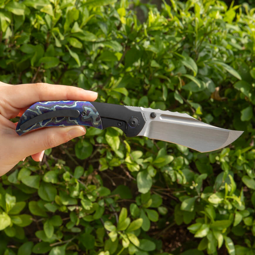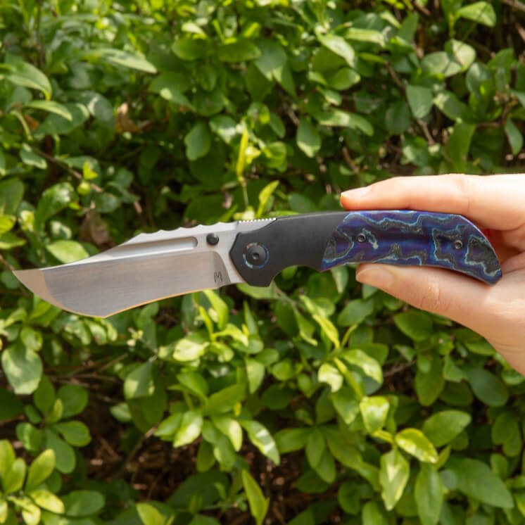 The Merriken Knives Mini Ultimatum combines elegance with performance. With an overall length of 7.6″ and a 3.3″ MagnaCut blade featuring a hand-rubbed finish, this knife stands out in both form and function. The handle and collars are crafted from Zircuti with PVD accents, and the bolster lock mechanism ensures a secure grip. Equipped with a front flipper, traditional flipper, and dual thumbstuds for versatile opening options. Proudly made in Reate, China.