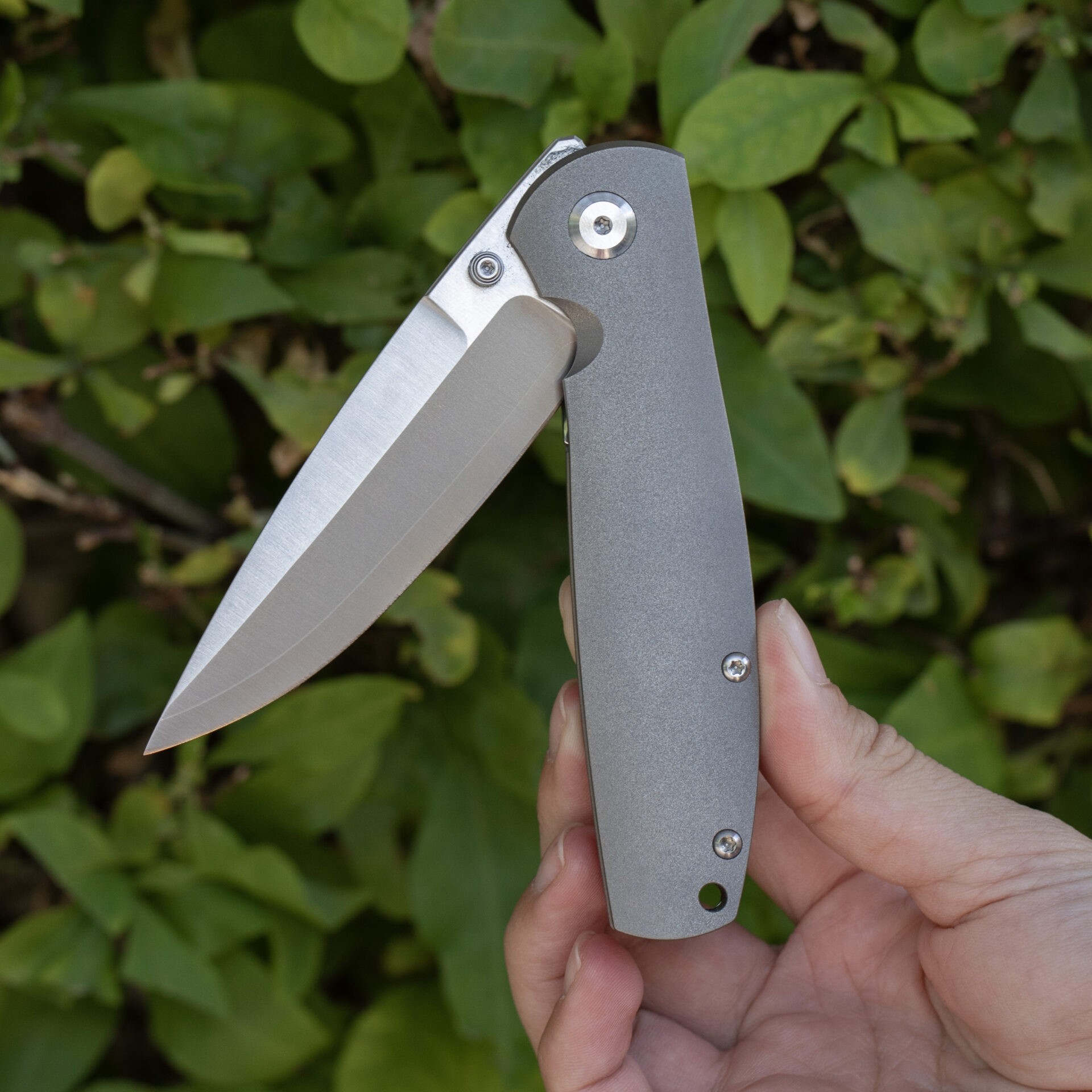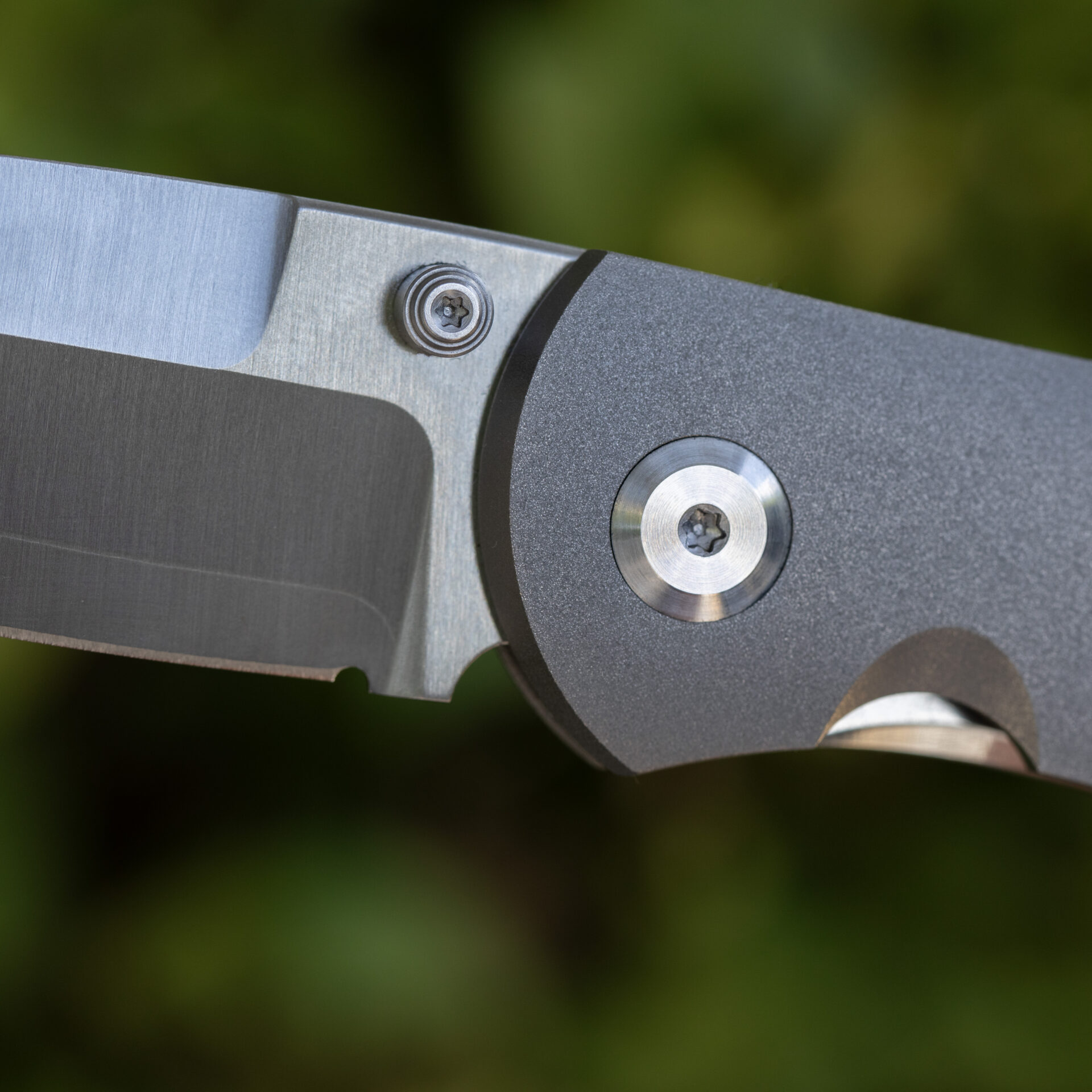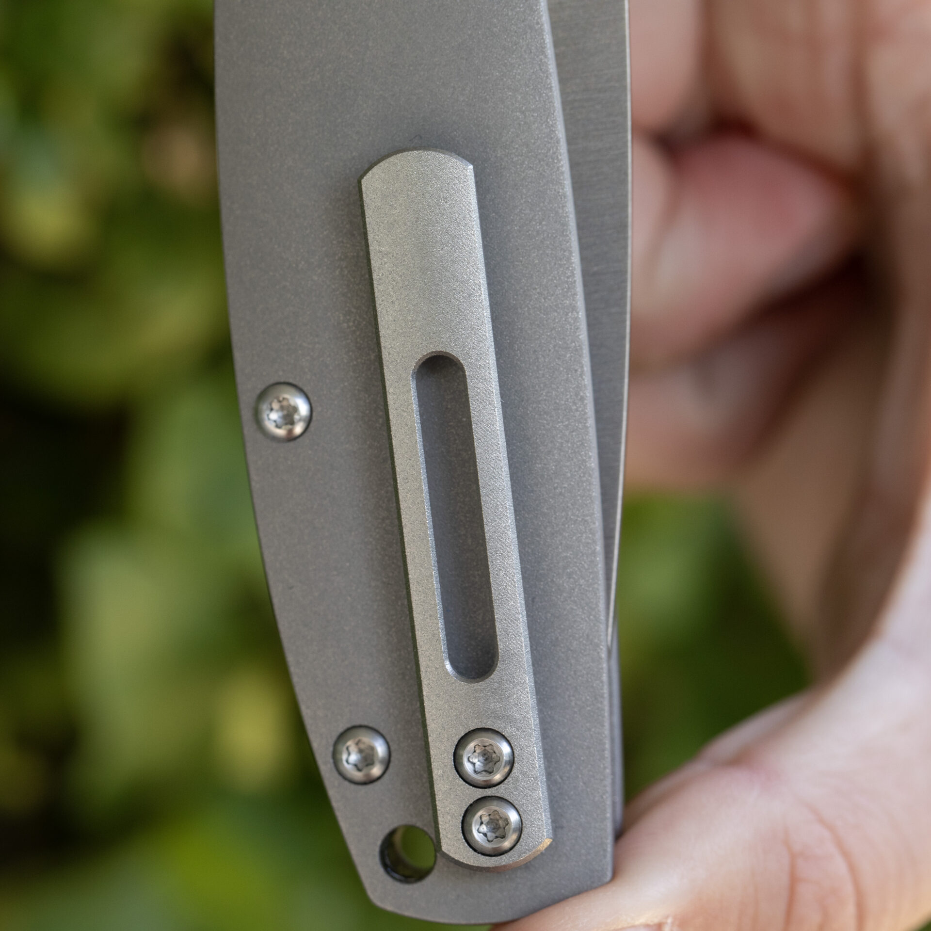 Crafted for precision and comfort, the handle, made from Zirblast Titanium, measures 4.25 inches and provides a secure grip. The attention to detail extends to the Zirblast Titanium backspacer, enhancing the knife’s overall aesthetic.