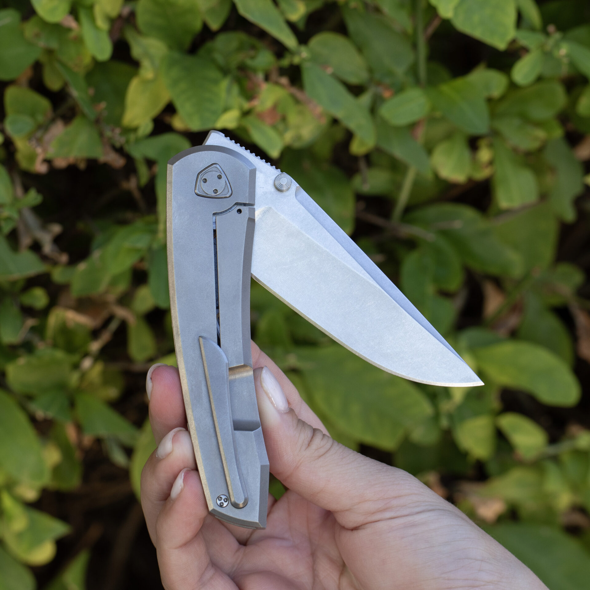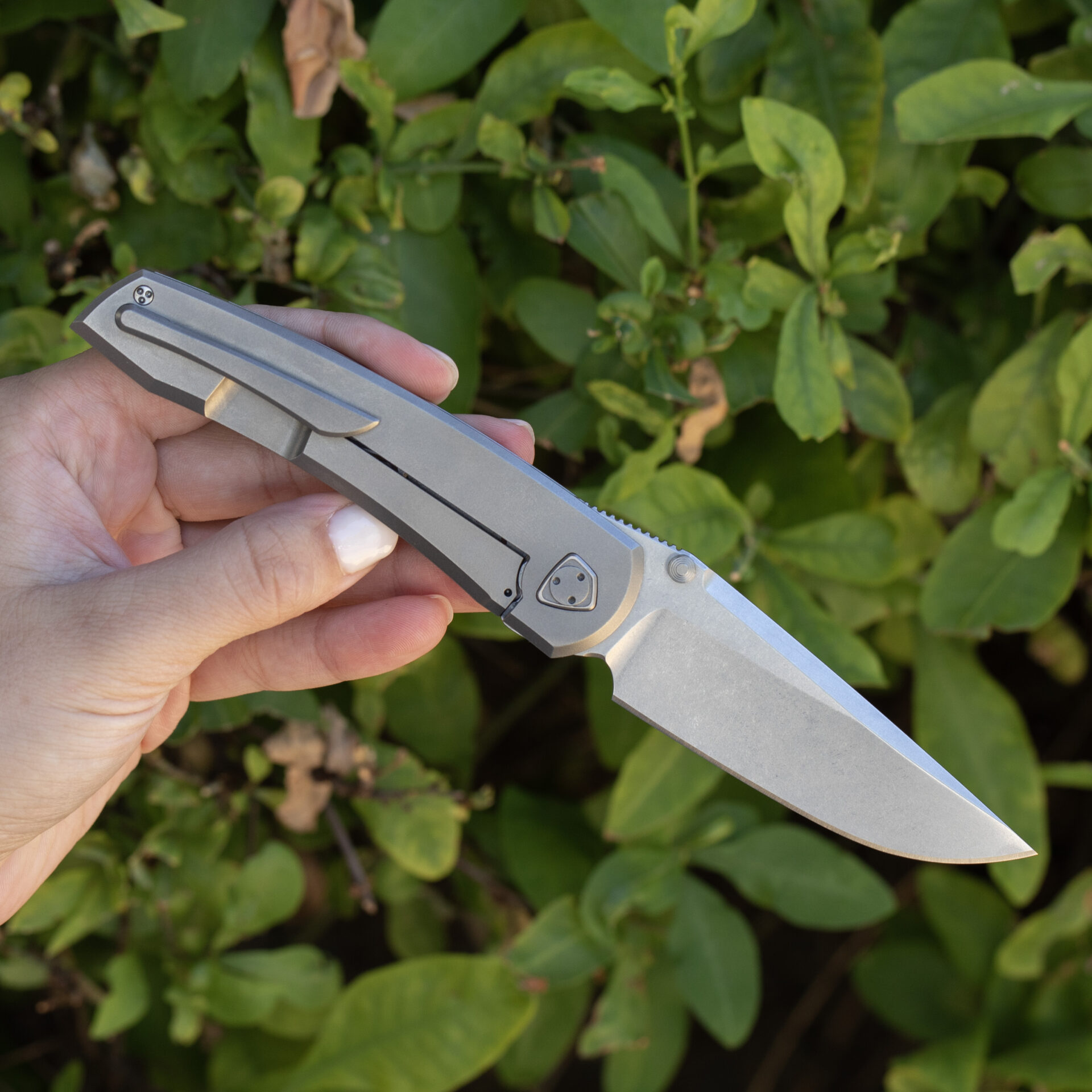 The Sharknivo Waka knife is a remarkable and distinctive cutting tool designed for precision and durability. The knife boasts a unique blend of high-quality materials and expert craftsmanship, making it a standout in the world of edged instruments. The handle of the Waka model features a Ti/Zirblast finish, combining the lightweight strength of titanium with a textured zirblast surface for enhanced grip and a modern aesthetic appeal.