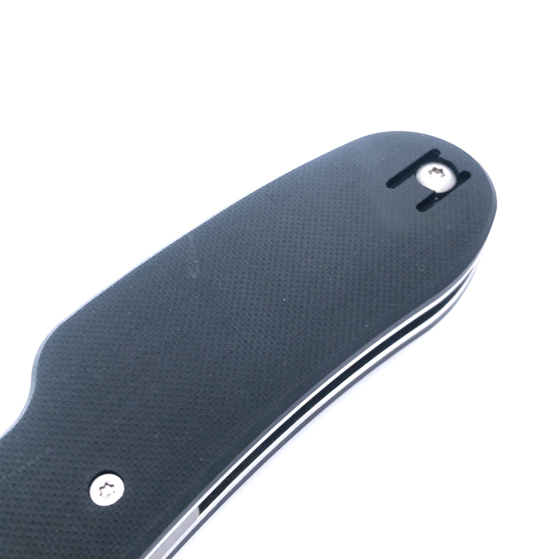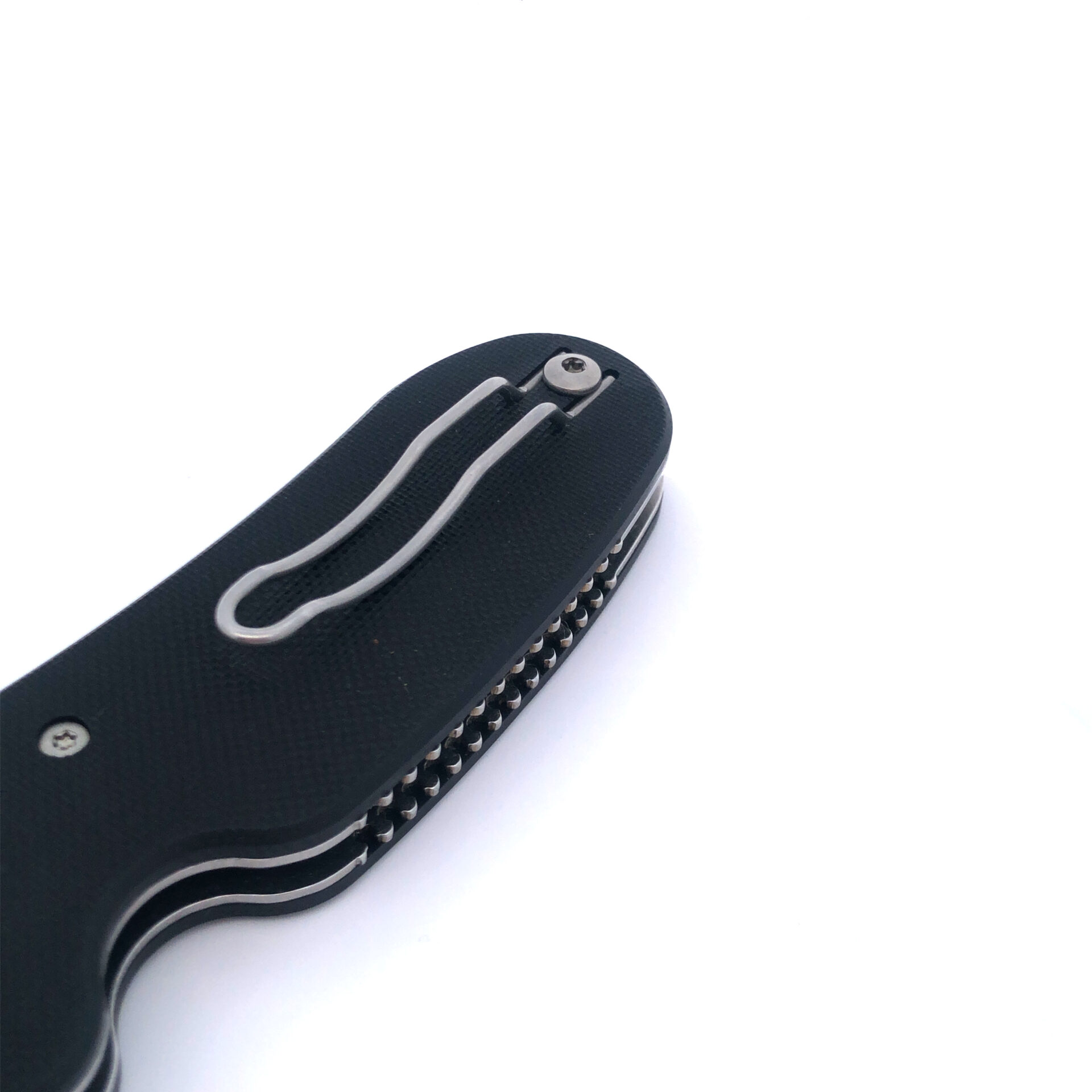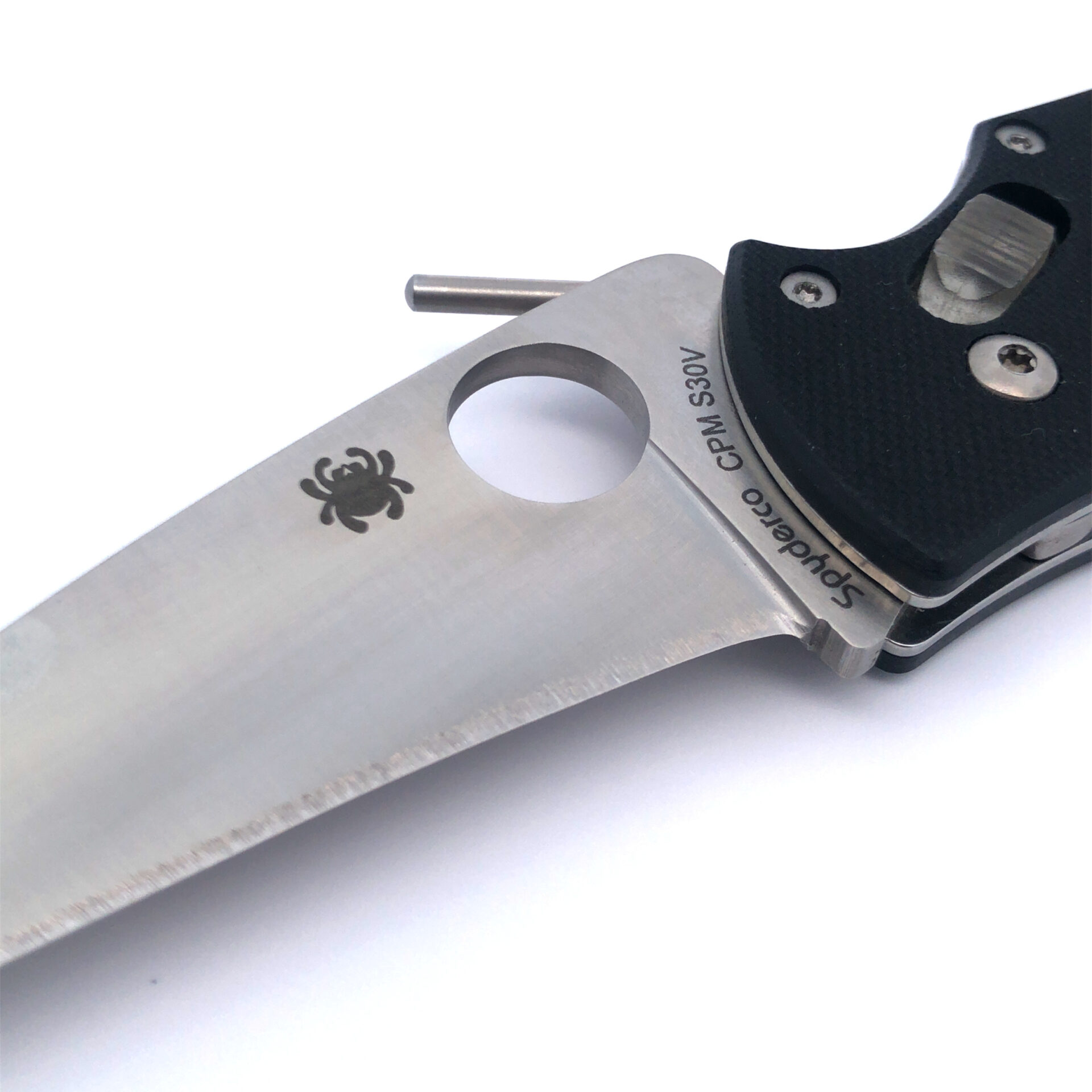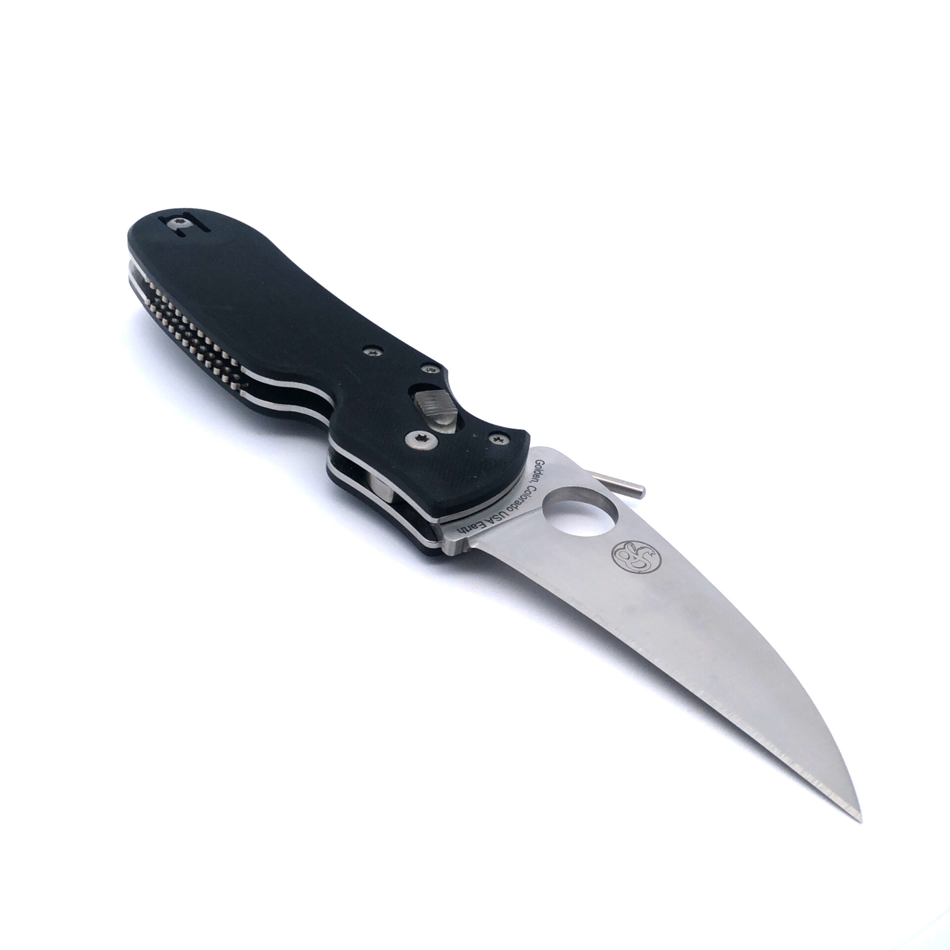 As a “reverse-edge” tool, the P’Kal’s handle is ergonomically designed to be held with the sharpened edge facing inward toward the user to facilitate powerful pulling cuts. The handle’s skeletonized full stainless steel liners are capped by textured black G-10 laminate scales and house Spyderco’s patented Ball Bearing Lock™—an extremely strong lock mechanism that is also completely ambidextrous. To support all appropriate carry and deployment methods, the P’Kal also features a reversible steel wire clip that provides tip-up, edge-forward and edge-back carry on both the left and right sides.
