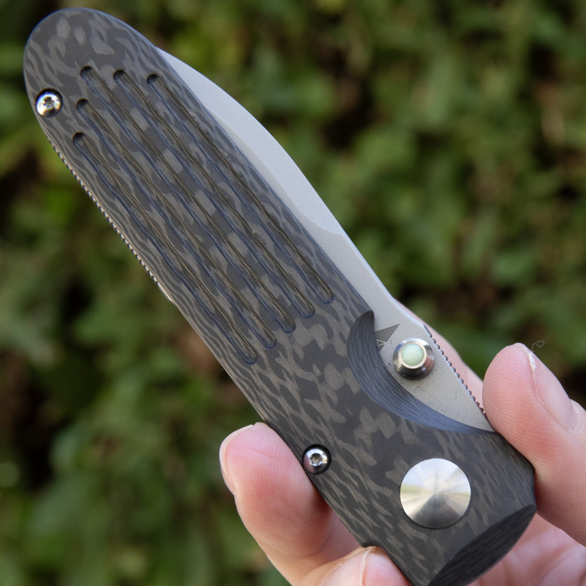 Precision-made and versatile, this adventure tool combines purpose-driven design with an industrial aesthetic, offering uncompromising performance wherever your journey takes you. With features like a full back spacer with jimping, low-ride billet pocket clip, and GITD thumbstud cabochons, every detail is meticulously crafted for utility and style.