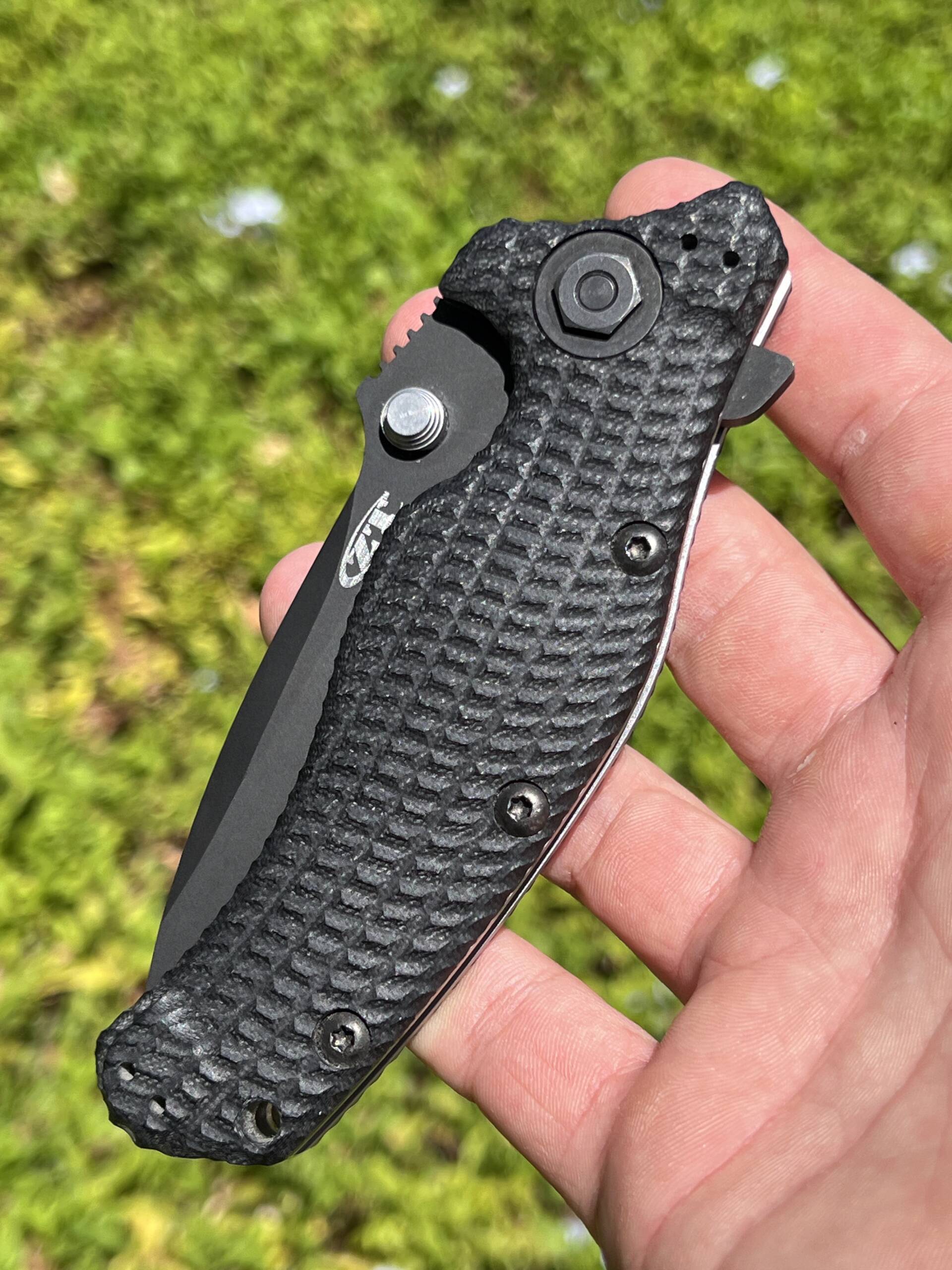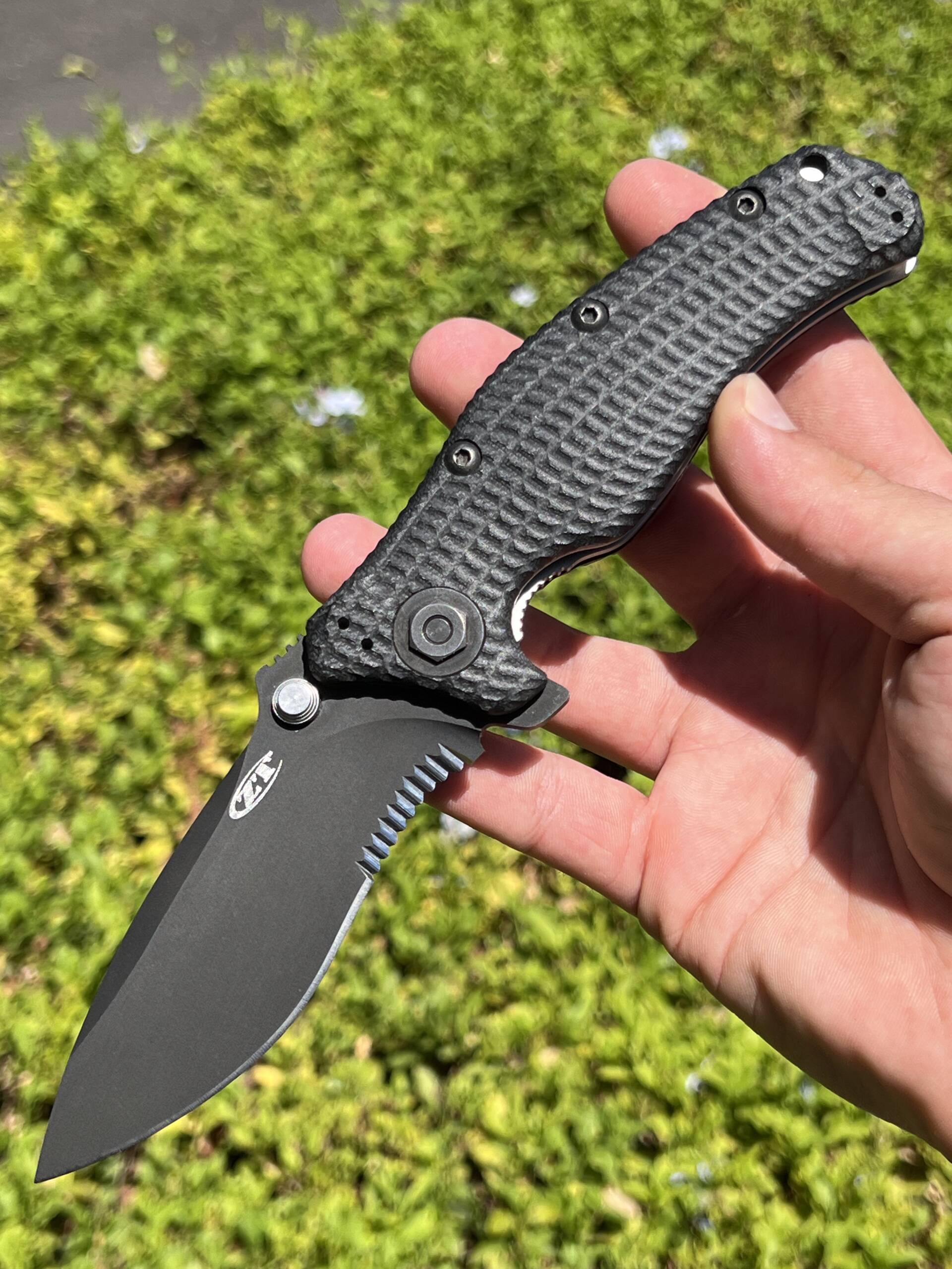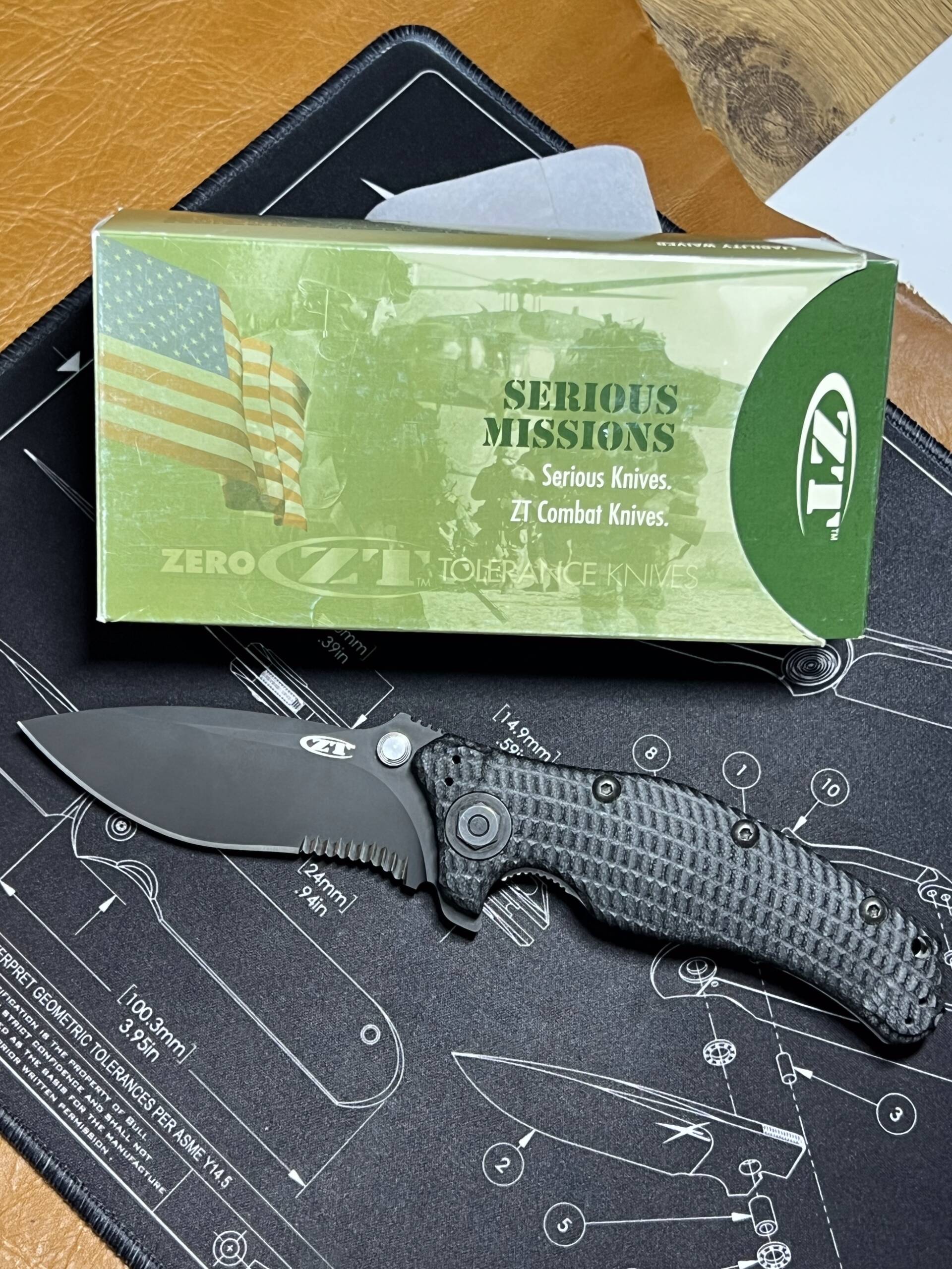 A discontinued heavyweight that defined Zero Tolerance’s hard-use reputation. Overbuilt construction, a DLC-coated 154CM recurve blade with partial serrations, and sculpted G-10 scales for absolute control.